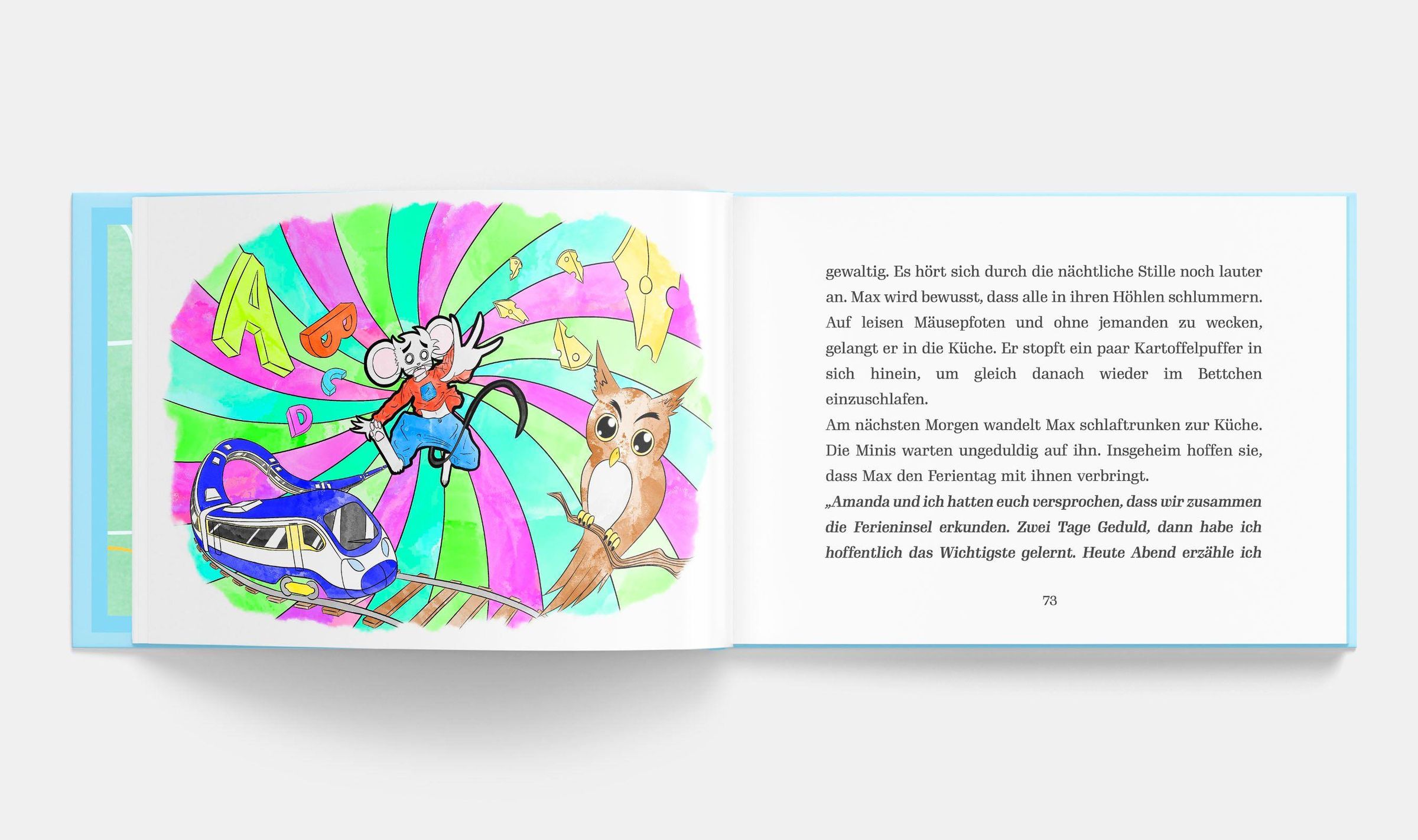 Zusammenfassung: Nachdem Mäuserich Max von seiner ersten Reise zu seiner Tante Martha zurückgekehrt ist, erkundet er seine Umgebung und versucht diese puzzelartig in eine Landkarte zu zeichnen. Max ist jetzt mutig genug, seine große Reise anzutreten. Mit Hilfe der herzlichen Familie Schaufelmann, der Nachhilfelehrerin Hilde, seiner Freundin Amanda und Höhlenforscher Edda und Hugo setzt er seinen Plan um. Dabei wird zufällig die Ferieninsel wiederentdeckt, die seinerzeit durch ein Unwetter in Vergessenheit geraten ist. Mitreißend! Hinreißend!