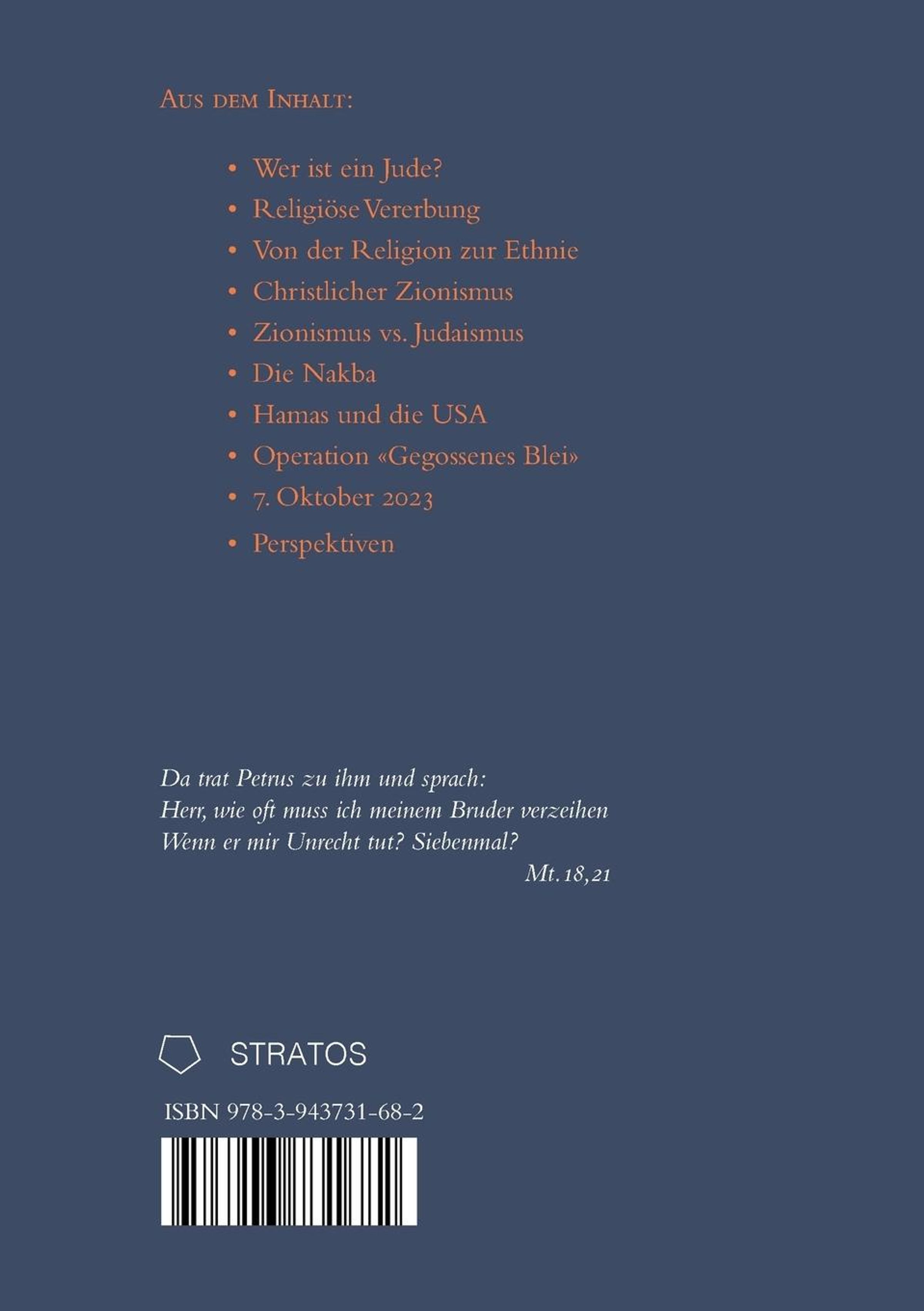 Das Buch bietet fast eine Überfülle an Informationen, die in Deutschland kaum bekannt sind. Aus der Sicht des Judaismus wird die Frage beantworte, was - im Sinne des orthodoxen Judaismus - ein Jude ist. Das Konzept der religiösen Vererbung wird erklärt ebenso wie der tragische Wandel im 19. Jahrhundert als aus Religionsgemeinschaft eine Ethnie gemacht wurde. Weitere Themen: Verschiedene Formen des Antisemitismus; die große Bewegung des christlichen Zionismus, die in Deutschland nur wenige kennen, obwohl zu ihr 200 Mio. Anhänger gehören; die Nakba; die Wurzeln des Hamas in den USA; die Operation <<Gegossenes Blei>>. Perspektiven.