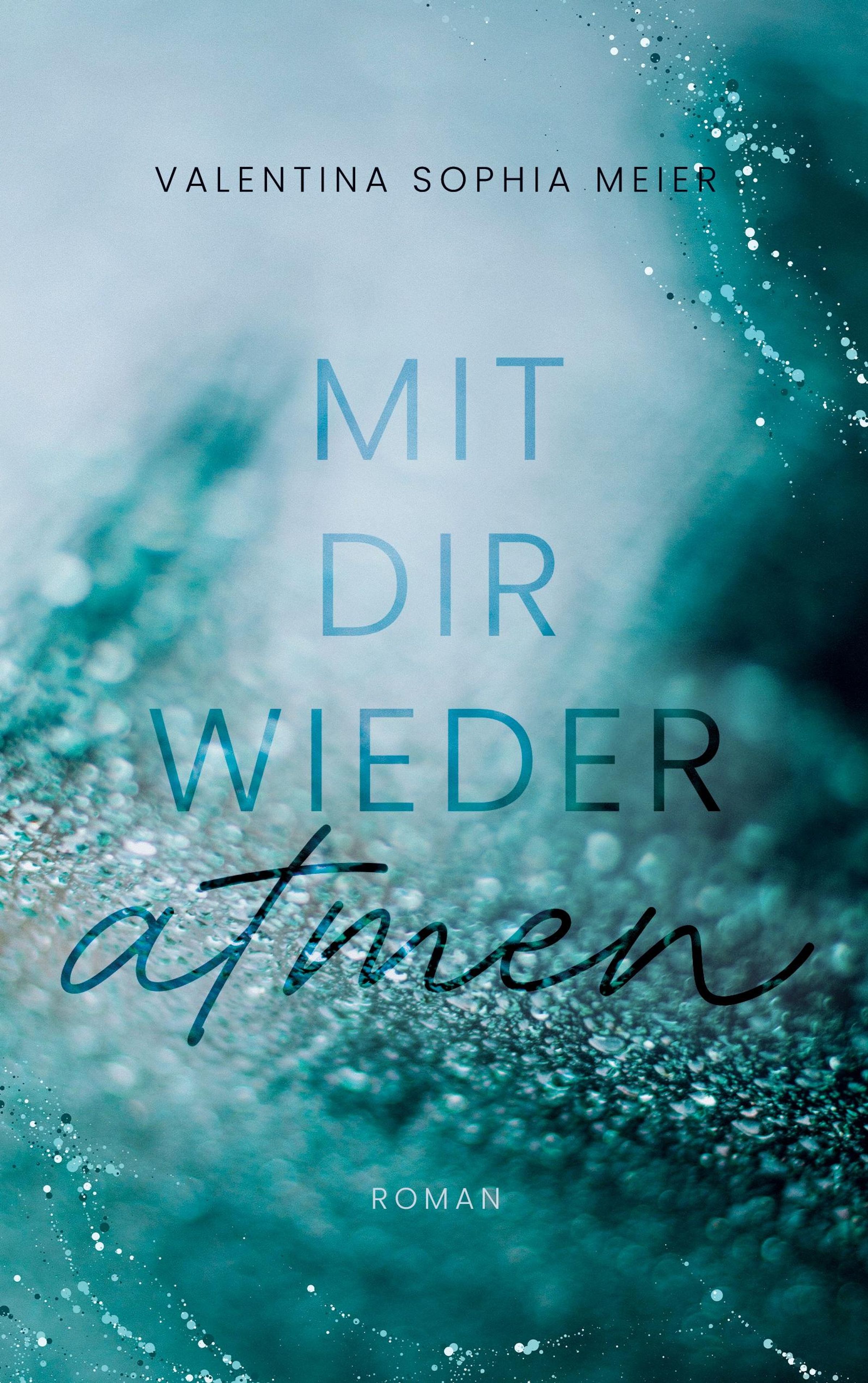 VALENTINA SOPHIA MEIER, MIT DIR WIEDER atmen, ROMAN. Hintergrund in türkisen Tönen mit funkelnden Lichtreflexen., Buch