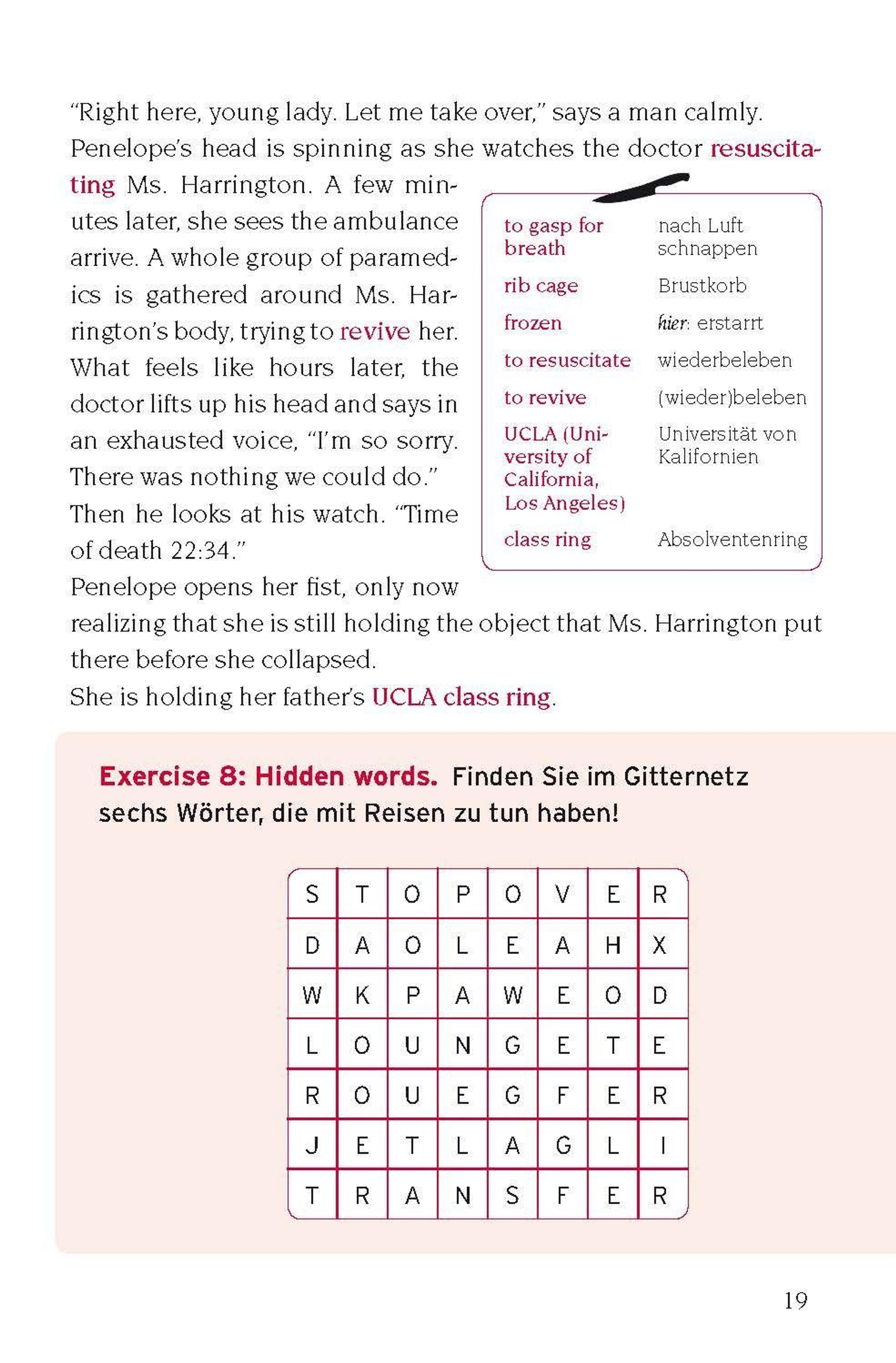 - Infokästen zu Sprache und Grammatik: Zusätzliche Informationen, Tipps und Wissenswertes zu Sprache, Grammatik und Landeskunde runden den Lernkrimi Thriller "Faceless Killer" ab.