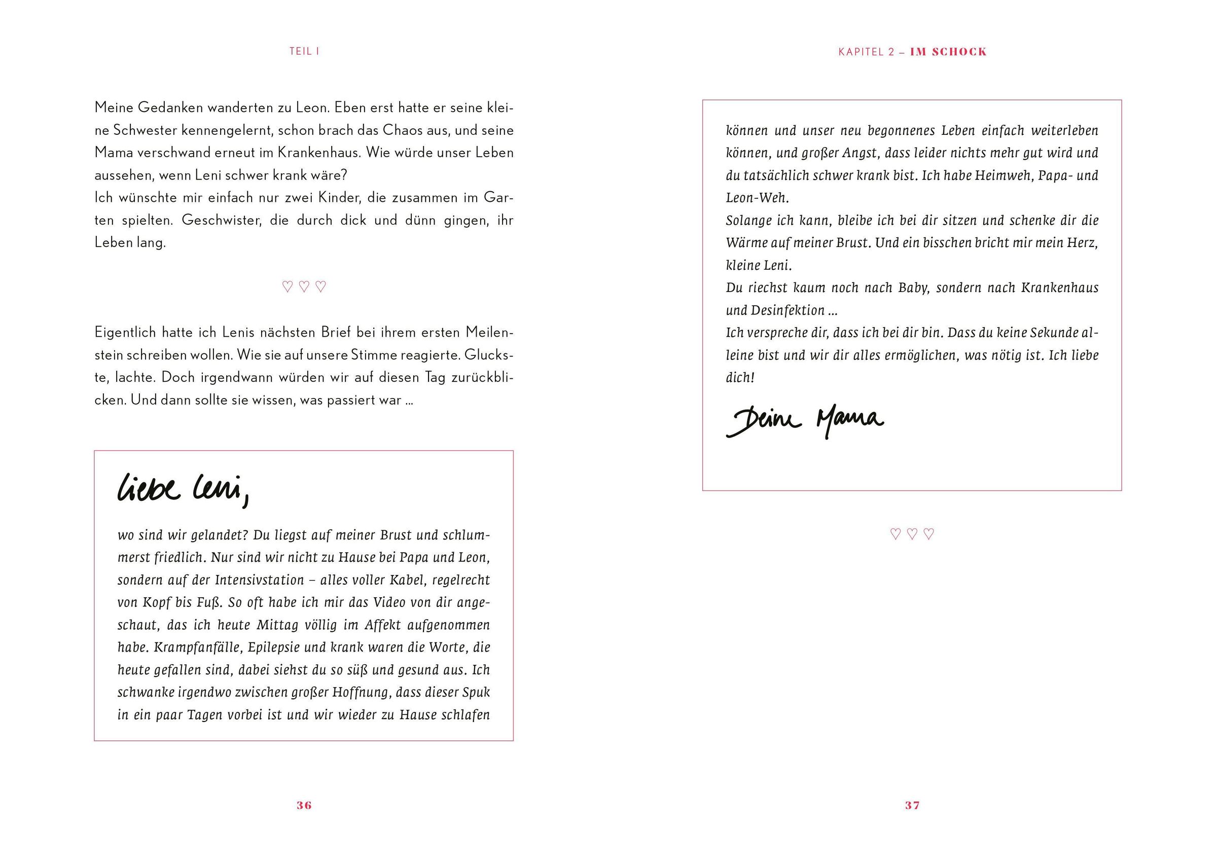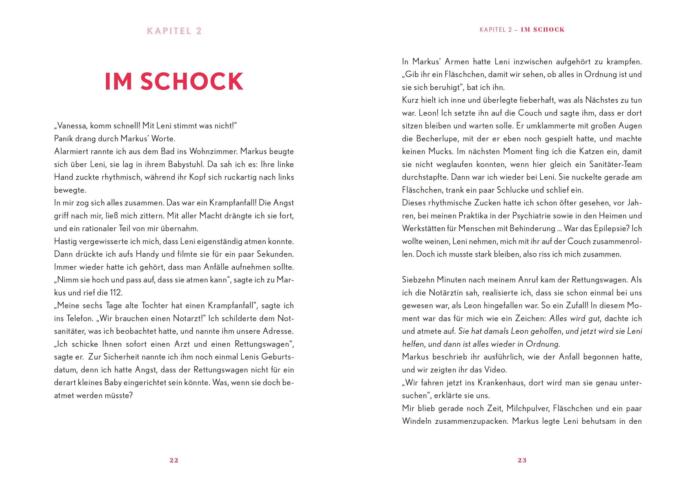 Nur sechs Tage nach der Geburt ihrer Tochter Leni merken Vanessa und Markus, dass etwas nicht stimmt. Sie alarmieren den Notarzt. Es folgt eine beunruhigende Odyssee aus Krankenhausaufenthalten, Untersuchungen und schlaflosen Nächten - und dem Ausblick auf Operationen, die schwerwiegende Konsequenzen für Leni haben. Durch Höhen und Tiefen halten die Eltern zusammen, stützen sich auf Ärzt*innen und den Fortschritt der Medizin. Ein Mutmacher-Buch über Hoffnung, Resilienz und den Wert der Familie.