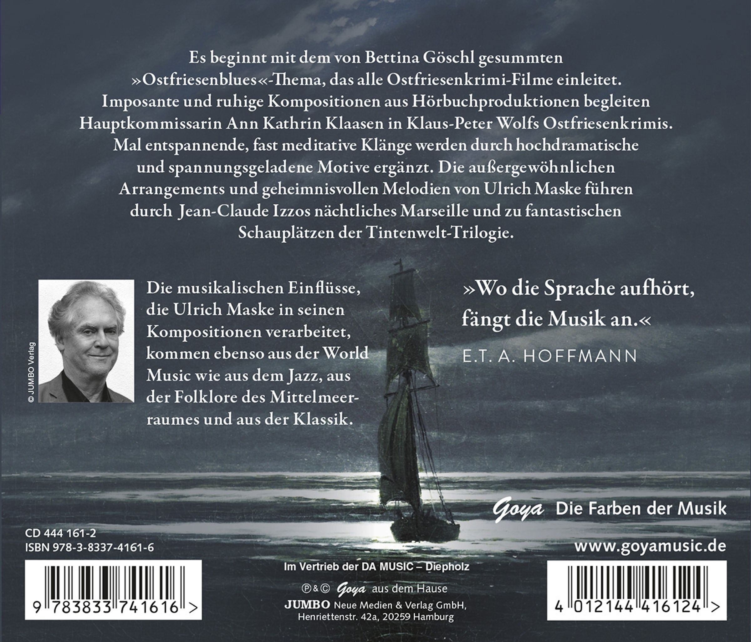 Es beginnt mit dem von Bettina Göschl gesummten »Ostfriesenblues«-Thema, das alle Ostfriesenkrimi-Filme einleitet. Imposante und ruhige Kompositionen aus Hörbuchproduktionen begleiten Hauptkommissarin Ann Kathrin Klaasen in Klaus-Peter Wolfs Ostfriesenkrimis. Mal entspannende, fast meditative klänge wrden durch hochdramatische und spannungsgeladene Motive ergänzt. Die außergewöhnlichen Arrangements und geheimnisvollen Melodien von Ulrich Maske führen durch Jean-Claude Izzos nächtliches Marseille und zu fantastischen Schauplätzen.
