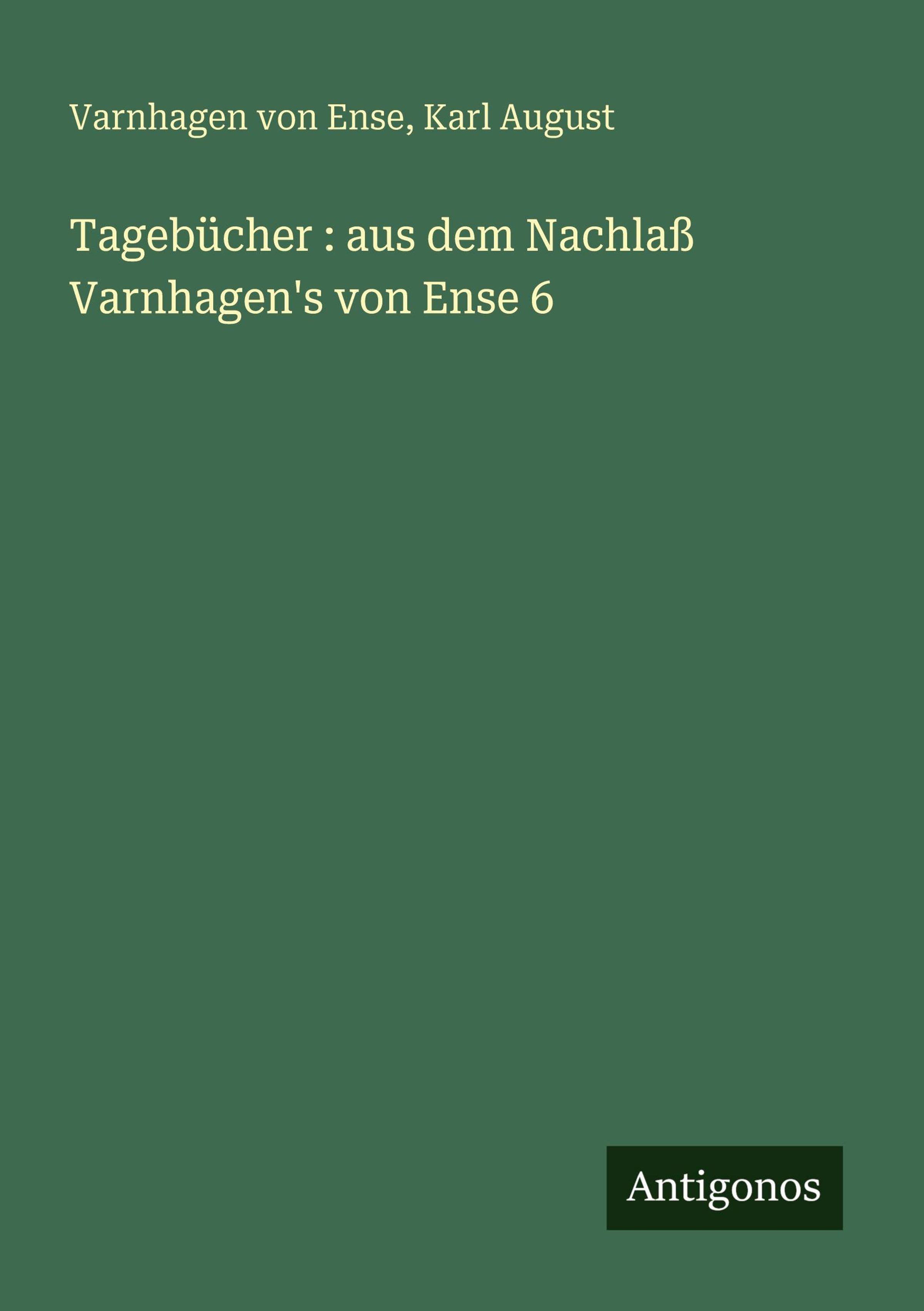 Varnhagen Von Ense: Tagebücher : aus dem Nachlaß Varnhagen's von Ense 6, Kartoniert / Broschiert