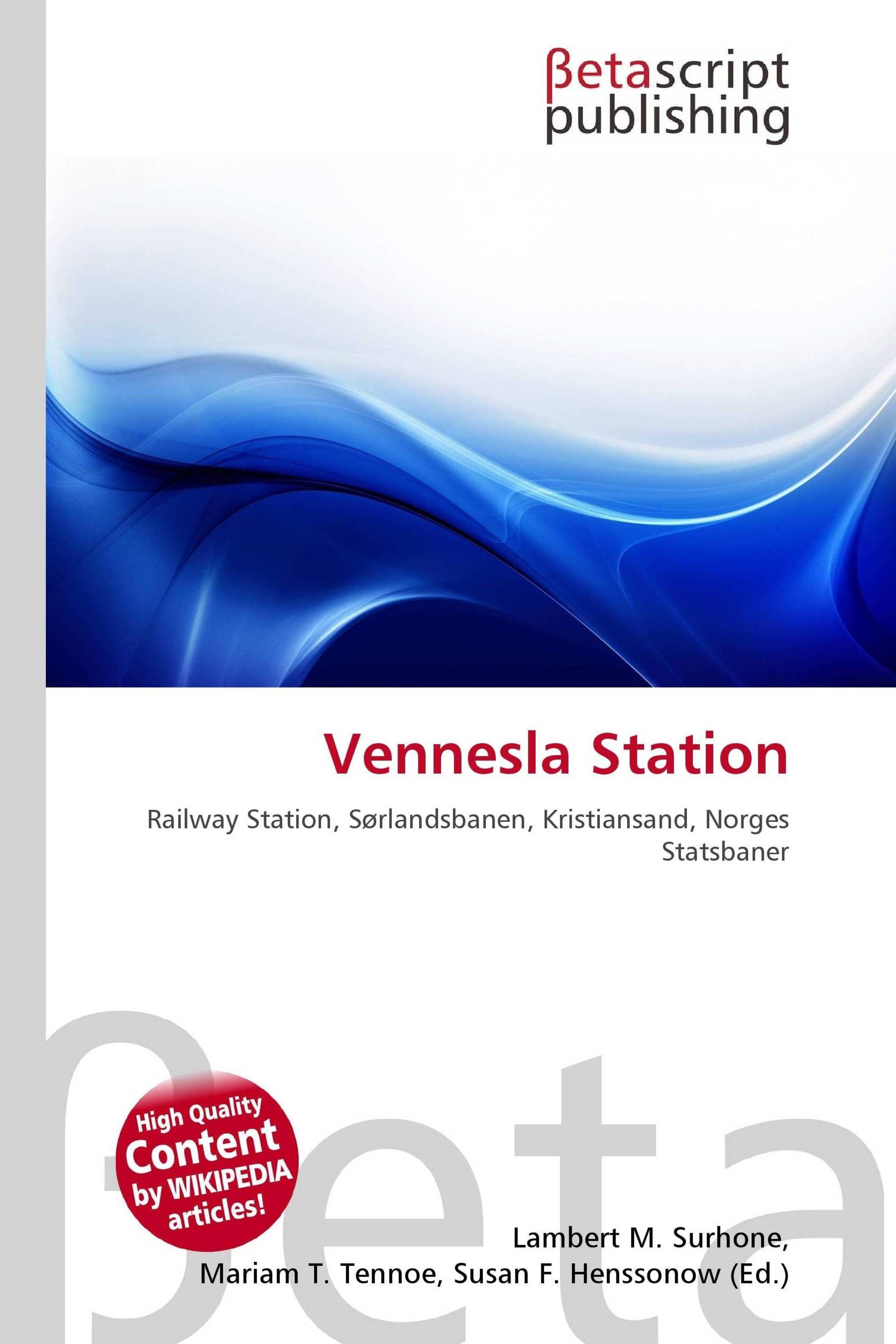 Please note that the content of this book primarily consists of articles available from Wikipedia or other free sources online. Vennesla Station (Norwegian: Vennesla stasjon) is a railway station located at Vennesla, Norway on Sørlandsbanen. The station is served by express trains operated by Norges Statsbaner to Oslo and Kristiansand. The station was opened in 1895 as part of Setesdalsbanen. In 1935 it became part of Sørlandsbanen when it was extended from Neslandsvatn Station to Kristiansand Station. Setesdalsbanen has since closed and has been converted to a heritage railway.
