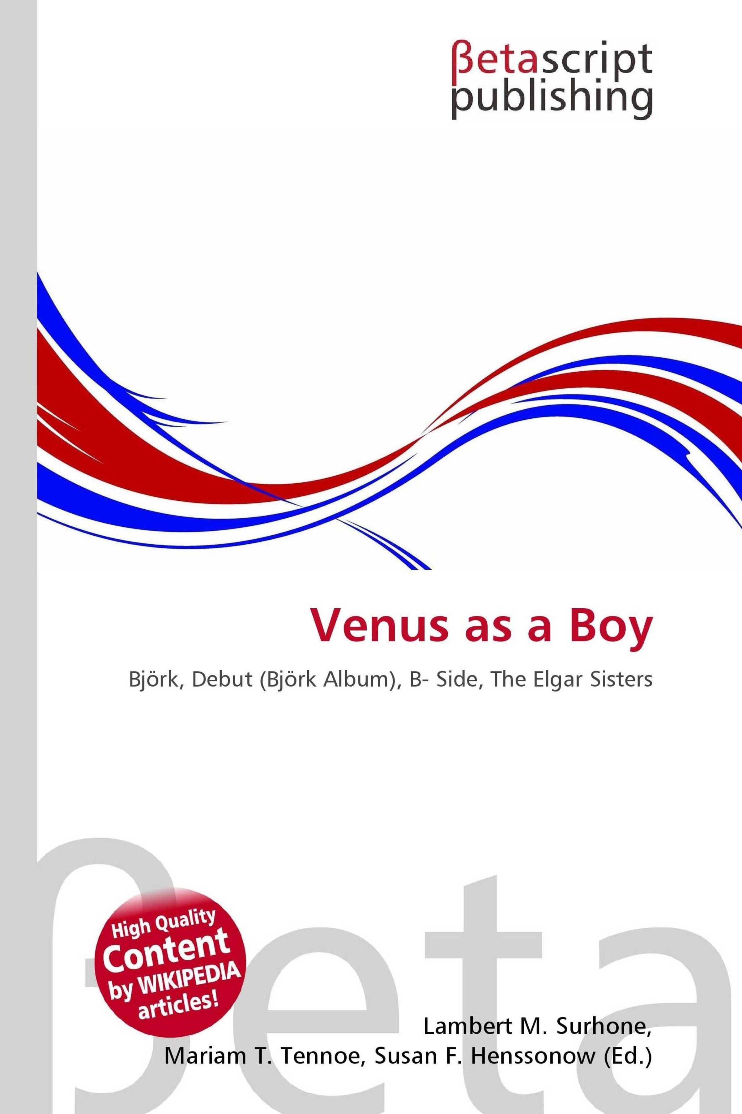 "Venus as a Boy" in Rot. Wellen in Rot und Blau. Seitenleiste links in Grau. "betascript publishing" oben rechts., Buch