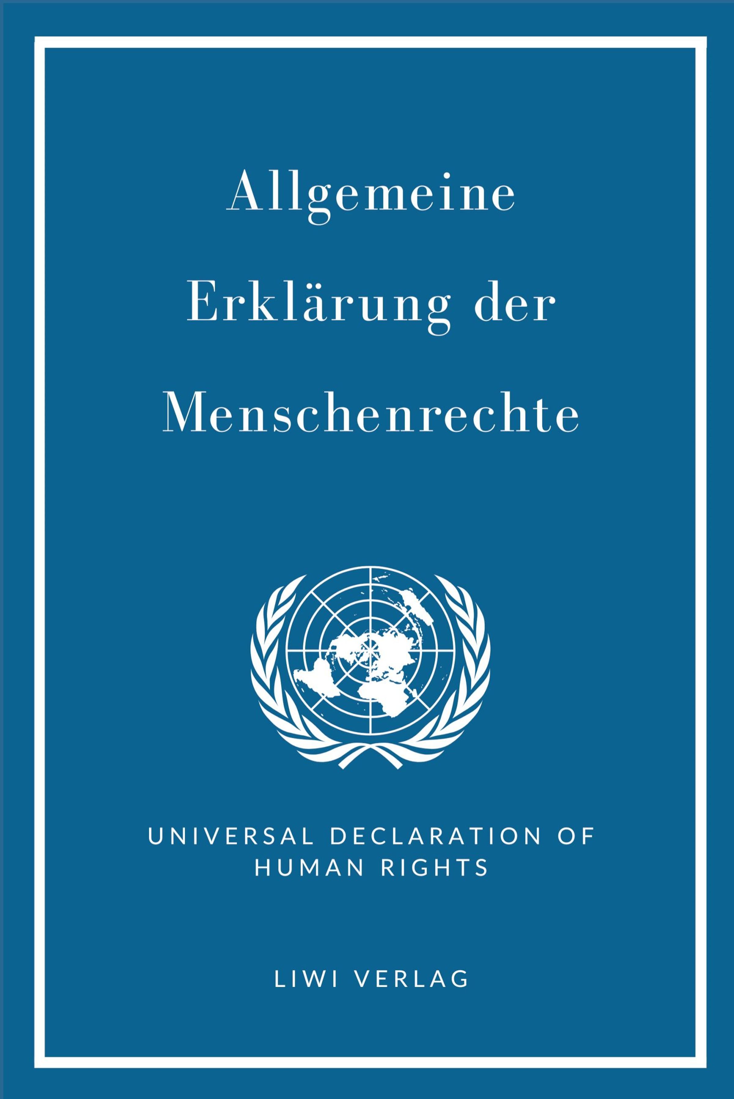 Die Allgemeine Erklärung der Menschenrechte. Universal Declaration of Human Rights. Zweisprachig Deutsch / Englisch. Erstverkündung der "Universal Declaration of Human Rights" (Allgemeine Erklärung der Menschenrechte) als Resolution 217 A (III) der Generalversammlung der Vereinten Nationen, Palais de Chaillot, Paris, 10. Dezember 1948. Vollständige zweisprachige Neuausgabe, Göttingen 2025. LIWI Literatur- und Wissenschaftsverlag