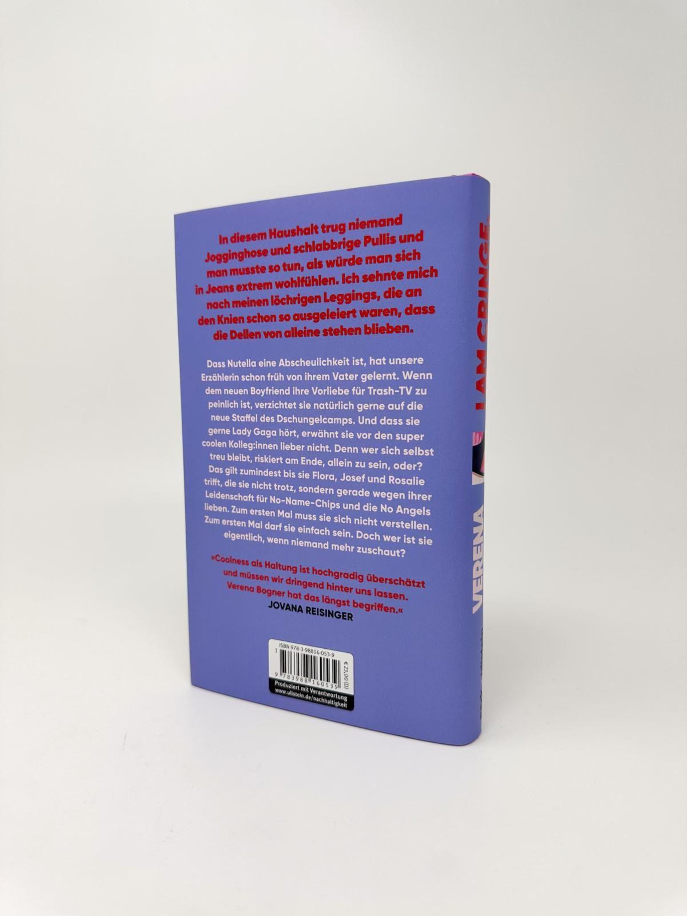 Was cool ist, bestimmen immer die anderen - so auch im Leben der Erzählerin, die von klein auf weiß, was es heißt, nicht schlank, abgebrüht, edgy genug zu sein. Aus Angst vor der Peinlichkeit des Lebens versteckt sie sich hinter den Erwartungen der anderen, hinter denen ihres nutellahassenden Vaters, ihres schnöseligen Boyfriends Fabian, ihres viel zu coolen Arbeitgebers. Erst, als Flora, Josef und Rosalie (und eine ziemlich gute Therapeutin) in ihr Leben treten, wird ihr Mut langsam größer als die Angst vor dem Cringe. Gemeinsam stellen sie sich die Frage: Was ist ein cringefreies Leben wert, wenn man sich dabei selbst verliert? Mit den Menschen, die sie nichttrotzdem, sondern genaüdeshalblieben, traut sie sich, nach einer Antwort zu suchen. Und findet sie irgendwo zwischen Pina Coladas, No-Angels-Songs und einer wahnwitzigen Bergwanderung.