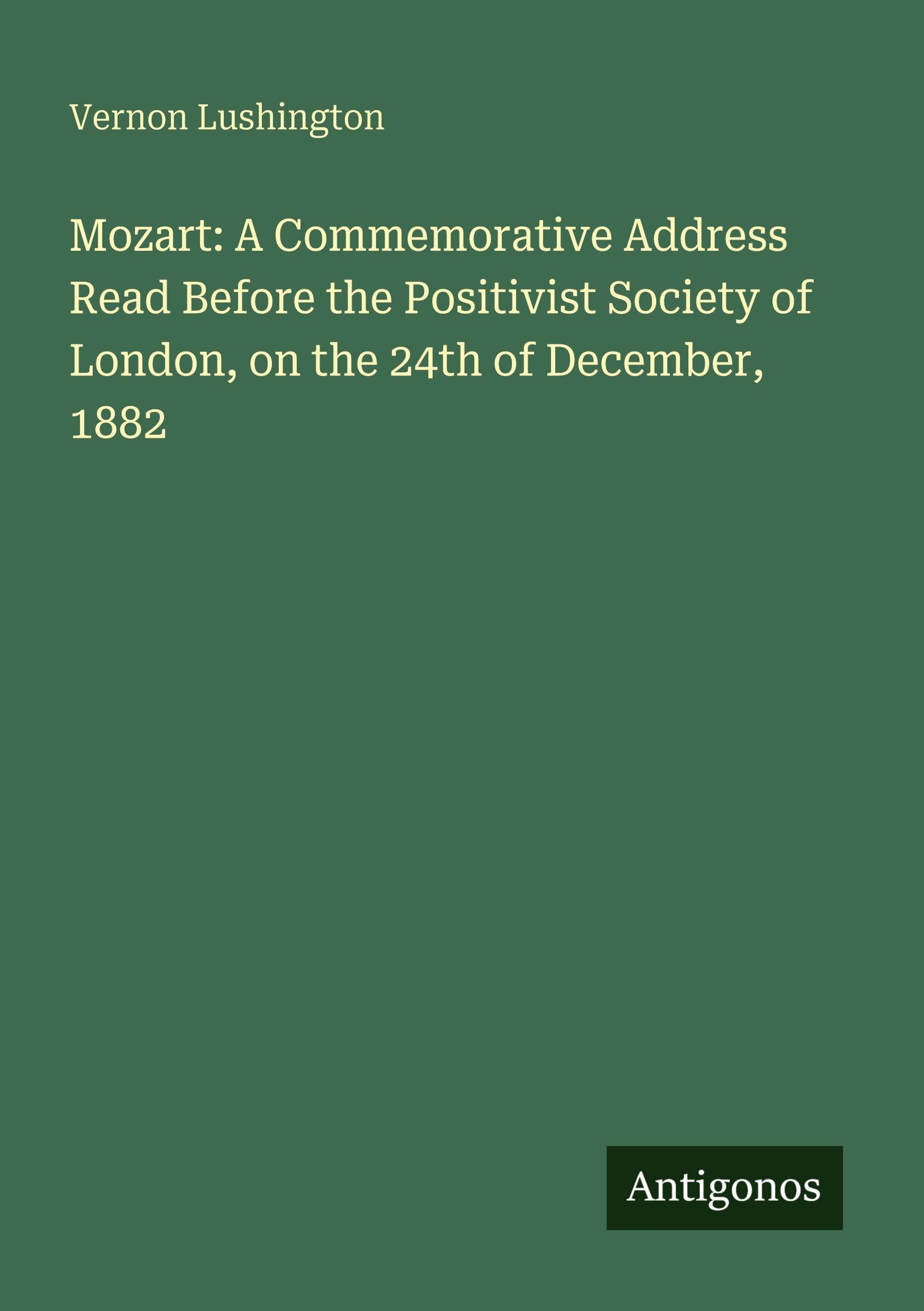 Mozart: A Commemorative Address Read Before the Positivist Society of London, on the 24th of December, 1882