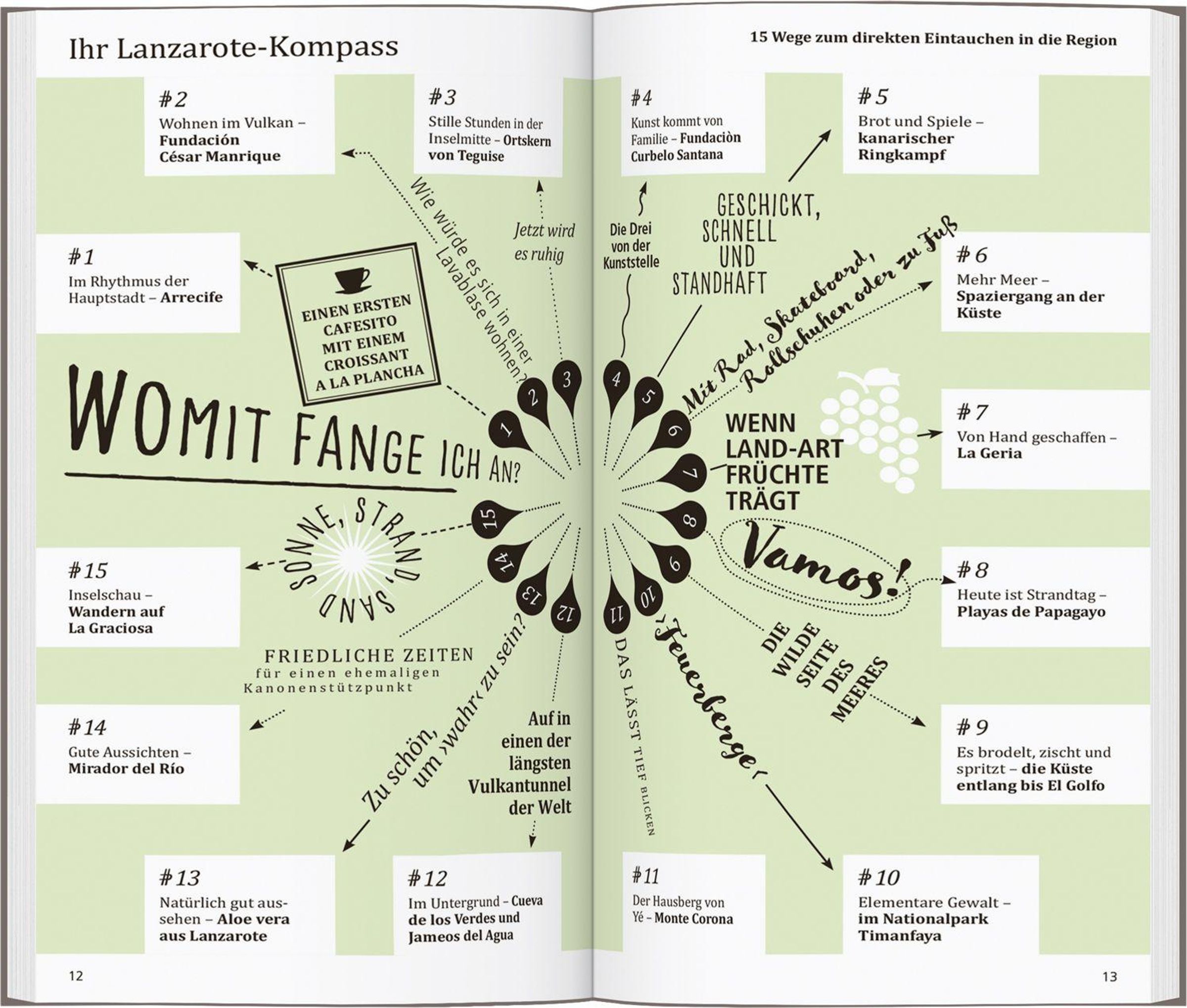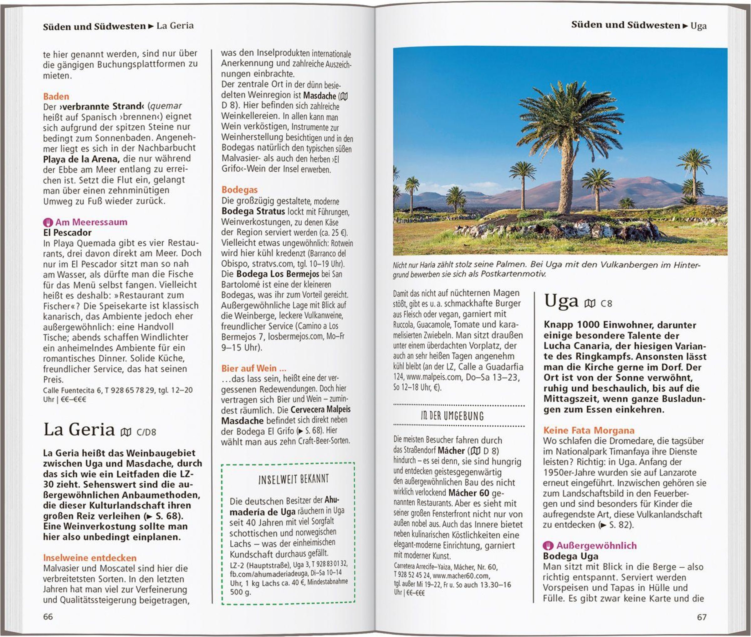 Dank vieler Tipps und Adressen erfahren Sie, wo es sich in fremden Betten gut schläft, wo Sie glücklich satt werden, wohin die Lanzaroteños zum Stöbern und Entdecken gehen und wohin es sie zieht, wenn die Nacht beginnt.