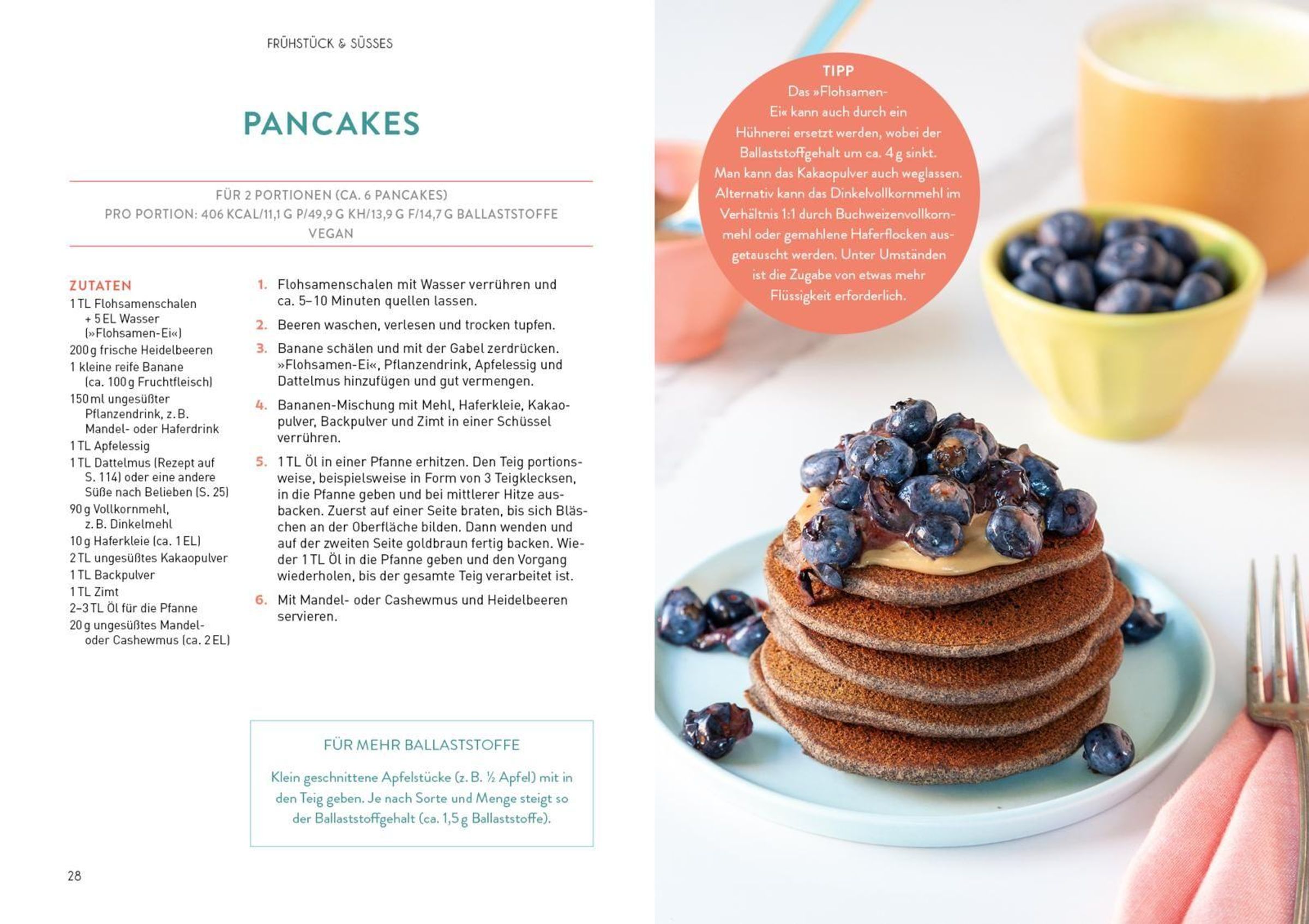 - 40 einfache, köstliche Rezepte mit ballaststoffreichen Lebensmitteln wie Gemüse, Hülsenfrüchten, Vollkorn und gesunden Fetten