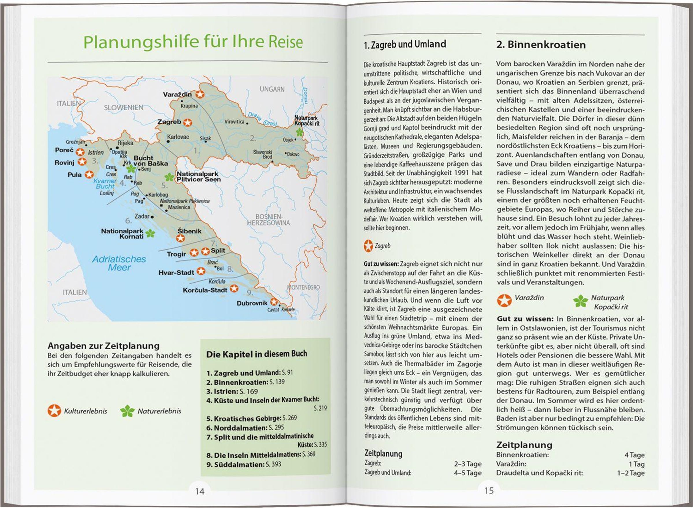 Das Reise-Handbuch enthält alles, was Sie für Ihre Reiseplanung brauchen. In ausführlichen Kapiteln werden die einzelnen Landesteile mit ihren interessantesten Ausflugszielen vorgestellt. Vom Autor kommentierte Adressen für Übernachtungen, Einkehr, Shopping und mehr geben einen Überblick über jeden Ort und die Doppelseite 'Auf einen Blick' fasst die Highlights jeder Region zusammen. So finden Sie sich überall schnell zurecht, egal ob Sie einen Spaziergang zu den Mestrovic-Skulpturen in Zagreb unternehmen oder lieber zum Freiklettern im Nationalpark Paklenica aufbrechen.