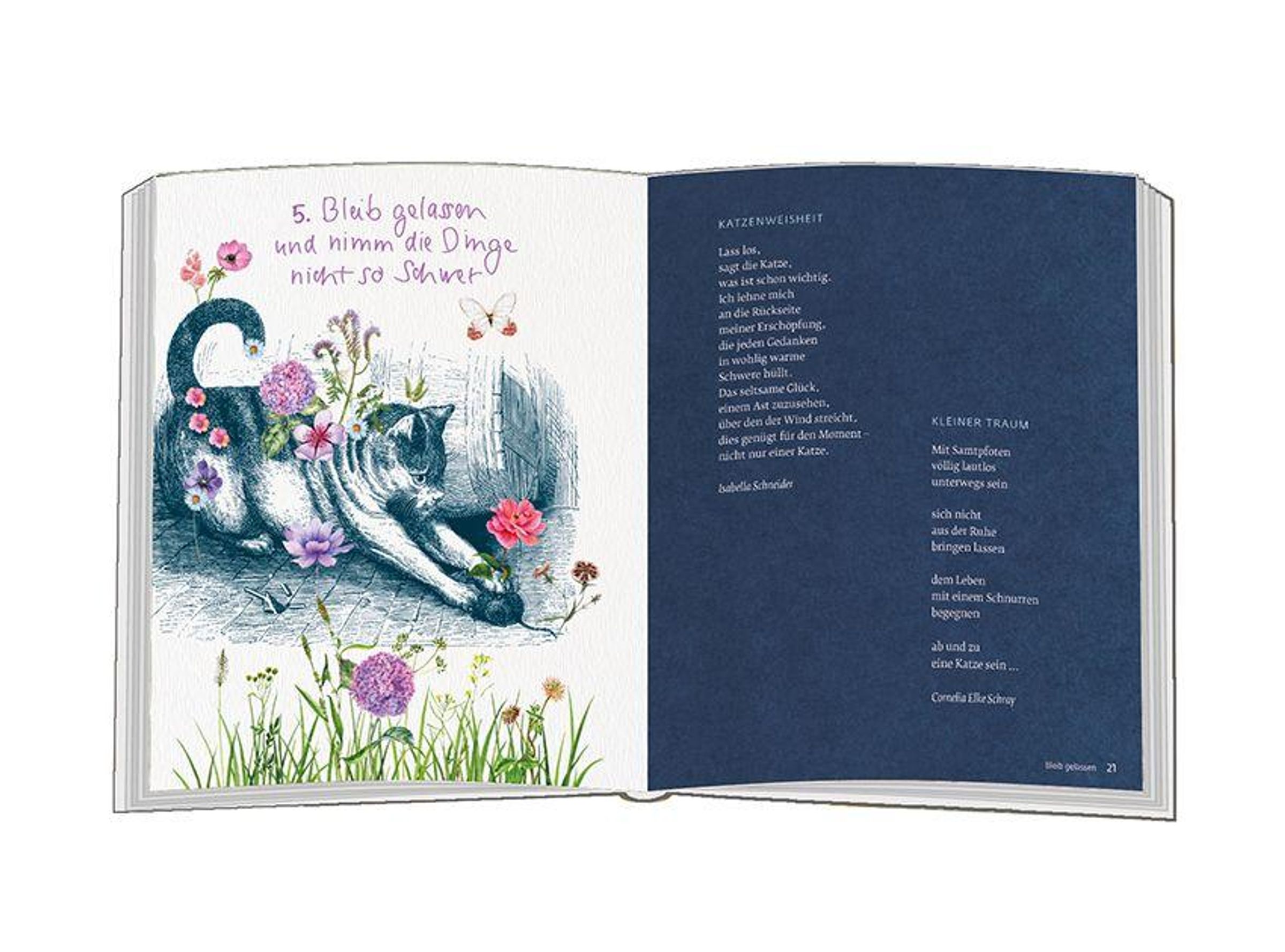 In puncto Lebensweisheit sind uns Katzen schon seit jeher ein paar Schnurrhaare voraus. Sie genießen das Hier und Jetzt und lassen sich nicht für die Zwecke anderer einspannen. Ausgewählte Autorinnen und Autoren haben sich in diesem Buch von ihrer Lebenskunst inspirieren lassen. Wer es ihnen gleich tun will, erfährt hier die wichtigsten Impulse für ein gutes Leben à la Katz. Eine originelle Geschenkidee für alle, die Katzen lieben. Mit Texten von Elke Heidenreich, Ilka Haederle, Jörn Heller, Erich Kästner, Andreas Noga, Manuela Pfann, Maria Sassin, Isabella Schneider, Cornelia Elke Schray, Gary Thorn, u. a.