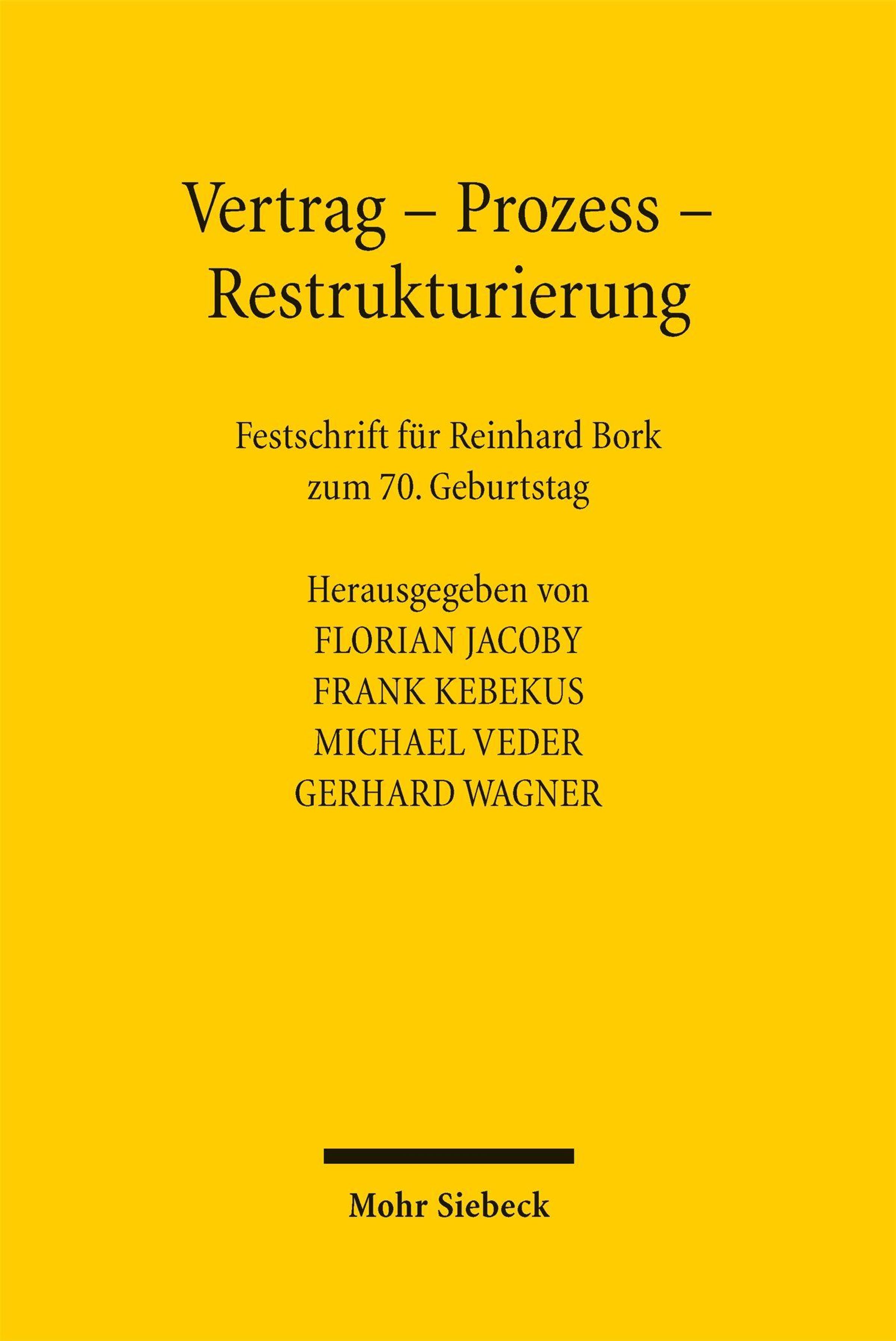 On 24 February 2026, Reinhard Bork will celebrate his 70th birthday - an occasion for this scholarly Festschrift containing ninety contributions honoring him as an outstanding academic teacher for whom scholarship, teaching, transfer of knowledge into practice and university self-governance have always been equally important. Many of the contributors deal with formative stages and themes of his work: from his Habilitation thesis and his commentary in Stein and subsequent role as co-editor, to the major textbook on the General Part of the German Civil Code (BGB), his co-editorship of the Archiv für die civilistische Praxis (AcP), his co-editorship of the KTS book series, his commentary on the Insolvency Code (InsO), as well as research stays in Oxford, and much more.