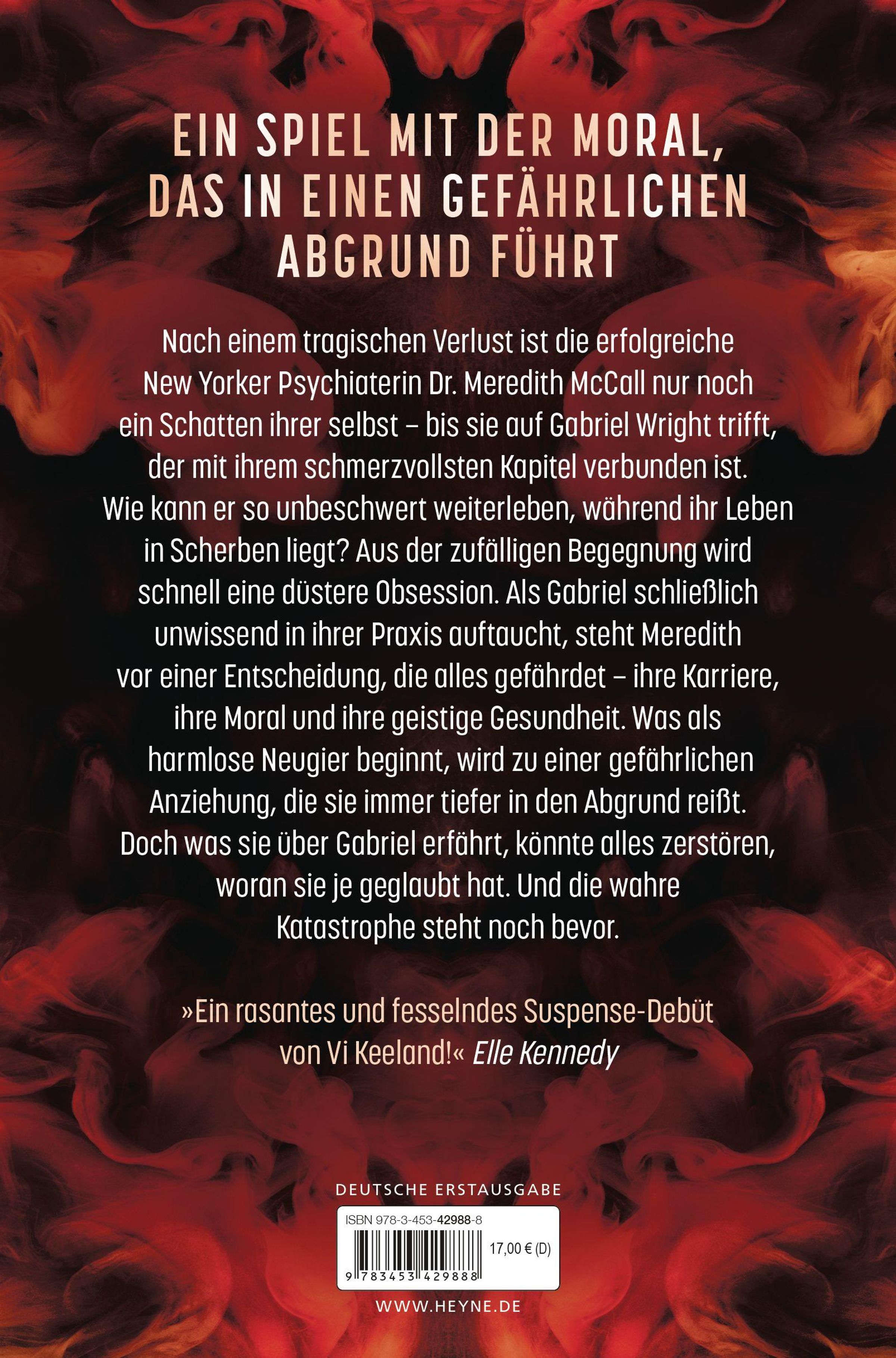 Nach einem tragischen Verlust ist die erfolgreiche New Yorker Psychiaterin Dr. Meredith McCall nur noch ein Schatten ihrer selbst - bis sie auf Gabriel Wright trifft, der mit ihrem schmerzvollsten Kapitel verbunden ist. Wie kann er so unbeschwert weiterleben, während ihr Leben in Scherben liegt? Aus der zufälligen Begegnung wird schnell eine düstere Obsession. Als Gabriel schließlich unwissend in ihrer Praxis auftaucht, steht Meredith vor einer Entscheidung, die alles gefährdet - ihre Karriere, ihre Moral und ihre geistige Gesundheit. Was als harmlose Neugier beginnt, wird zu einer gefährlichen Anziehung, die sie immer tiefer in den Abgrund reißt. Doch was sie über Gabriel erfährt, könnte alles zerstören, woran sie je geglaubt hat. Und die wahre Katastrophe steht noch bevor.