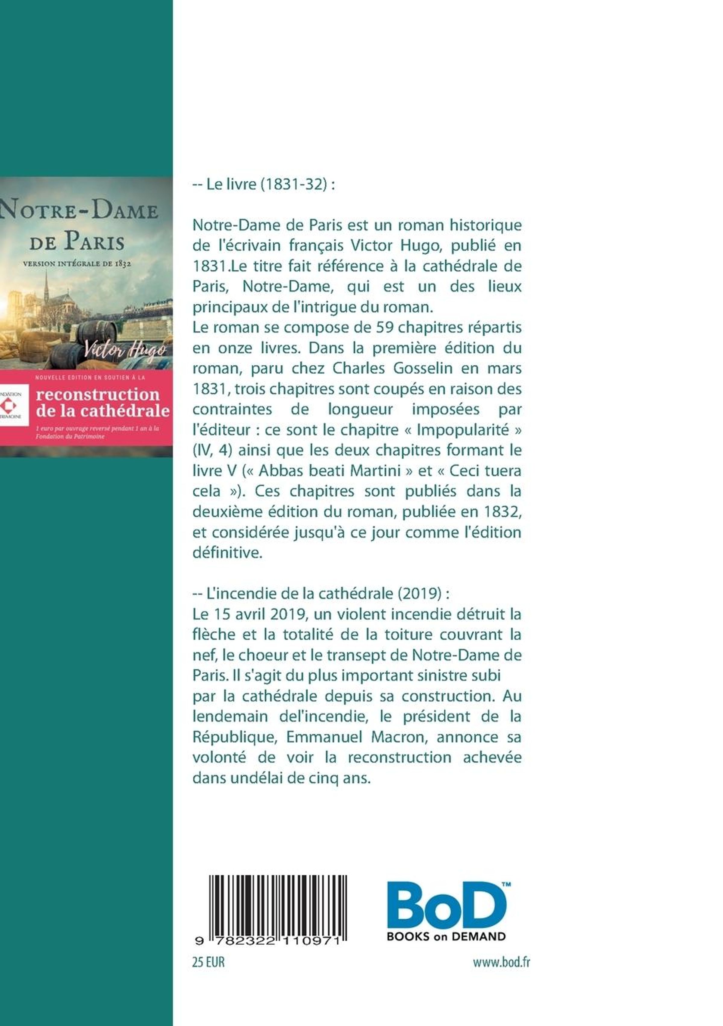 - Nouvelle édition en soutien à la reconstruction de la cathédrale : 1 euro par ouvrage reversé pendant 1 an à la Fondation du Patrimoine