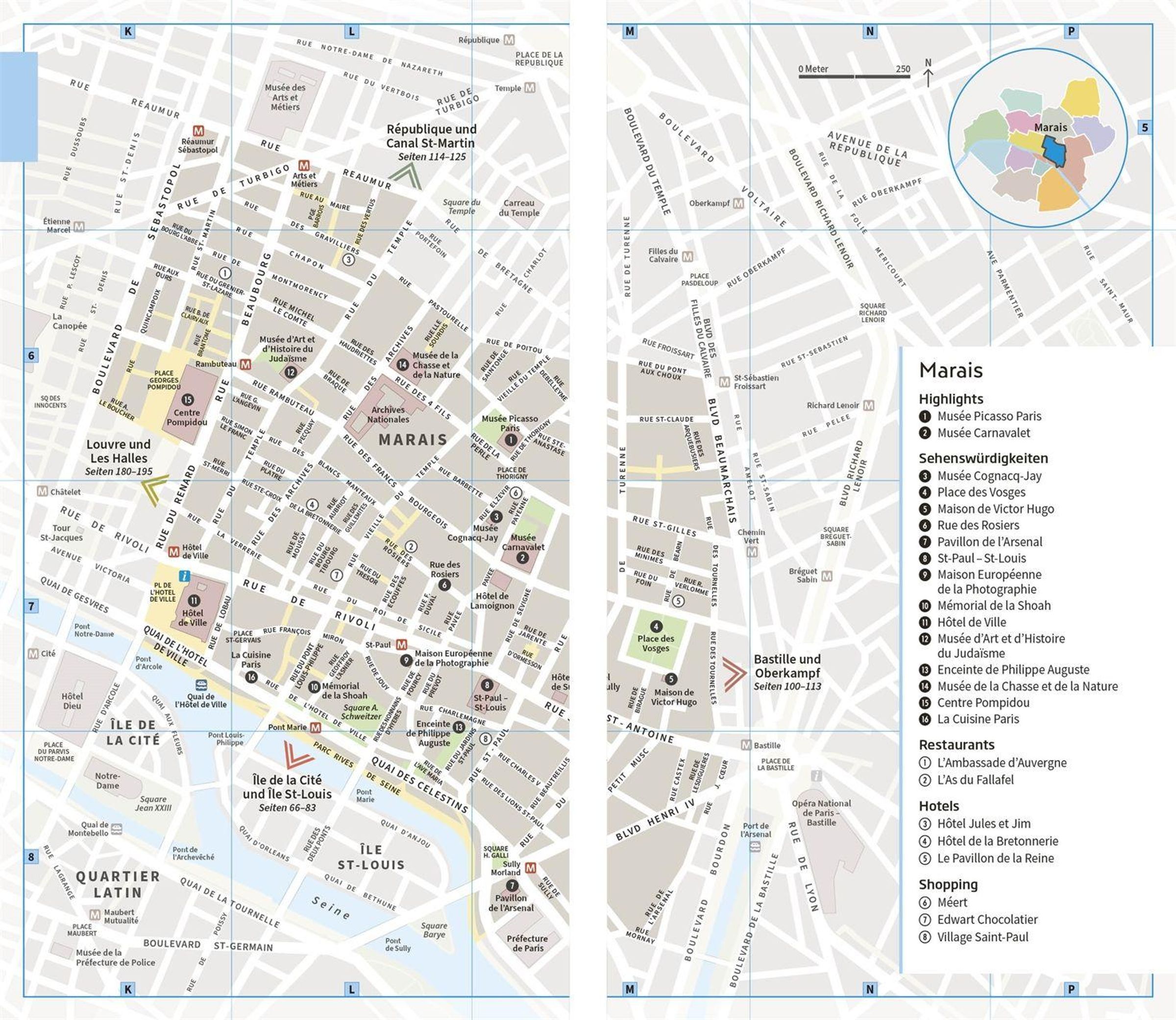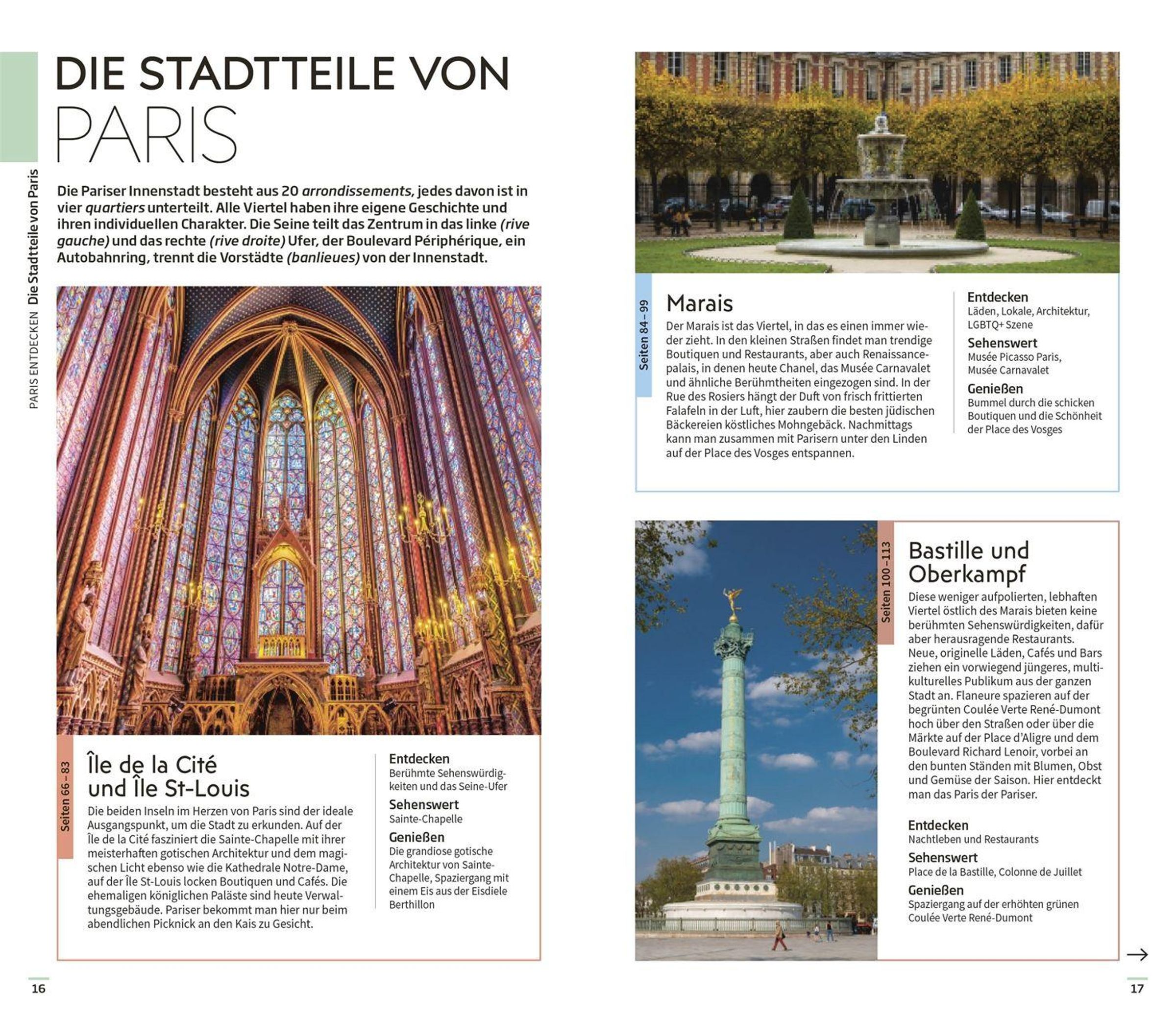 Bewundern Sie die kühle Eleganz des Eiffelturms, bestaunen Sie Meisterwerke aus aller Welt im Louvre oder schlendern Sie durch die bunten Straßen des trendigen Stadtteil Marais: Lassen Sie sich vom Vis-à-Vis Reiseführer Paris zu den wichtigsten Sehenswürdigkeiten und beeindruckendsten Orten der Stadt führen. Mit fundiertem Expertenwissen, inspirierenden Fotos und detaillierten Karten stellt Ihnen der übersichtliche Reiseführer die zentralen Stadtteile von Paris mit allen Attraktionen vor - von Chaillot und der Champs-Èlysées bis nach St-Germain-des-Prés mit den Schaufenstern der großen Haute-Couture-Häuser. Ob für nur einen Tag oder ein verlängertes Wochenende eine Städtereise nach Paris - hier finden Sie passende Reiserouten und Empfehlungen für Aktivitäten, Restaurants und Hotels, um das Beste aus Ihrem Paris-Urlaub herauszuholen!