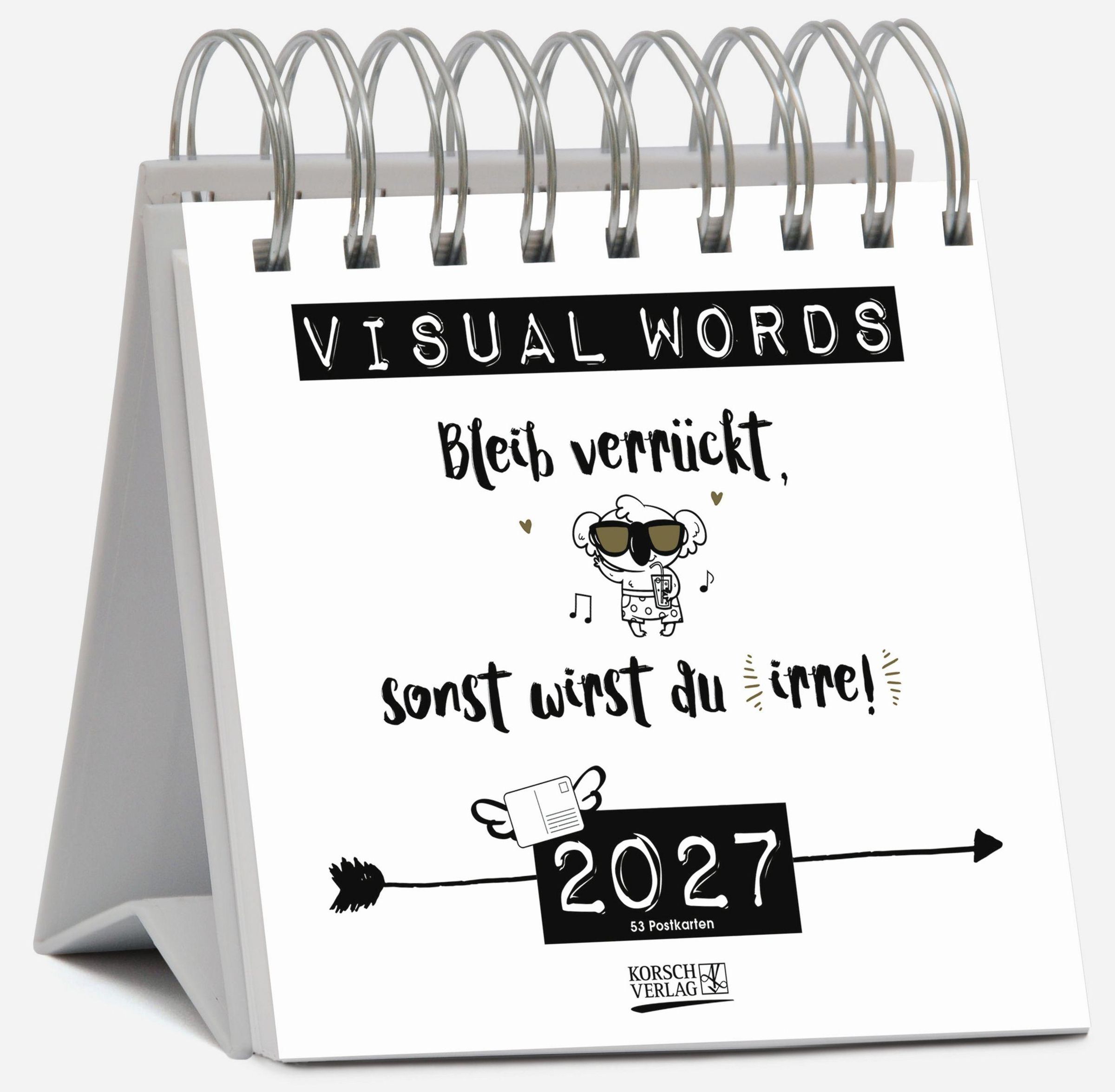 Produktmerkmale ¿ Format: 17 x 16 cm; Wochenkalender mit 53 einzigartigen Sprüchen ¿ Origineller Kunstkalender zum Aufstellen für alle Sprüche-Typo-Fans ¿ Lustige-sinnige-Botschaften in verschiedenen Schriftarten ¿ Kalendarium auf Deutsch mit hervorgehobenen Sonn- und Feiertagen für D, A und CH ¿ Gedruckt auf umweltfreundlichem FSC Papier Visual WordsEin Wochenkalender voller genialer Sprüche und Zitate. Text und Typografie verschmelzen zu einem Gesamtkunstwerk, das nicht nur den Geist, sondern auch das Auge anspricht. Dabei bleibt der Kalender dezent - nur wenige Buchstaben tanzen über den hellen Hintergrund des Bildes, um in diesem Kalender Woche für Woche die Schönheit und Sinnhaftigkeit eines poesievollen Spruches oder trendigen Lebensgefühls hervorzuheben. Mit 53 witzigen Sprüchen, weisen Zitaten und coolen Statements: zum Sich-darin-Wiederfinden, zum Sich-Krumm-und-Schieflachen, zum Aus-dem-Grinsen-nicht-mehr-Rauskommen, zum Dauersinnieren und Rumphilosophieren, zum Wegweisenden-Inspirieren. Postkartenkalender Jedes Kalenderblatt ist so gestaltet, dass es einfach abzutrennen ist. Somit können Sie jede Woche eine Postkarte mit einem schönen Spruch versenden oder verschenken.