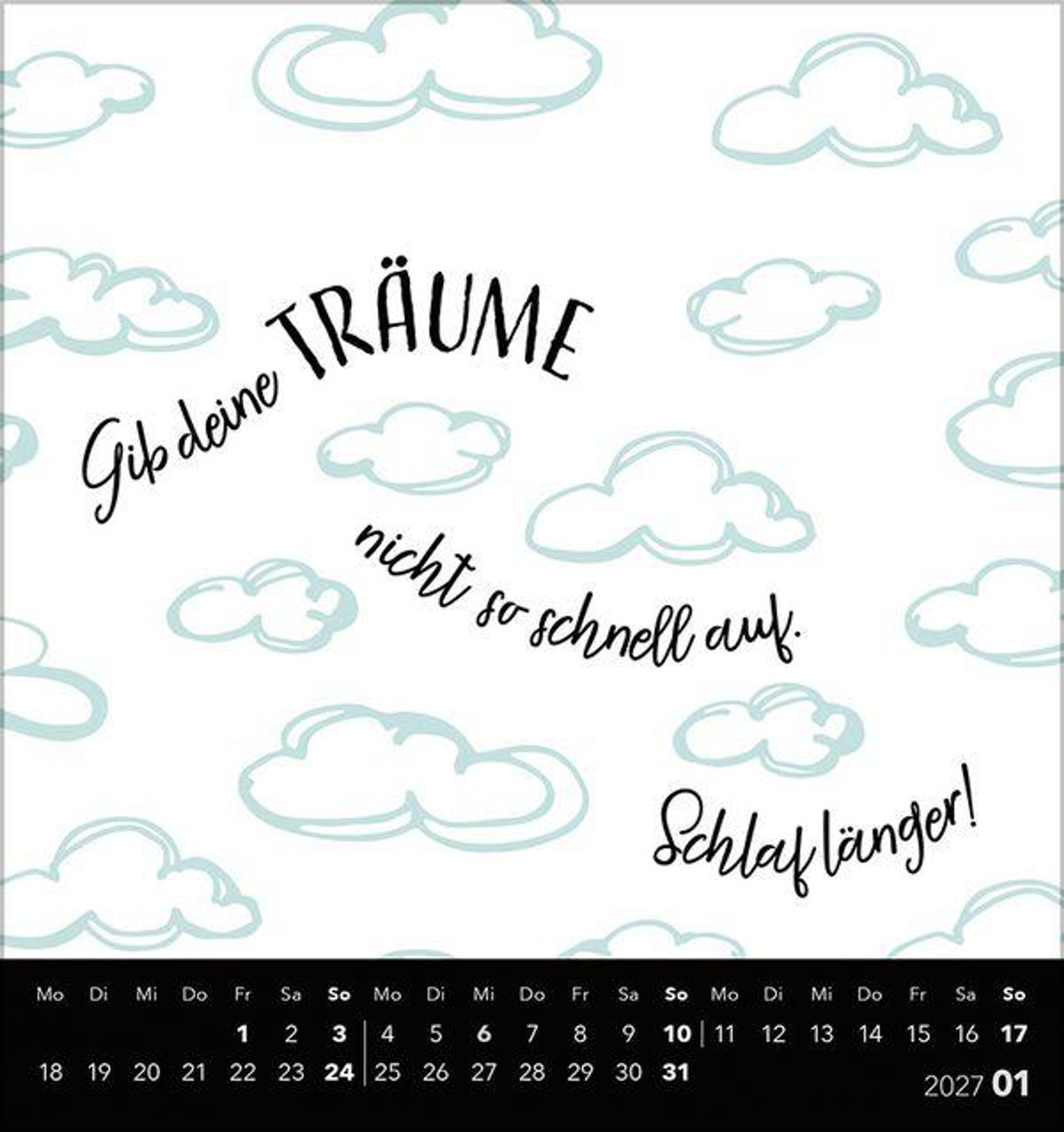 Jedes Kalenderblatt ist so gestaltet, dass es einfach abzutrennen ist. Somit können Sie jeden Monat eine Postkarte mit einem schönen Spruch versenden oder verschenken.