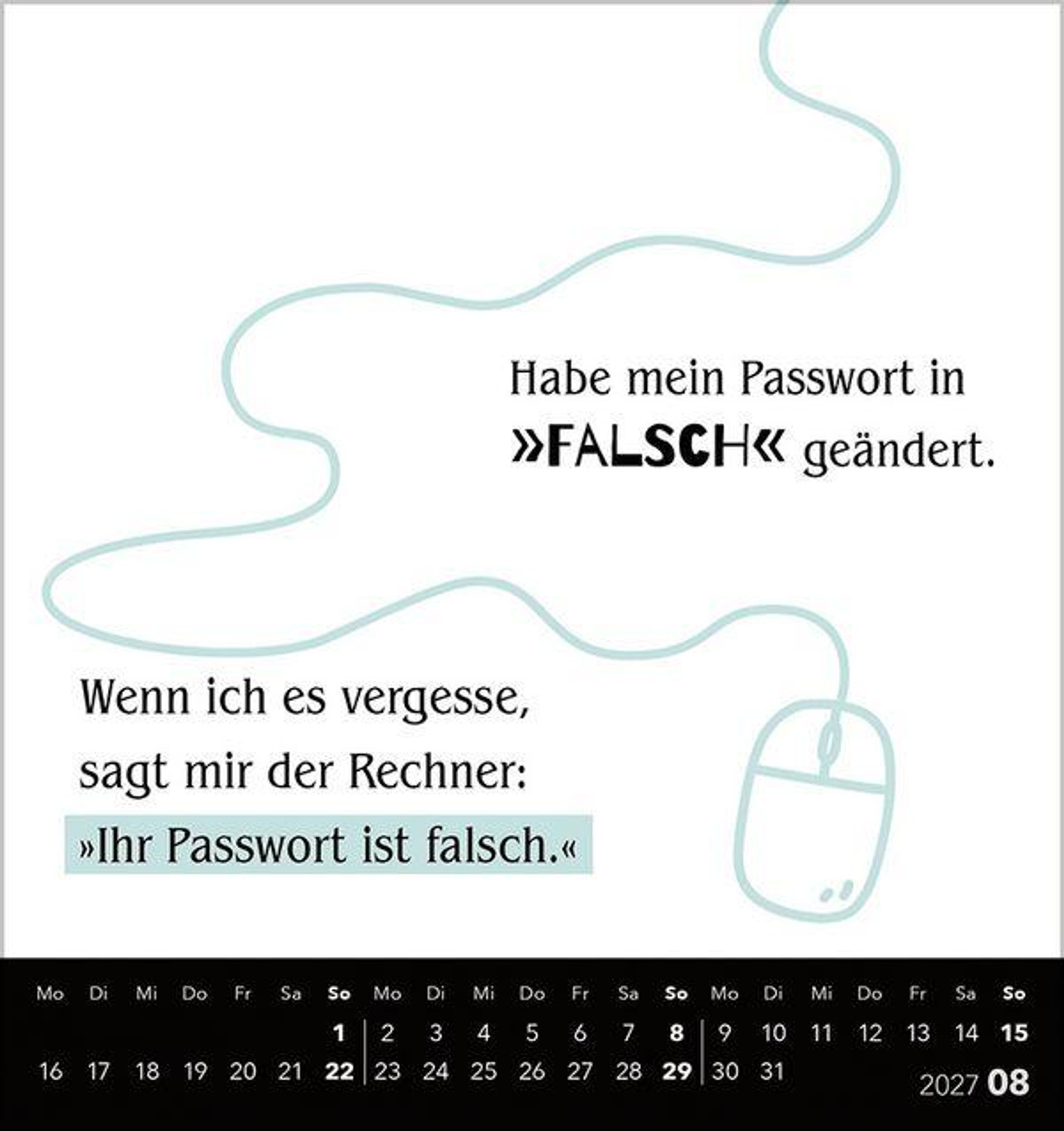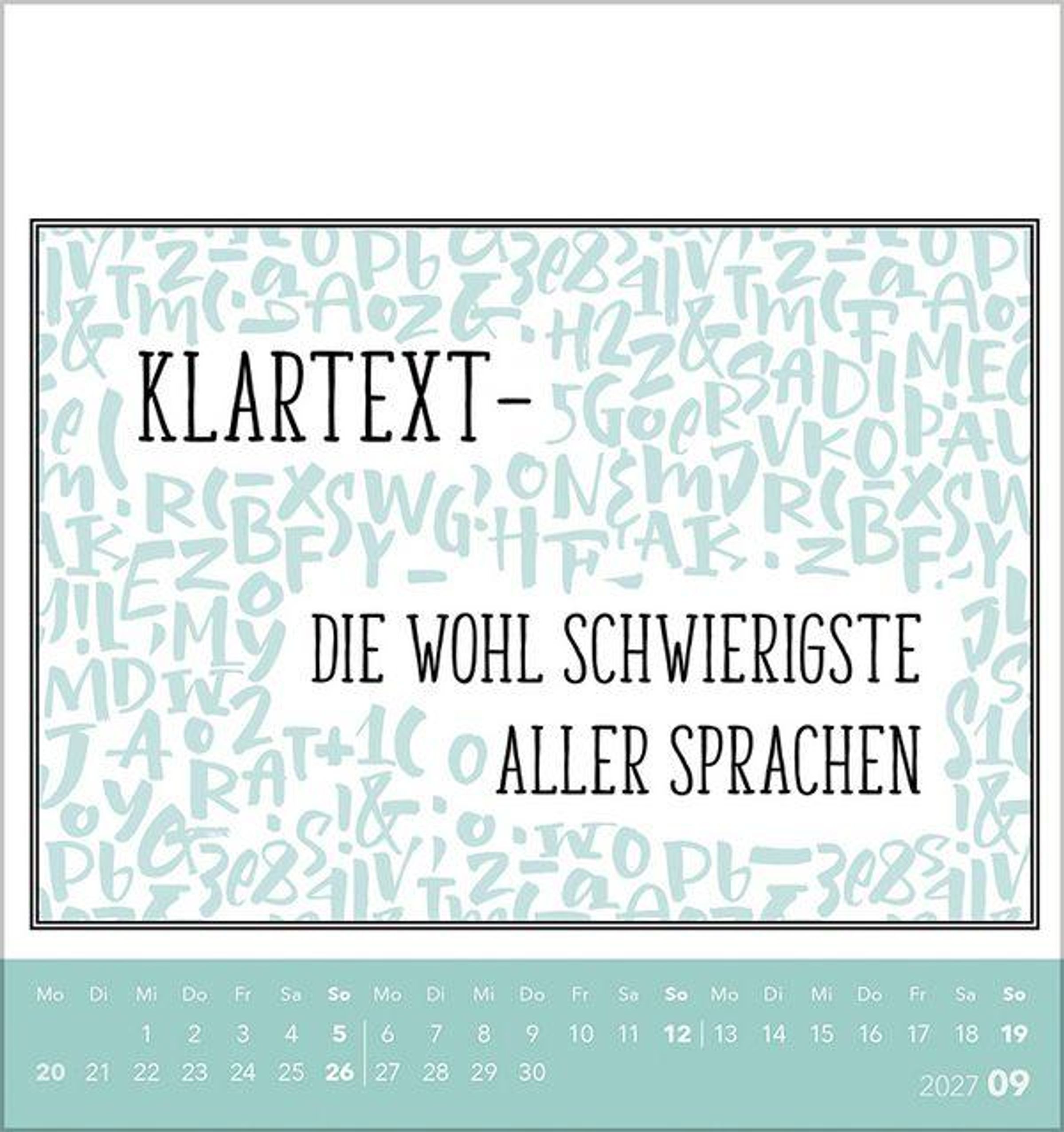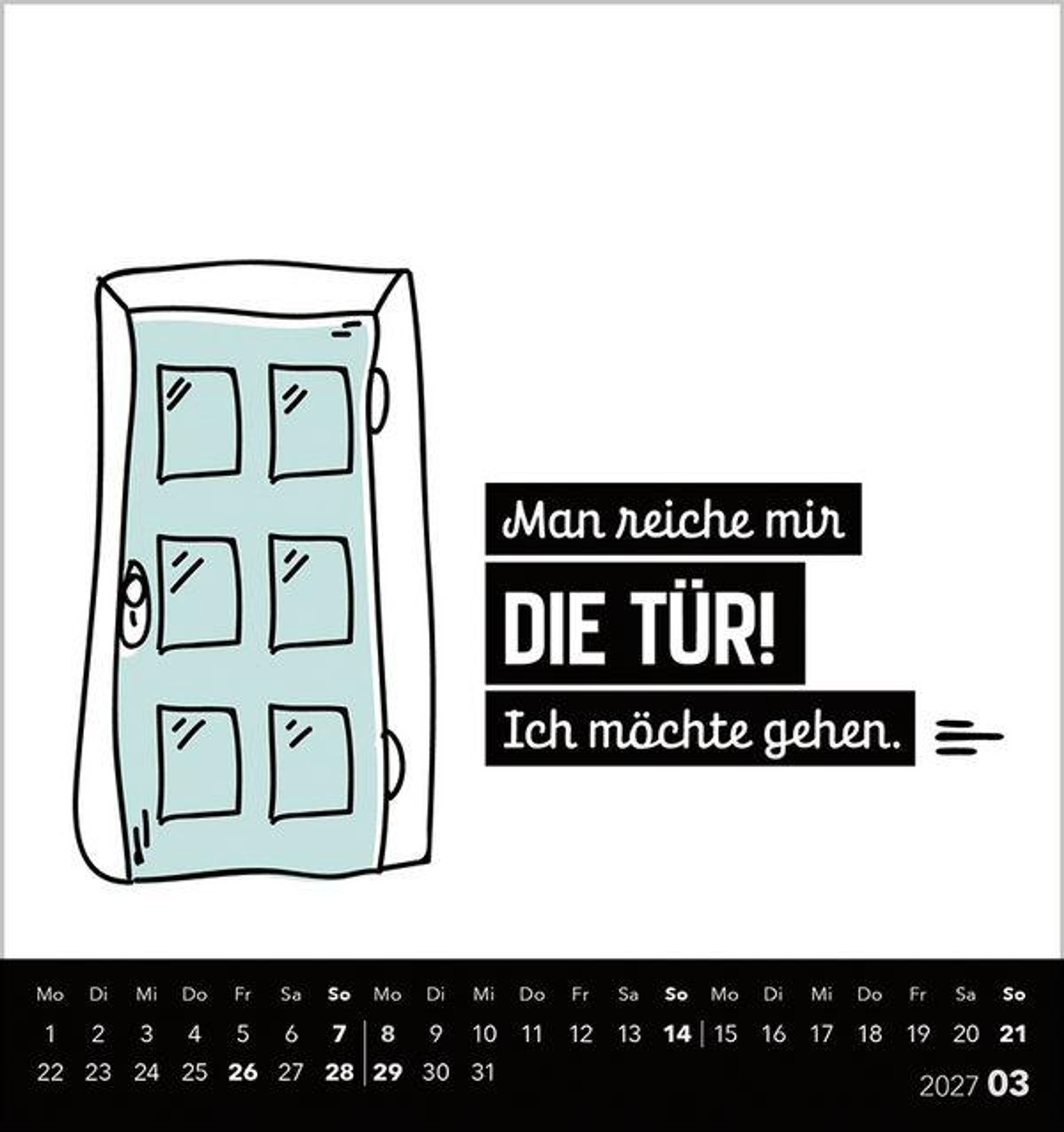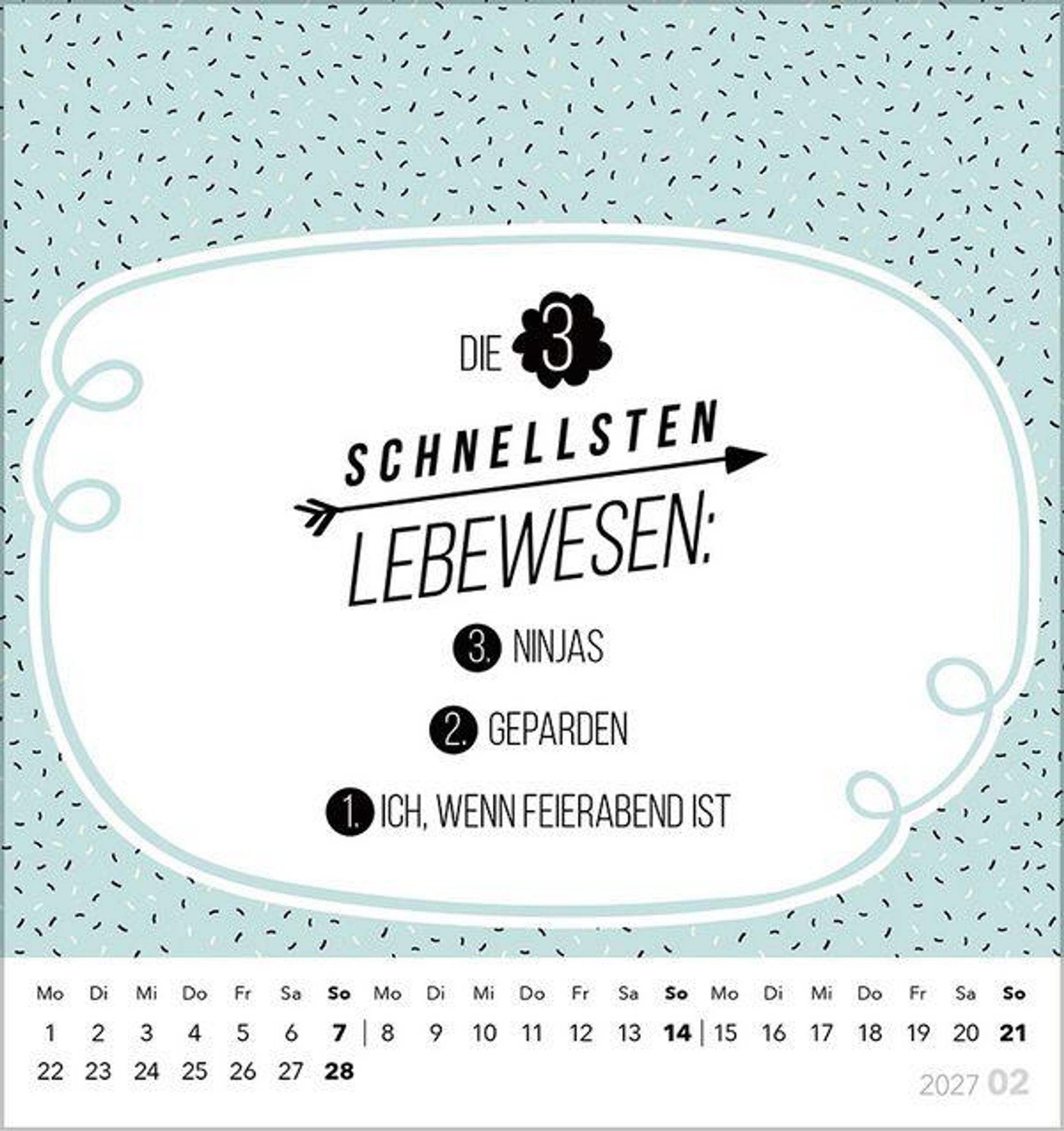 - Aufstellbarer Postkartenkalender mit lustigen Sprüchen. Tisch- und Wandkalender mit abtrennbaren Karten.
