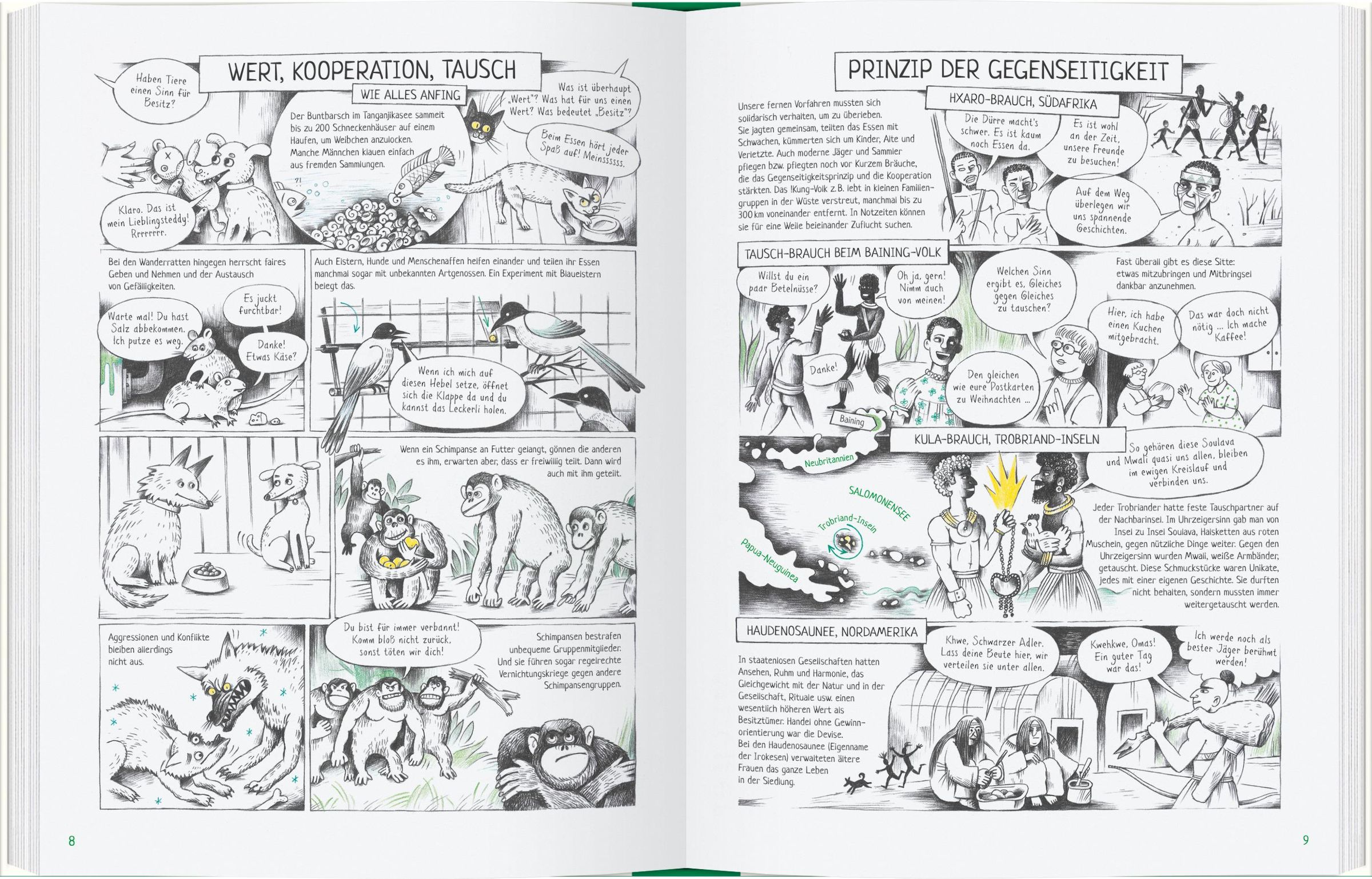 Euro, Dollar, Yen, Franken, Schilling, Pound - in aller Welt gibt es Geld. Doch was ist 'Geld' eigentlich? Münzen, Scheine, Guthaben auf der Bank? Kreditkarten und Kryptowährung? Wer hat all das wann und wo erfunden? Regiert Geld wirklich die Welt, wie das Sprichwort sagt? Und wer bestimmt dafür die Regeln? Wie funktionierte Handel, bevor es Geld gab? Warum ist Geld eigentlich so ungerecht verteilt? Und wäre eine Welt ohne Geld möglich? Höchste Zeit, mit diesen ebenso unterhaltsamen wie informativen Bildtableaus des Künstlers Vitali Konstantinov auf all das eine Antwort zu finden und zu einem echten Experten in Sachen Geld zu werden!
