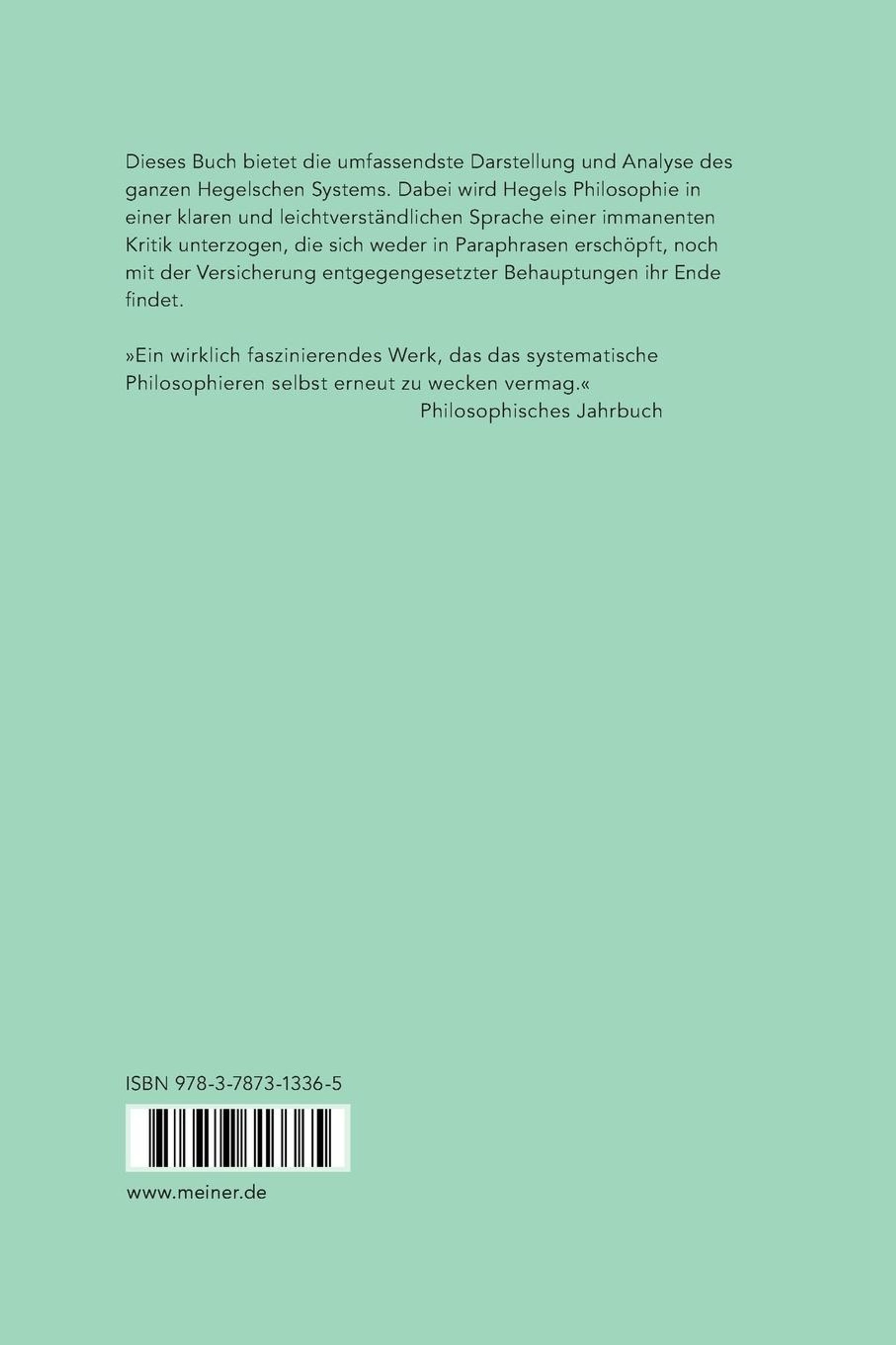 Dieses Buch bietet die umfassende neuere Darstellung und Analyse des ganzen Hegelschen Systems. Dabei wird Hegels Philosophie in einer klaren und leichtverständlichen Sprache einer immanenten Kritik unterzogen, die sich weder in Paraphrasen erschöpft noch mit der Versicherung entgegengesetzter Behauptung ihr Ende findet.