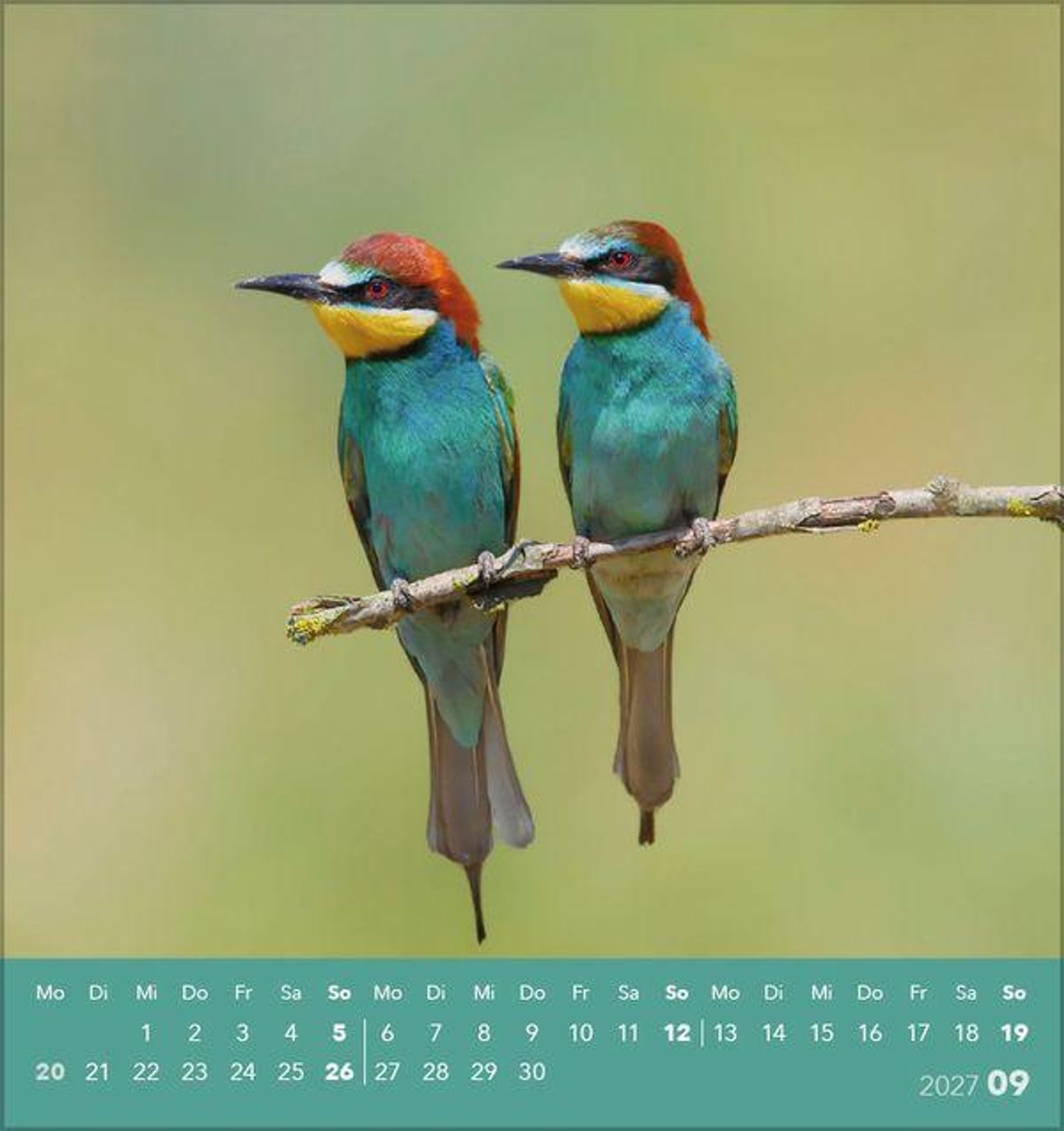 - Aufstellbarer Postkartenkalender mit Bildern von Vögeln in der Natur der Heimat. Tisch- und Wandkalender.