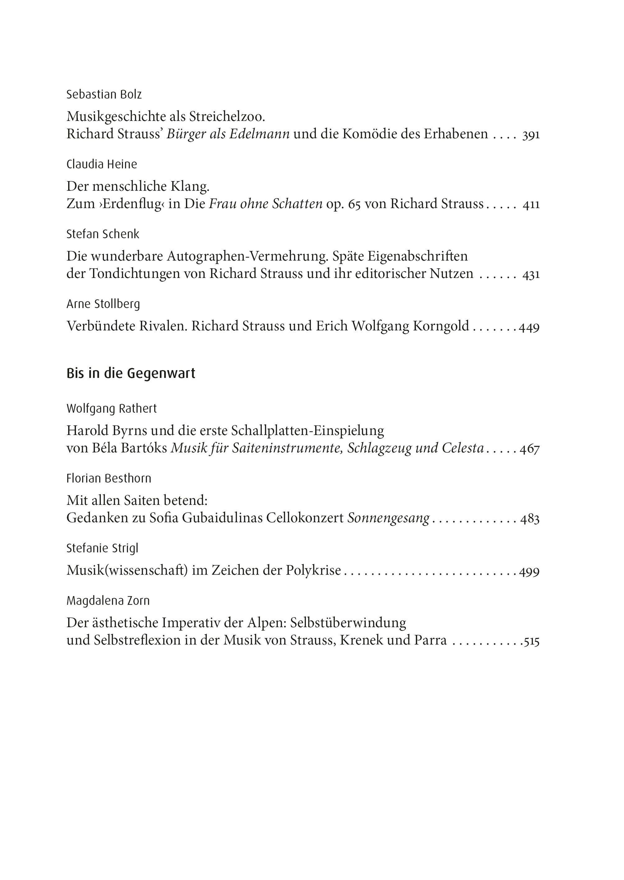 Dieser Band ist Hartmut Schick, Inhaber des Lehrstuhls für Musikwissenschaft an der Ludwig-Maximilians-Universität München, zum 65. Geburtstag gewidmet. Die Beiträge folgen den Interessensschwerpunkten des Widmungsträgers und vertiefen und erweitern diese in Schlaglichtern auf die Musikgeschichte vom 16. Jahrhundert bis in die Gegenwart. Innerhalb der Texte zu Aspekten der Rezeptionsgeschichte, zum populären Konzert in München im 19. Jahrhundert, zu einem Hammerflügel von Nanette Streicher, zu Editorik, zur Klimakrise oder zum Bergsteigen, zu Leonard Lechner, Claudio Monteverdi, Wolfgang Amadeus Mozart, Antonín Dvöák, Richard Wagner, Ivan Zajc, Béla Bartók, Sofia Gubaidulina, Ernst Krenek oder Hector Parra nimmt Richard Strauss eine Sonderstellung ein: Mit acht Beiträgen ist dem Komponisten ein eigenes Kapitel gewidmet. Der Titel des Bandes, Von der Musik ausgehen, bildet die Grundlinie der musikwissenschaftlichen Arbeiten des Widmungsträgers: Es ist das Interesse an der musikalischen Substanz und Struktur, das seinen Blick auf die Musikgeschichte prägt und seine Analysen von Werken vom italienischen Madrigal über die Wiener Klassik und Antonín Dvöák bis zu den Tondichtungen von Richard Strauss, zur Musik Béla Bartóks und Alexander von Zemlinskys leitet - und das auch für die Beiträge dieser Festschrift eine maßgebliche Orientierung bildet.