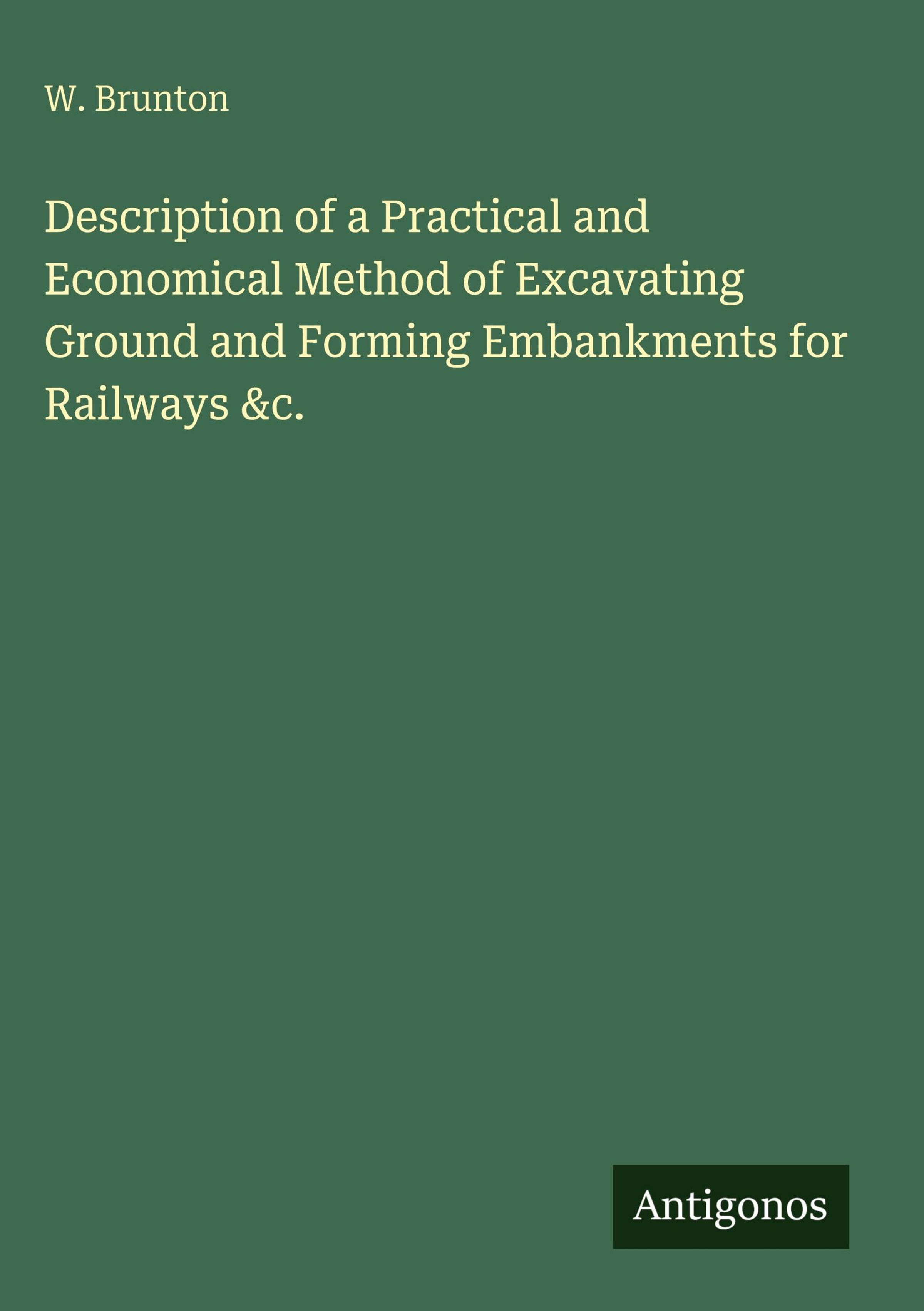 W. Brunton: Description of a Practical and Economical Method of Excavating Ground and Forming Embankments for..., Gebunden