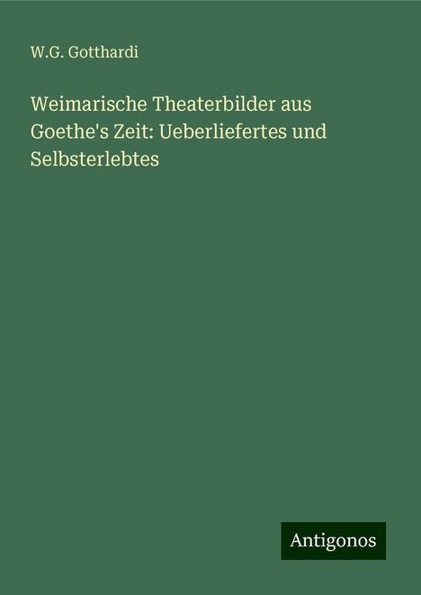 W. G. Gotthardi: Gotthardi, W: Weimarische Theaterbilder aus Goethe's Zeit: U, Fester Einband