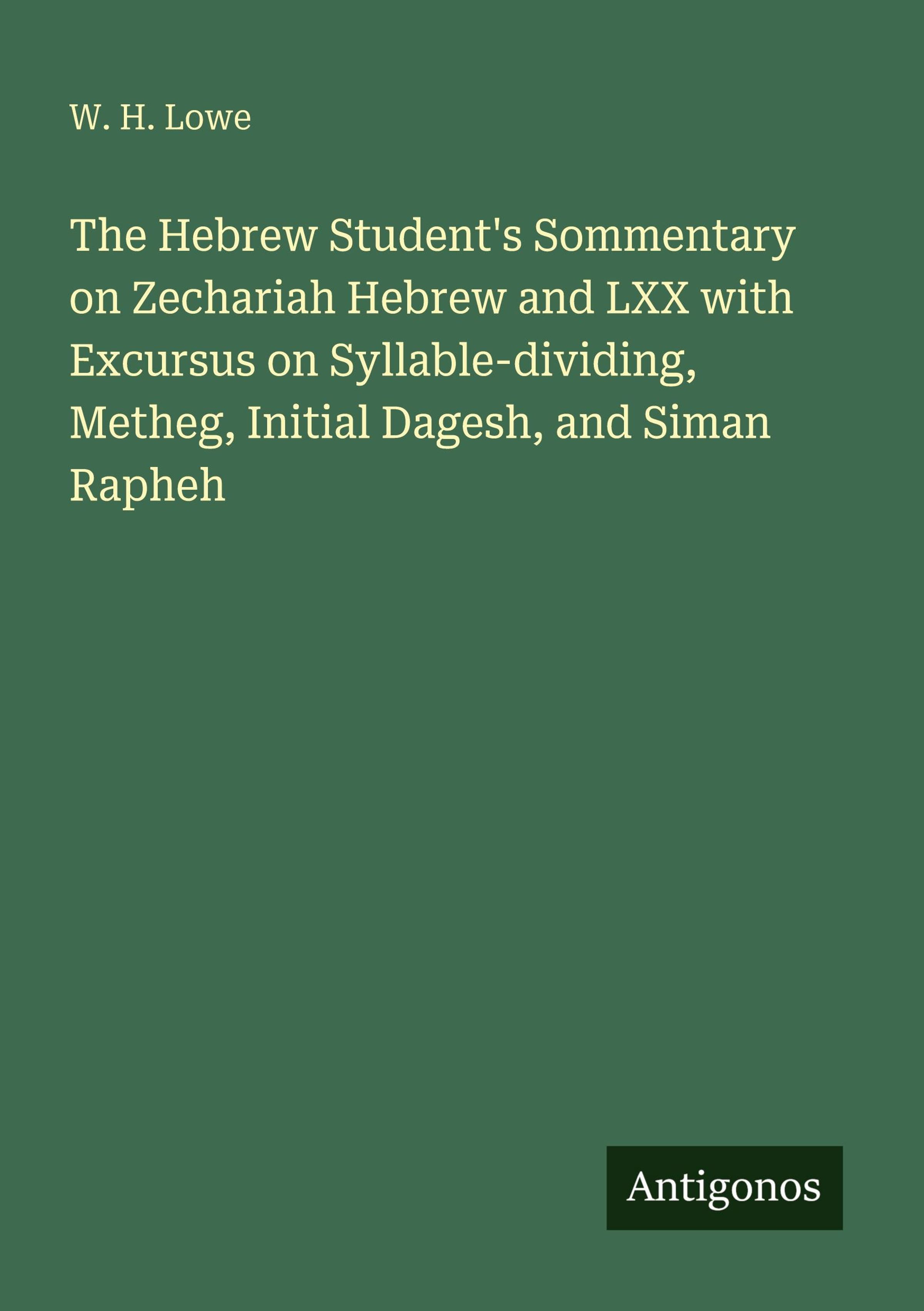 W. H. Lowe: The Hebrew Student's Sommentary on Zechariah Hebrew and LXX with Excursus on Syllable-dividing,..., Kartoniert / Broschiert