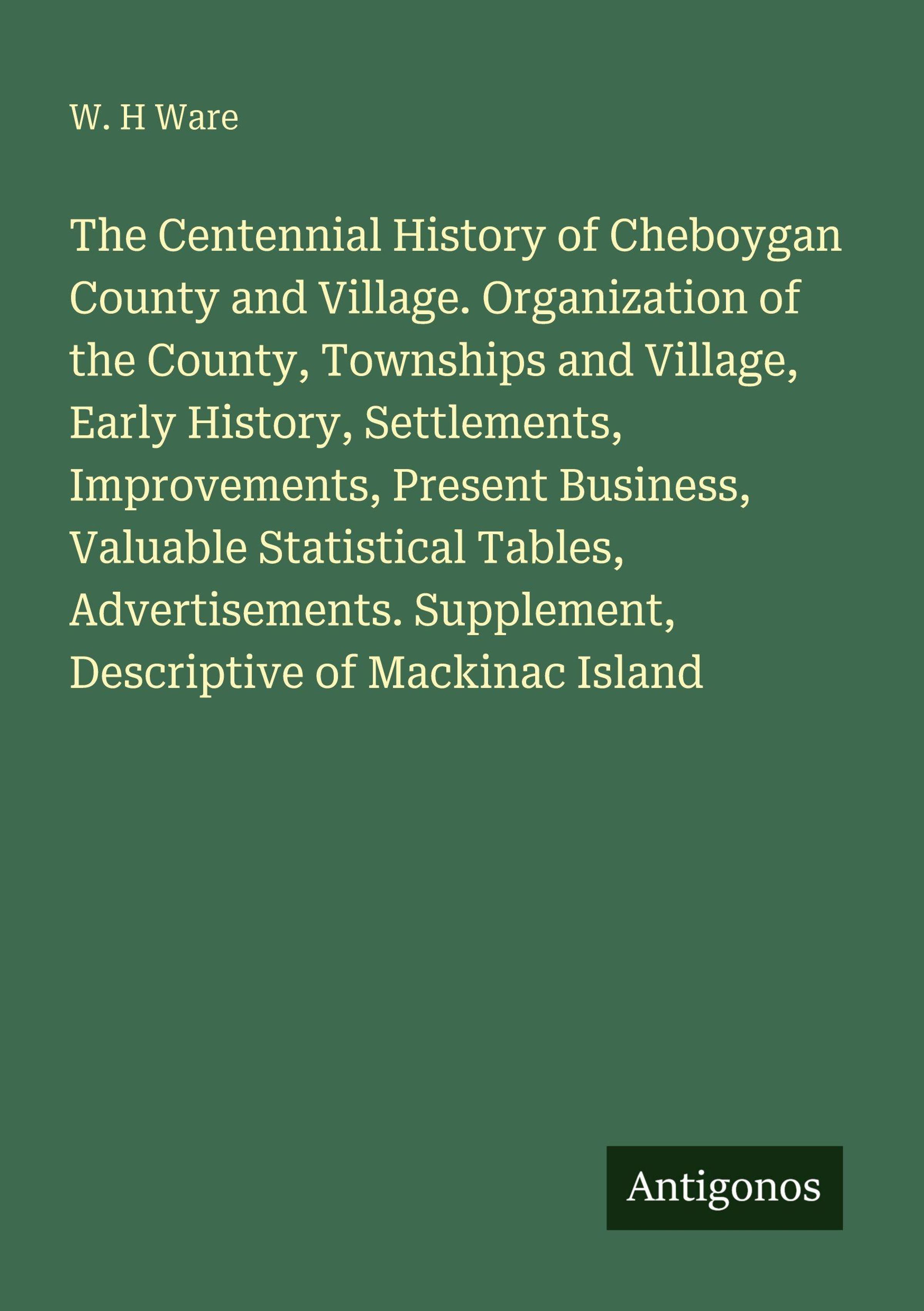 The Centennial History of Cheboygan County and Village. Organization of the County, Townships and Village, Early History, Settlements, Improvements, Present Business, Valuable Statistical Tables, Advertisements. Supplement, Descriptive of Mackinac Island
