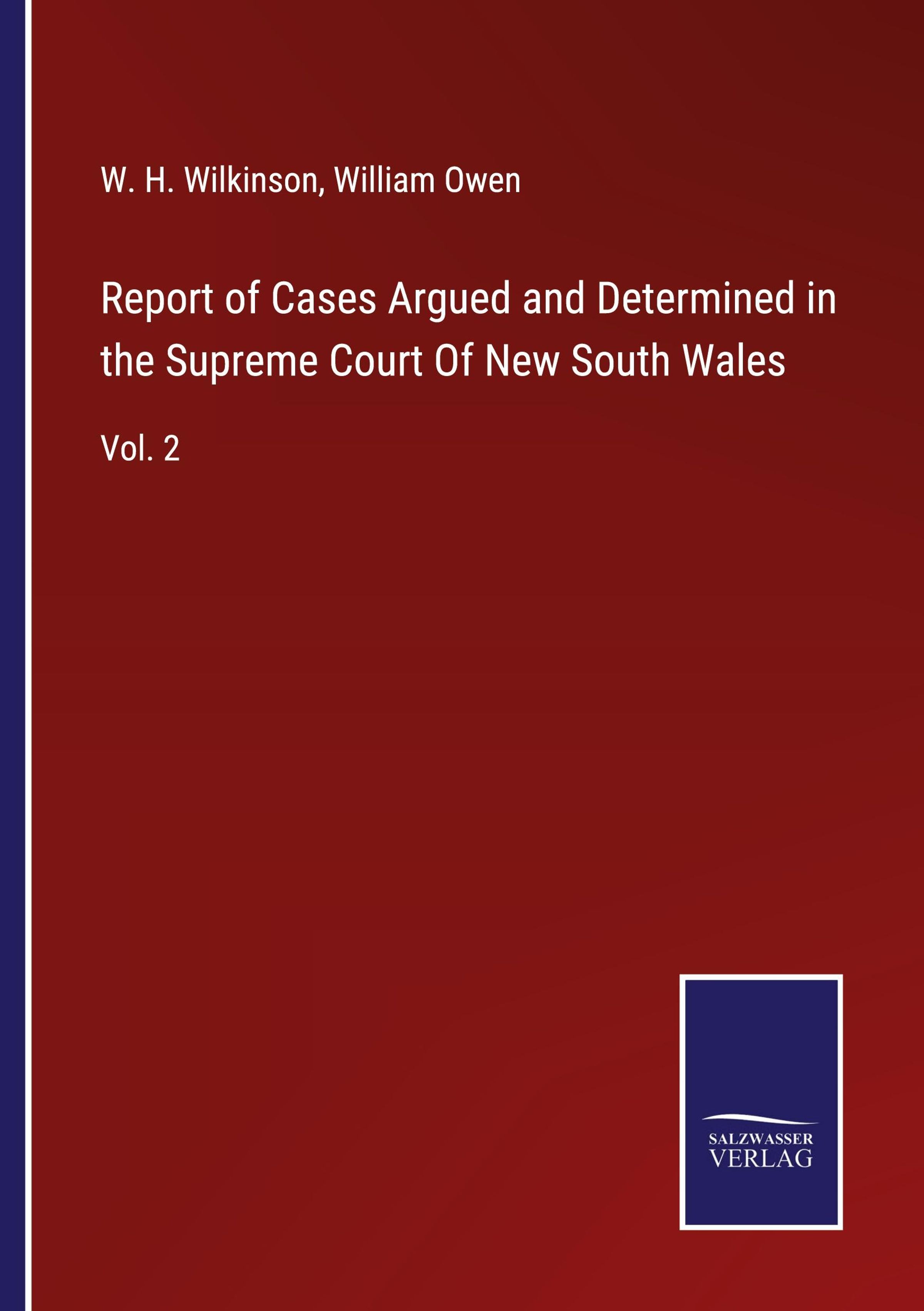 W. H. Wilkinson: Report of Cases Argued and Determined in the Supreme Court Of New South Wales, Kartoniert / Broschiert