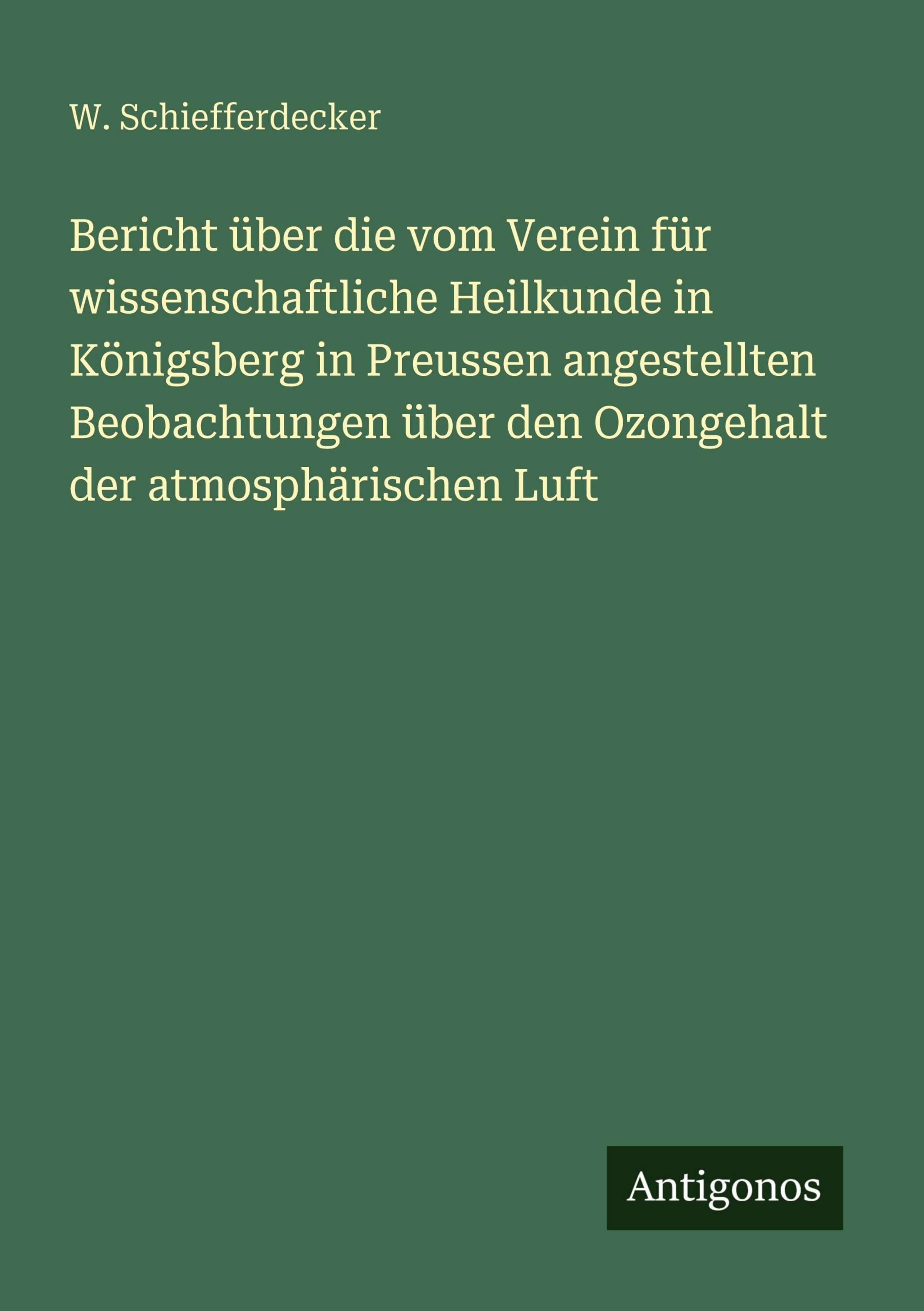 Bericht über die vom Verein für wissenschaftliche Heilkunde in Königsberg in Preussen angestellten Beobachtungen über den Ozongehalt der atmosphärischen Luft