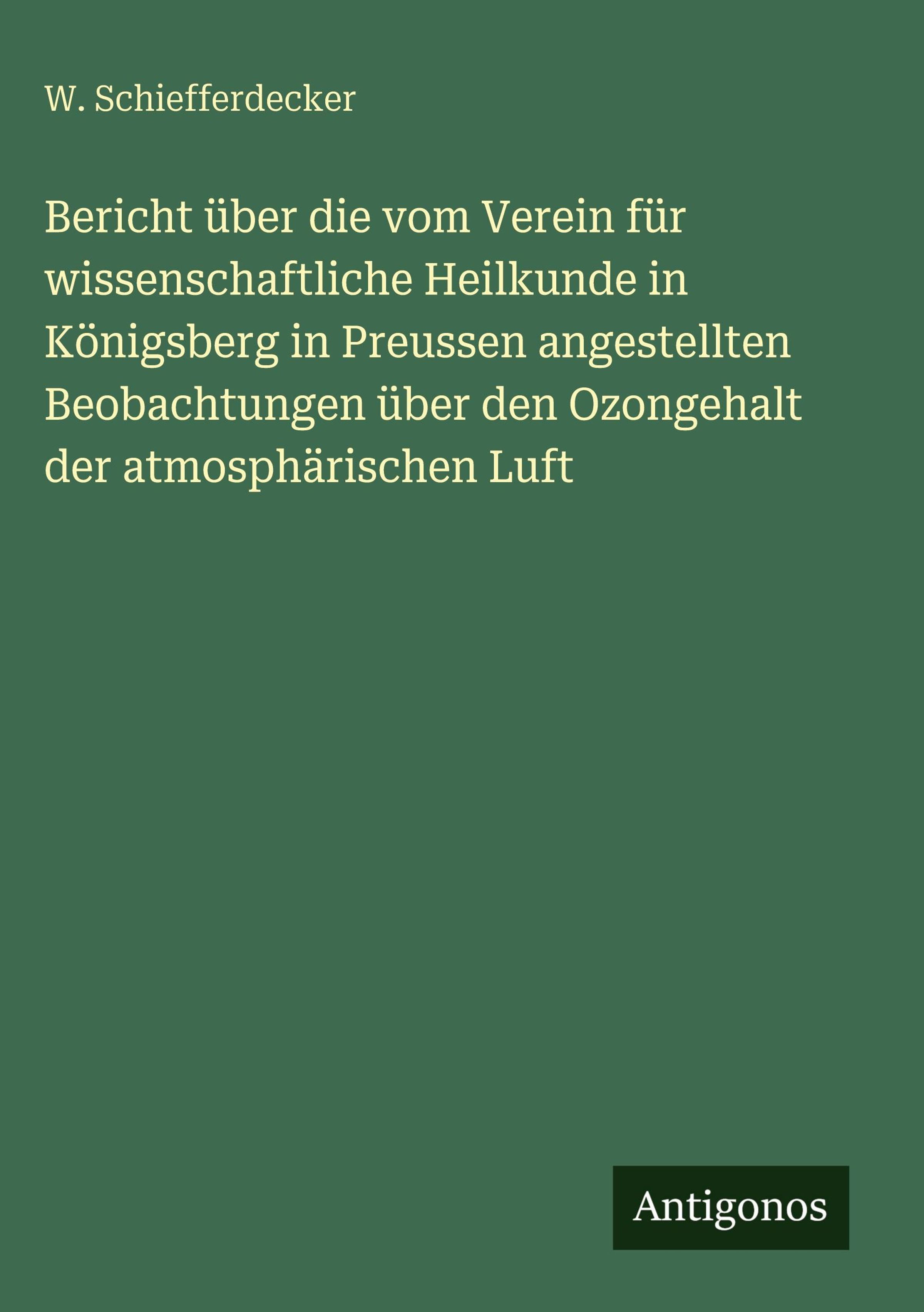 Bericht über die vom Verein für wissenschaftliche Heilkunde in Königsberg in Preussen angestellten Beobachtungen über den Ozongehalt der atmosphärischen Luft