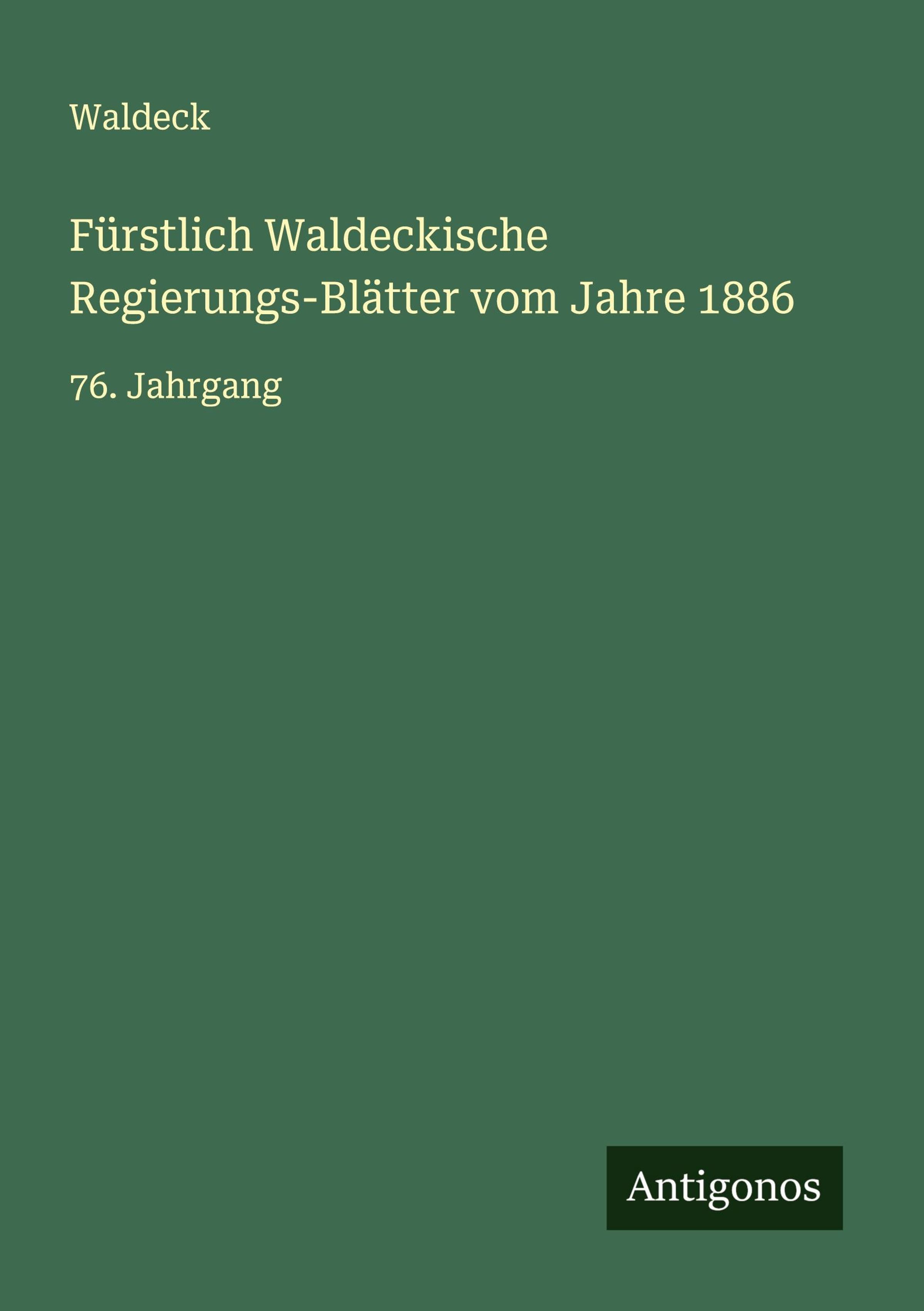 Waldeck: Fürstlich Waldeckische Regierungs-Blätter vom Jahre 1886, Kartoniert / Broschiert