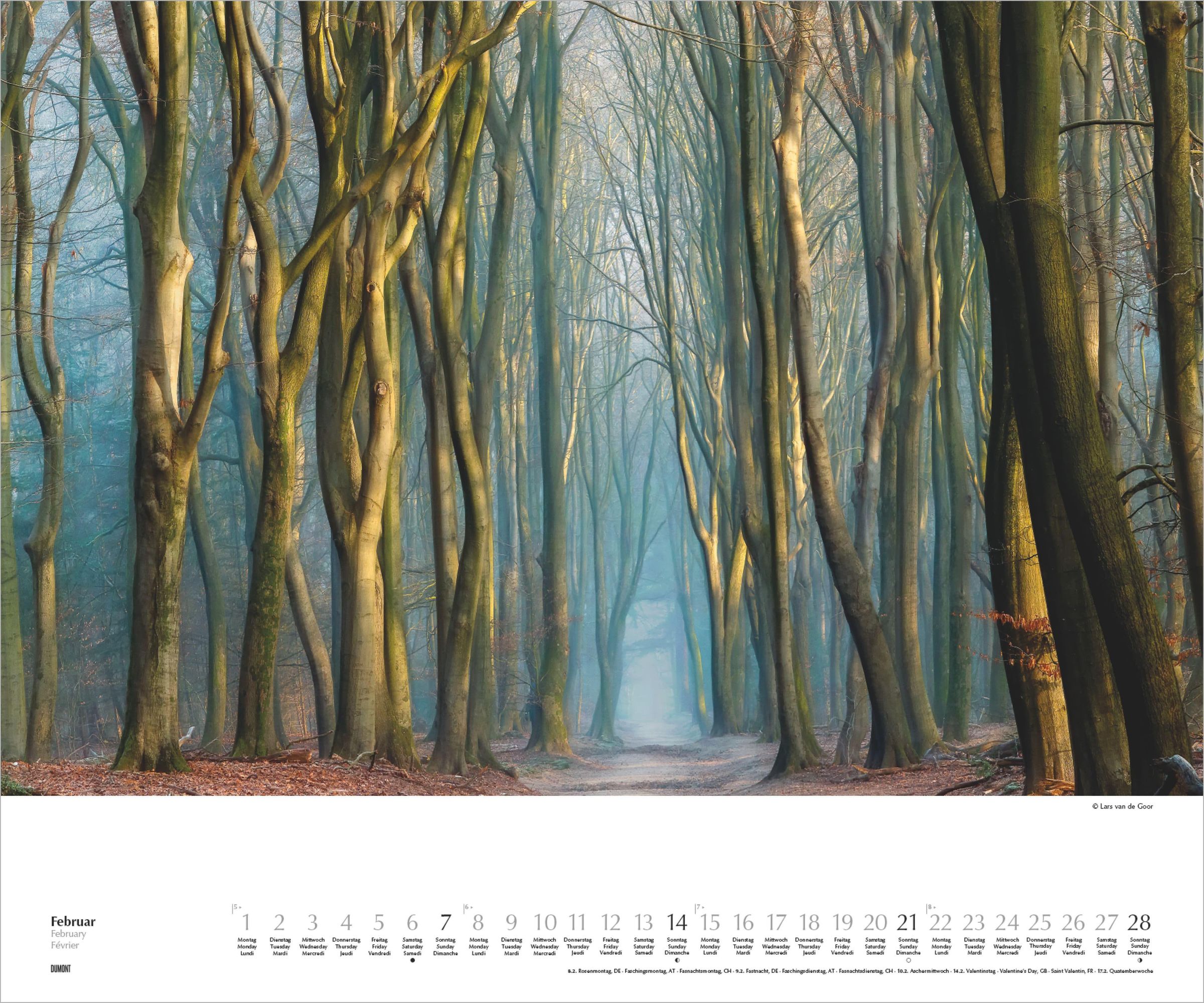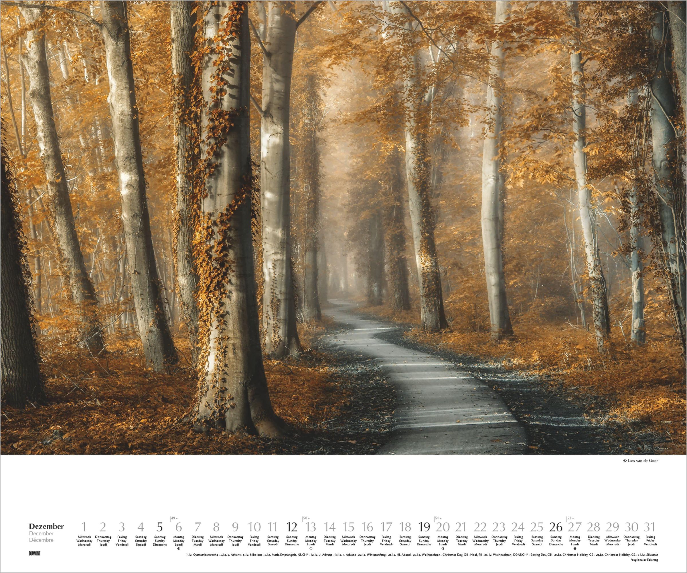 Magische Waldwege, faszinierende Lichtstimmungen und poetische Naturmomente -- der DUMONT Waldspaziergang Kalender 2027 bringt die einzigartige Bildwelt von Lars van de Goor direkt an Ihre Wand.