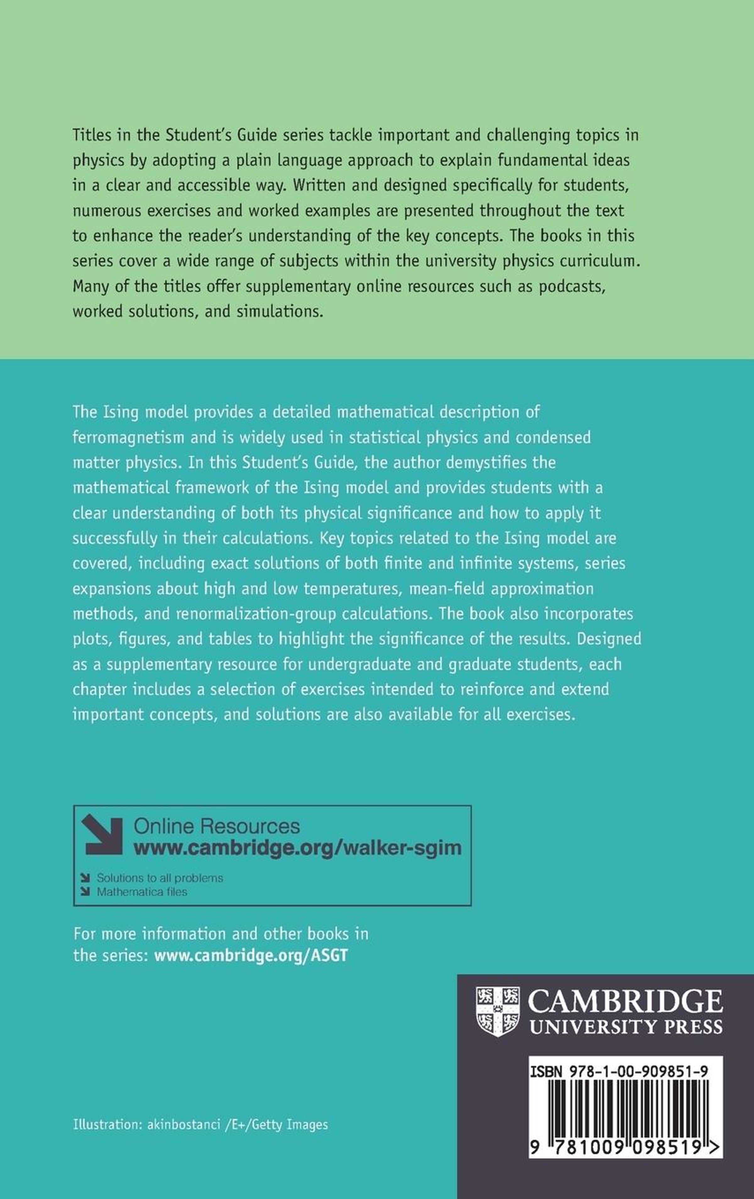 "This Student's Guide presents a focused and accessible introduction to the Ising model, an important theoretical model that provides a mathematical description of ferromagnetism. Designed as a supplementary resource for undergraduate and graduate students, each chapter includes a selection of exercises, with solutions provided online"--