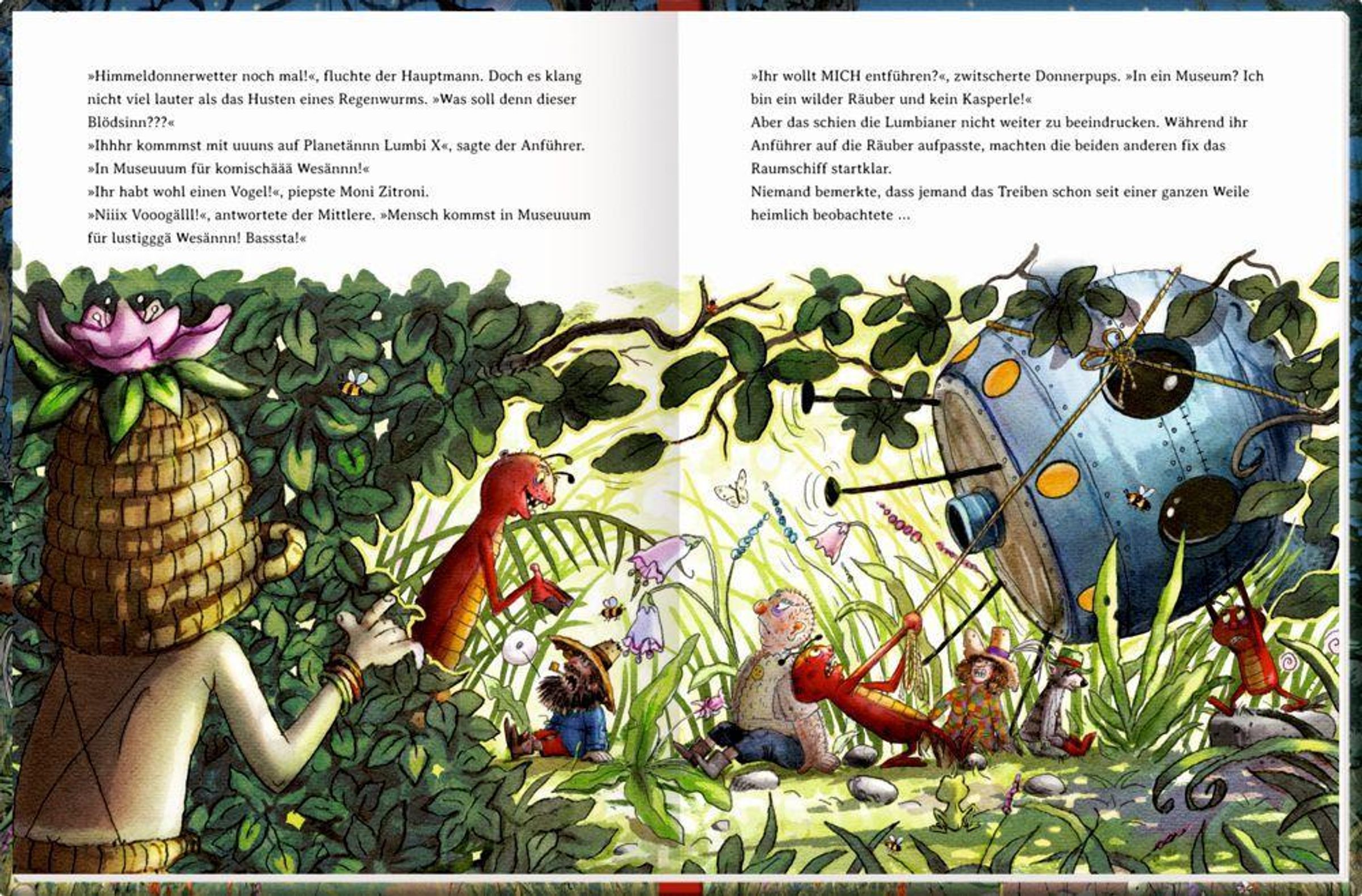 Das lässt sich Räuberhauptmann Donnerpups natürlich nicht bieten. Doch er hat die Rechnung ohne die Außerirdischen und ihre Verkleinerungswaffen gemacht! Zum Glück hat Robin im letzten Moment eine Idee ...