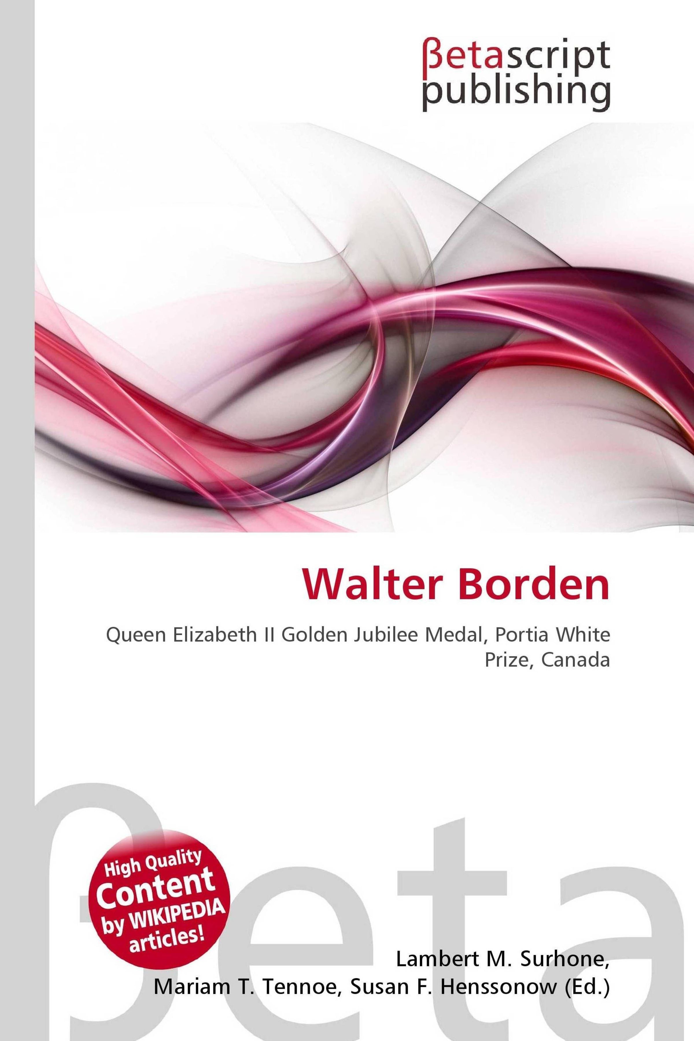 Please note that the content of this book primarily consists of articles available from Wikipedia or other free sources online. Walter Borden CM is a Canadian actor, poet and playwright. Borden was awarded the Queen Elizabeth II Golden Jubilee Medal, the African Nova Scotia Music Association (ANSMA) Music Heritage Award, and the Portia White Prize, which is awarded annually by the Nova Scotia Arts Council to someone who has made a significant contribution to culture and the arts in the province.