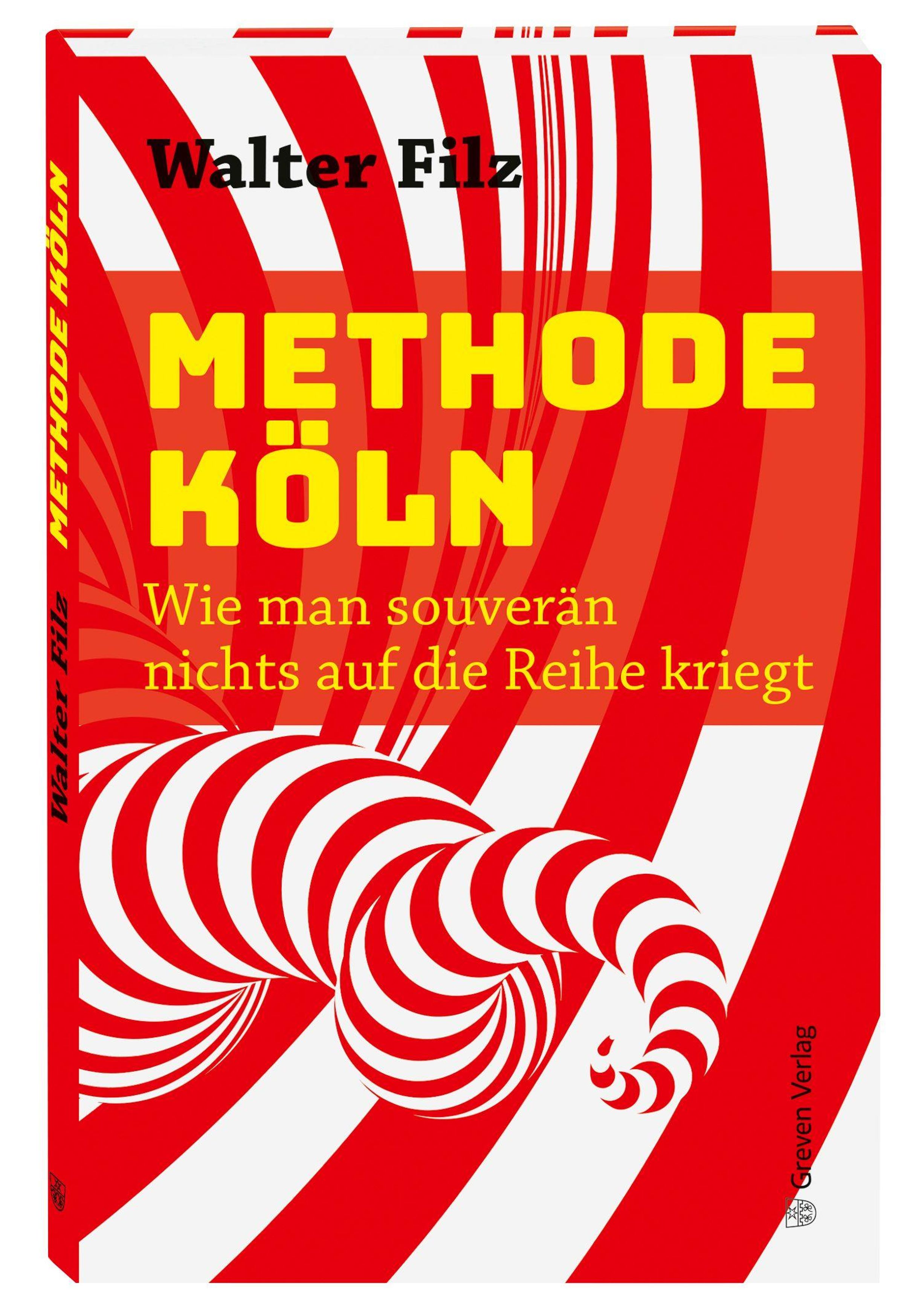 "METHODE KÖLN: Wie man souverän nichts auf die Reihe kriegt. Autor: Walter Filz." Rot-weiße Spiralmuster., Buch