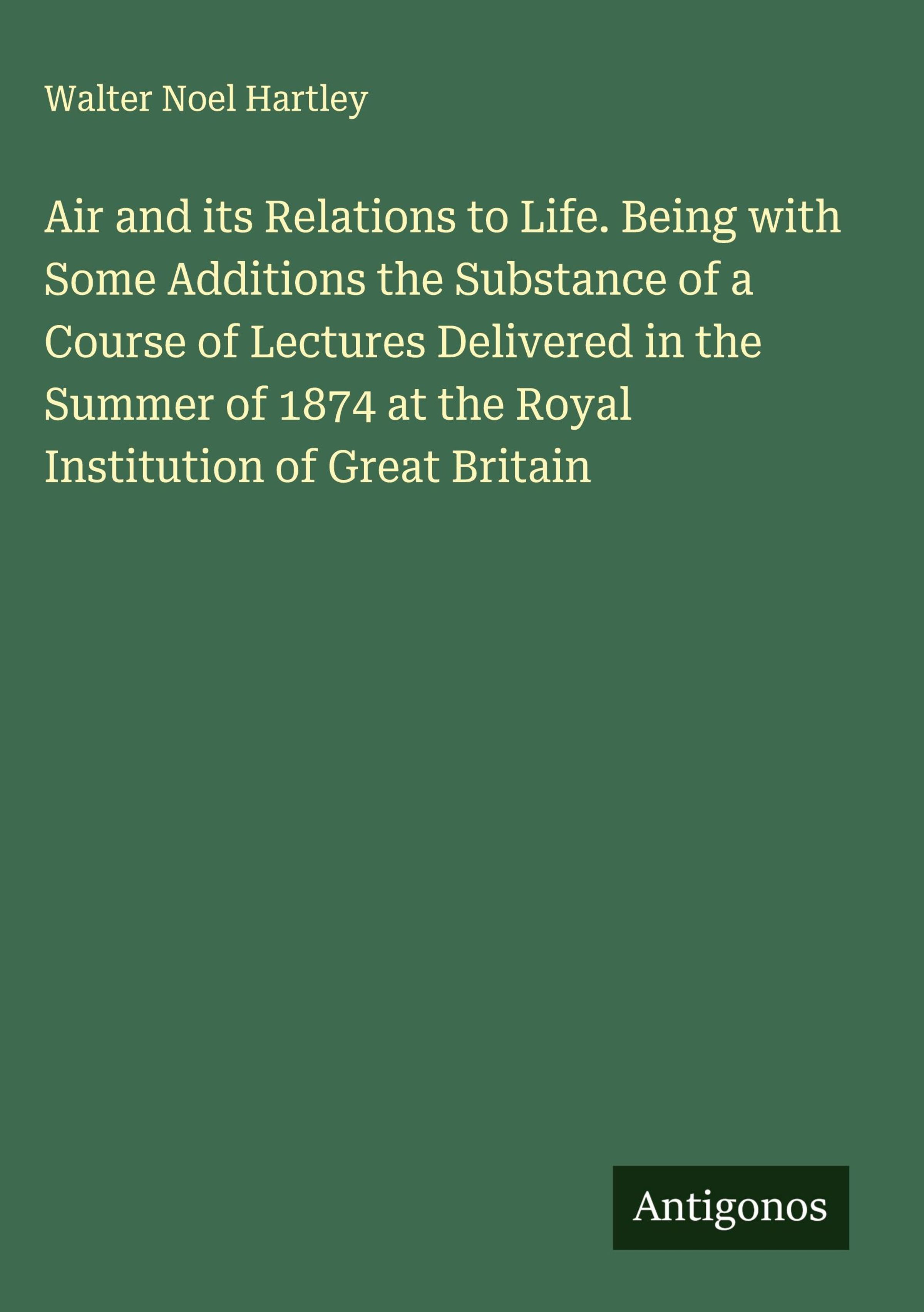 Walter Noel Hartley: Air and its Relations to Life. Being with Some Additions the Substance of a Course of..., Gebunden