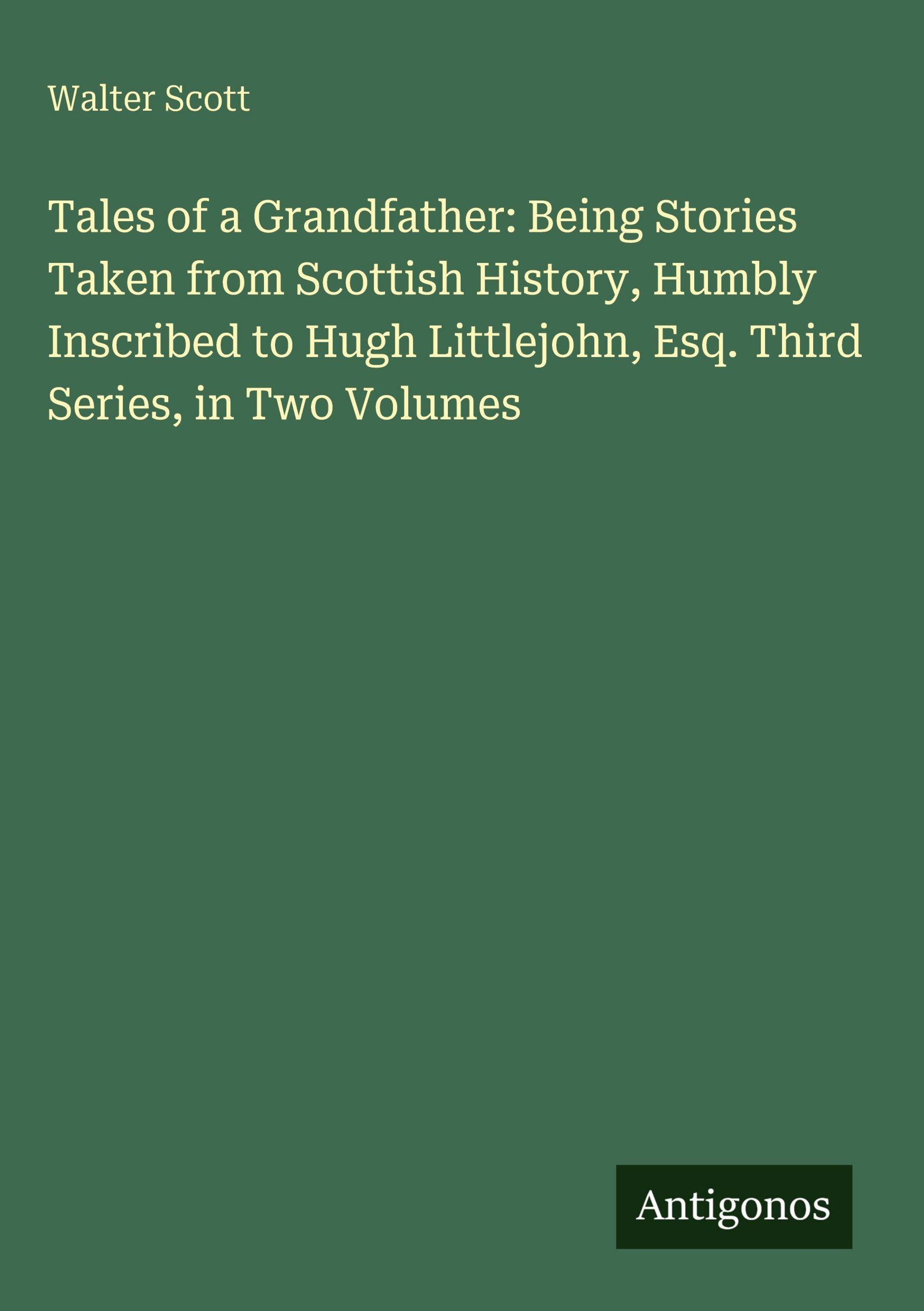 Weitere Ausgaben von Tales of a Grandfather: Being Stories Taken from Scottish History, Humbly Inscribed to Hugh Littlejohn, Esq. Third Series, in Two Volumes |