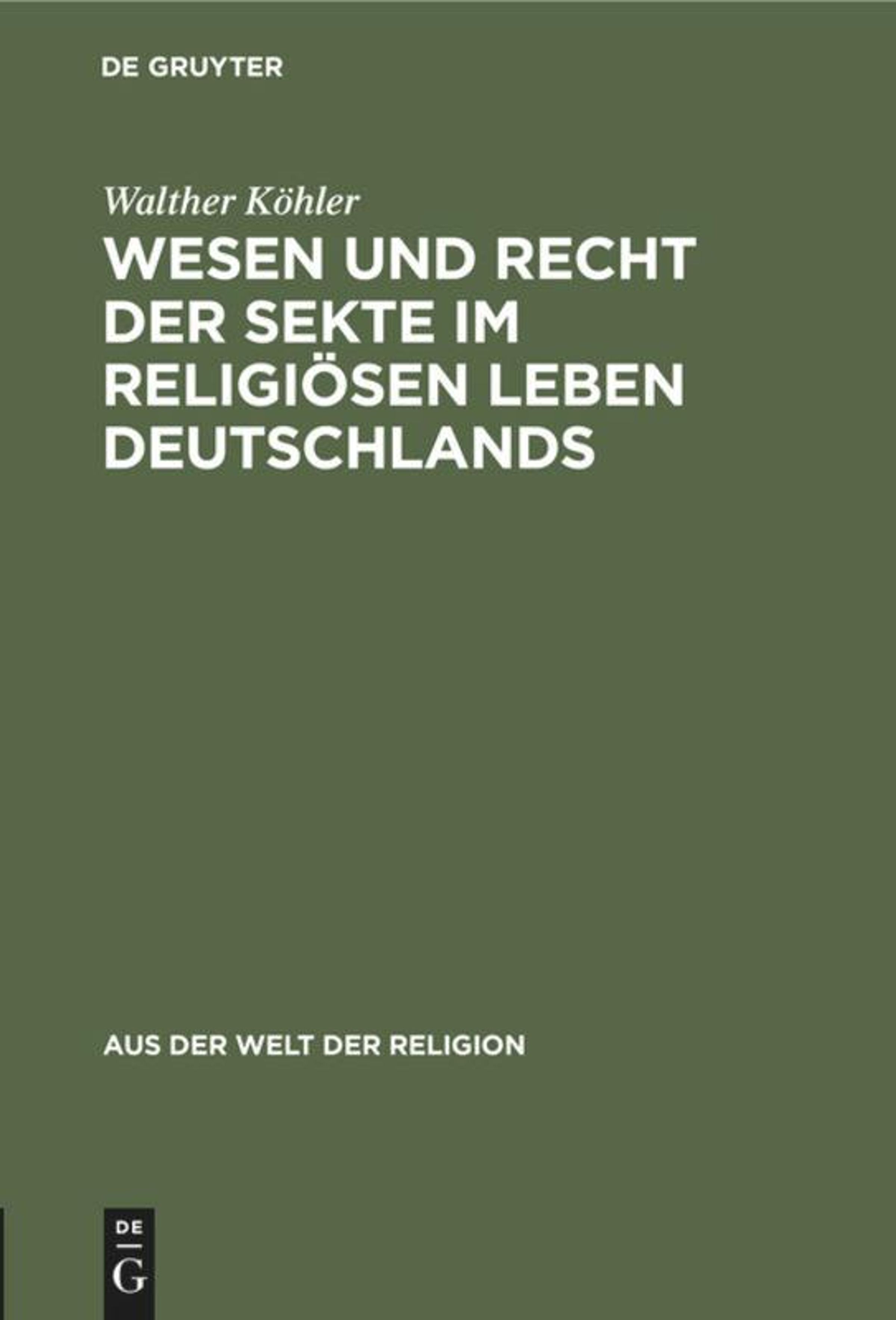 Frontmatter -- Vorwort -- Wesen und Recht der Sekte im religiösen Leben Deutschlands -- Backmatter