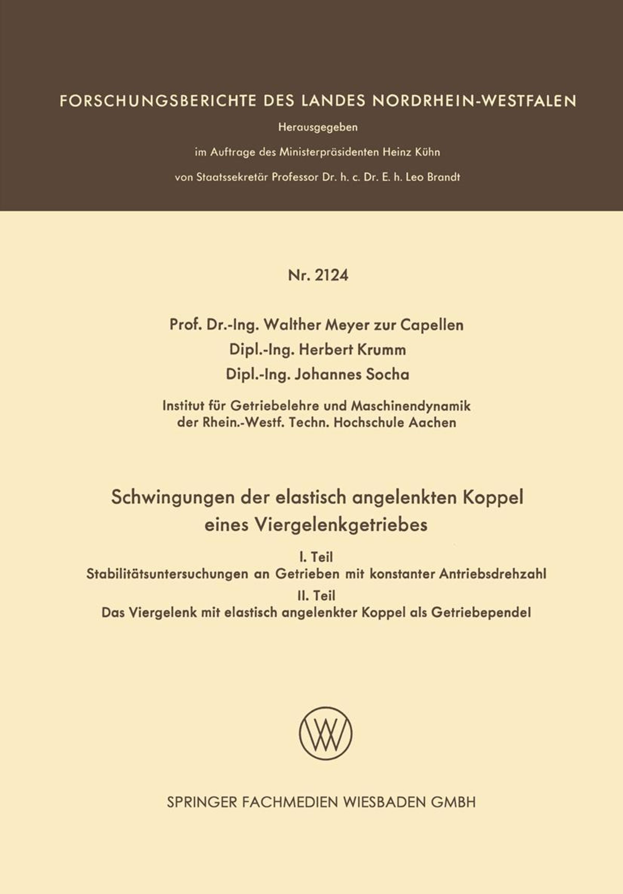 Walther Meyer Zur Capellen: Schwingungen der elastisch angelenkten Koppel eines Viergelenkgetriebes, Kartoniert / Broschiert