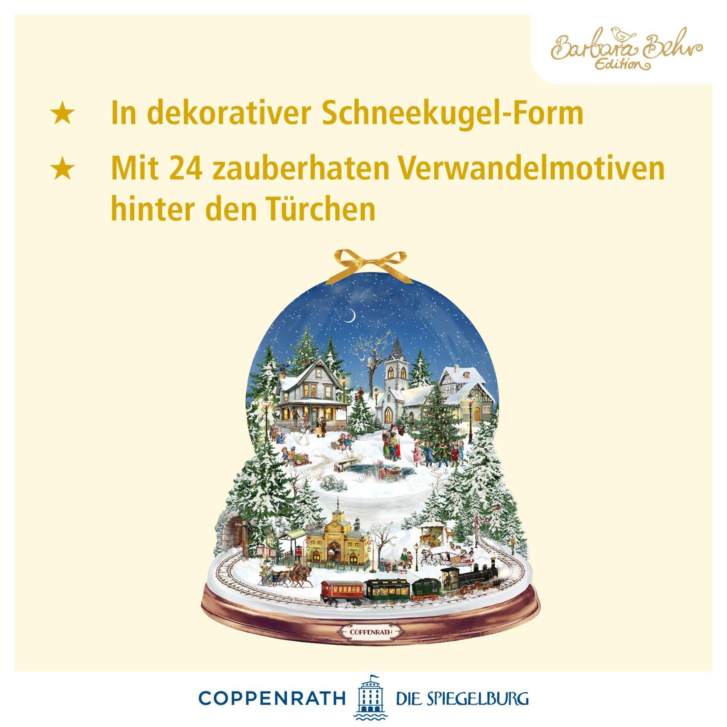 Die nostalgische Winterdorf-Szene mit Eisenbahn weckt Erinnerungen an idyllische Wintertage aus der Kindheit. Das große Format in Form einer Schneekugel mit dekorativem Schleifenband zum Aufhängen macht diesen Wandkalender zu einem stimmungsvollen Blickfang in jedem Zuhause. Hinter den 24 Türchen verbergen sich liebevoll gestaltete Verwandelmotive, die das winterliche Motiv nach und nach erweitern und die Schneekugel-Szenerie stimmungsvoll lebendig werden lassen. Nostalgischer Wand-Adventskalender im Schneekugel-Format