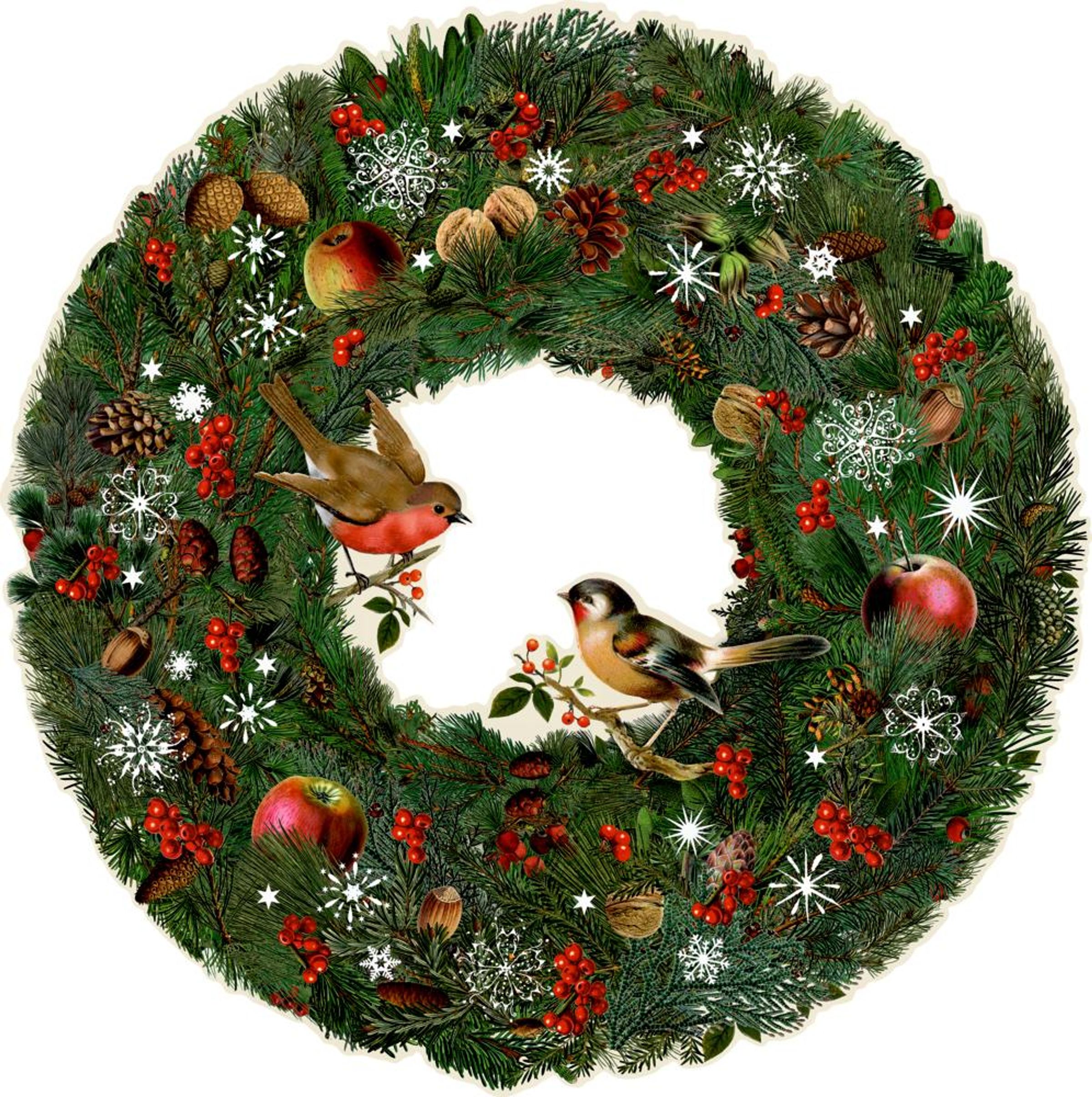 Der nostalgische Weihnachtskranz schmückt jedes Zuhause. Die zauberhafte Naturszene entführt den Betrachter in eine romantische Winterwelt.