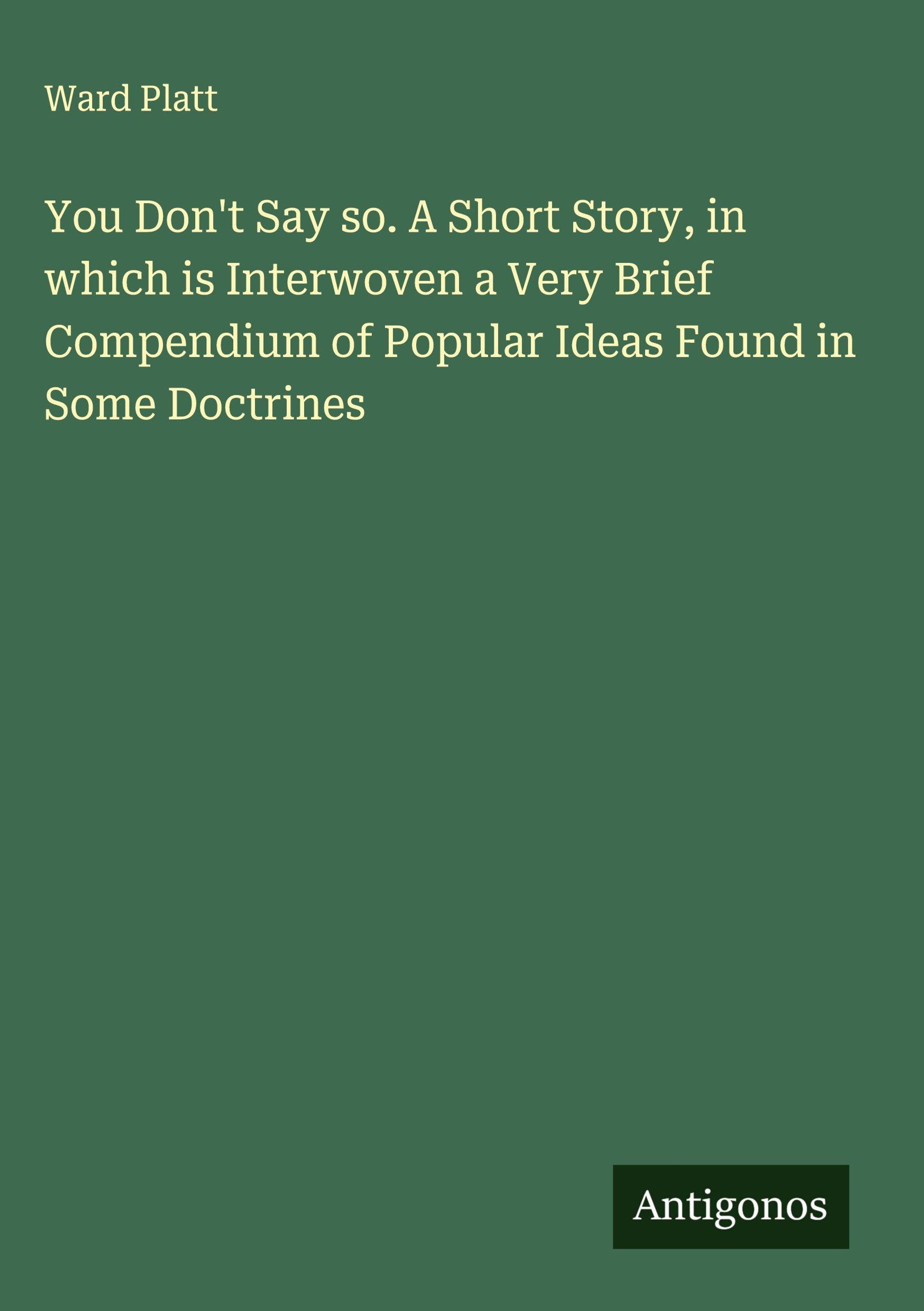 You Don't Say so. A Short Story, in which is Interwoven a Very Brief Compendium of Popular Ideas Found in Some Doctrines