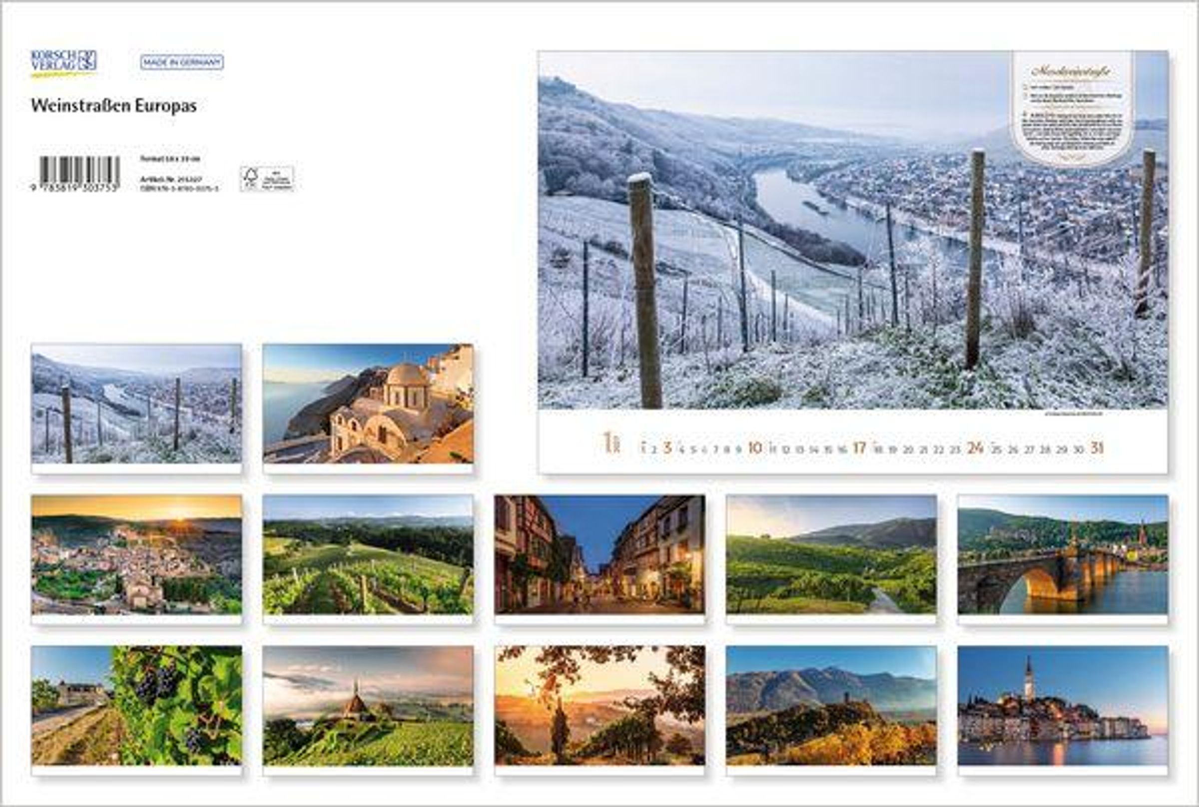 - Großer Foto-Wandkalender über die schönsten Weinstraßen Europas. Panorama Querformat: 58 x 39 cm.