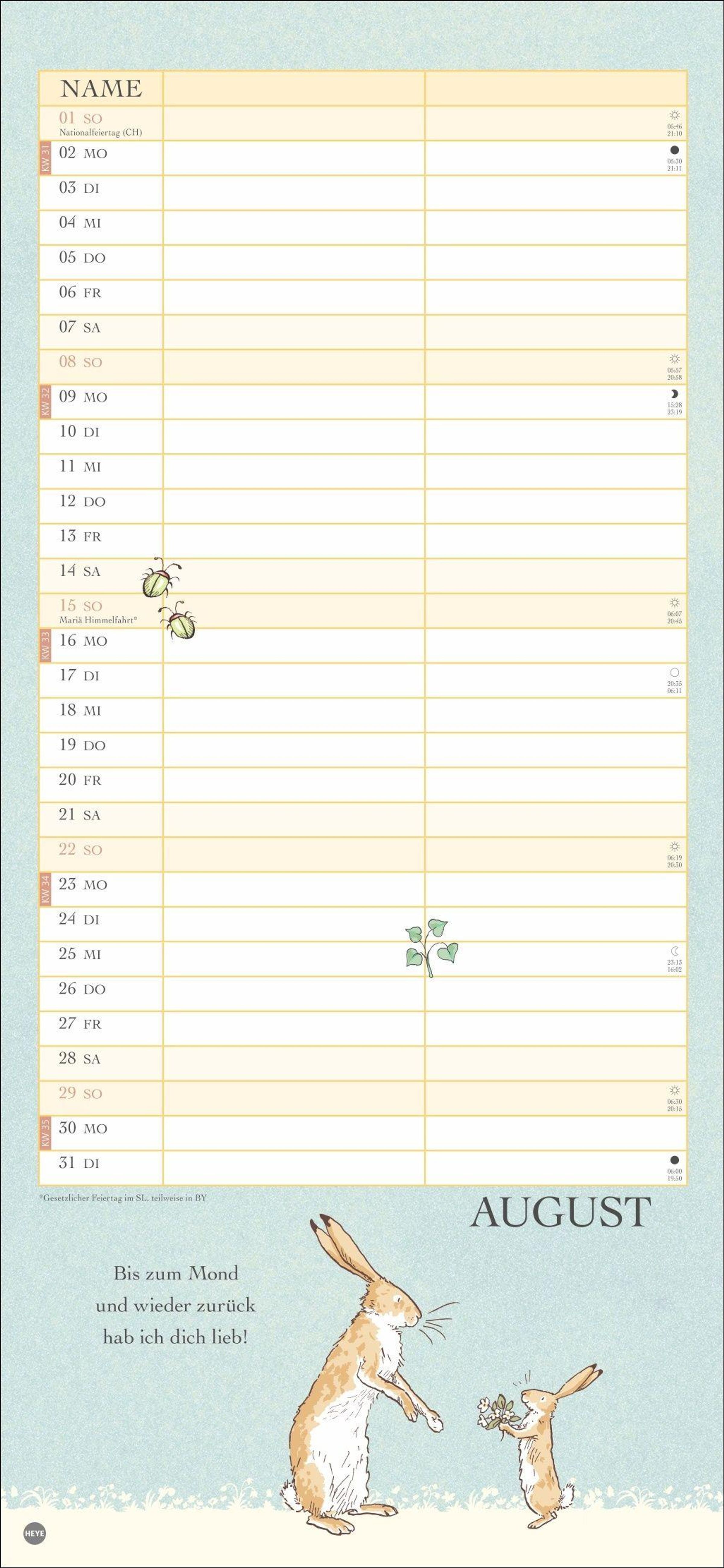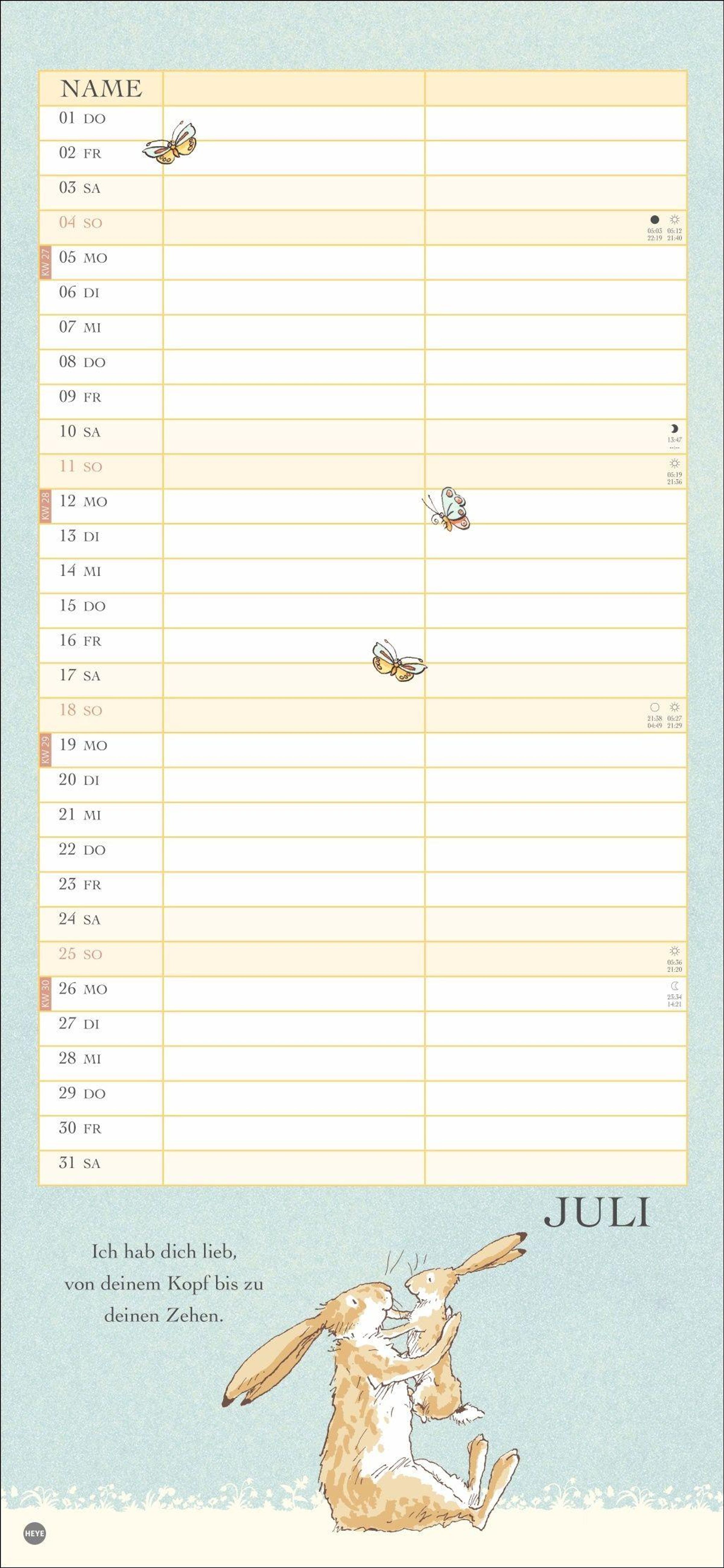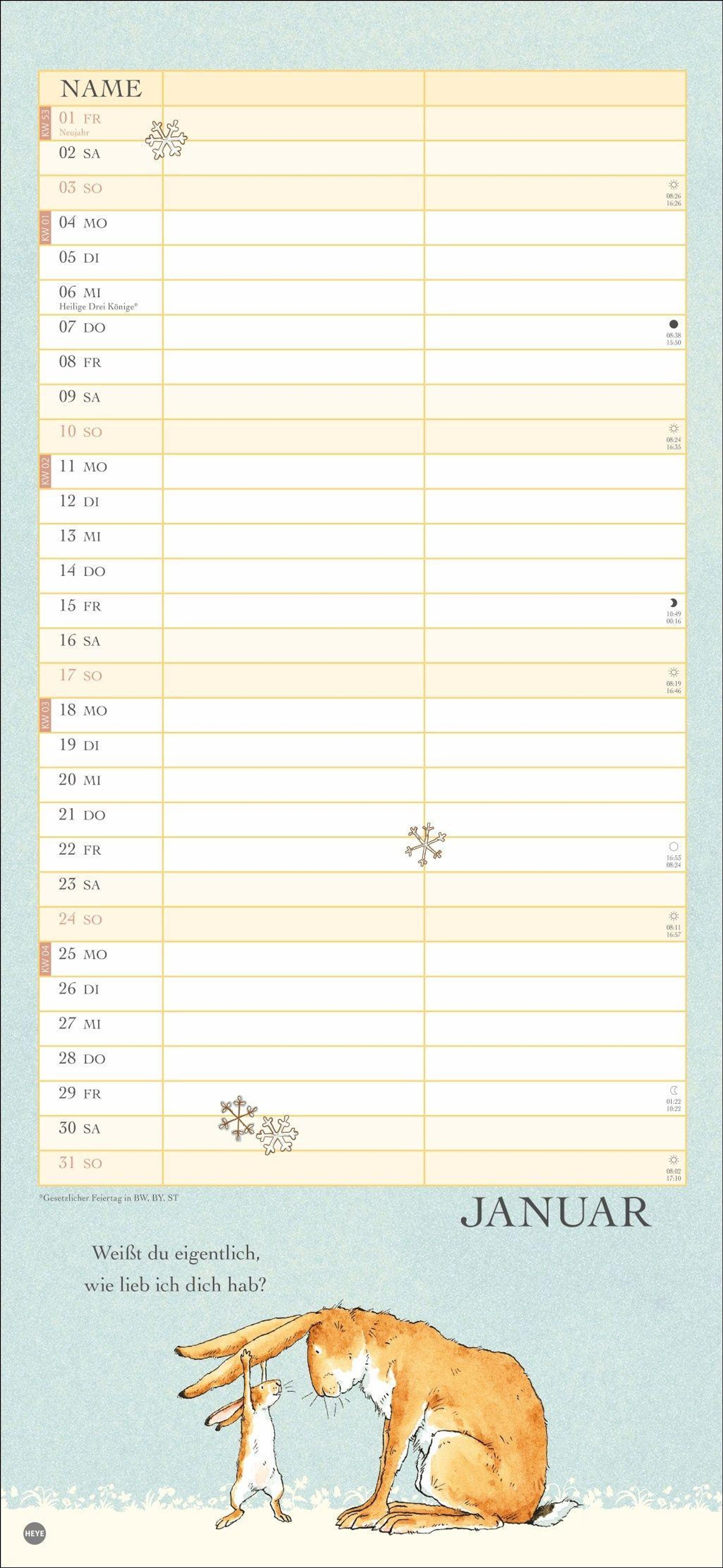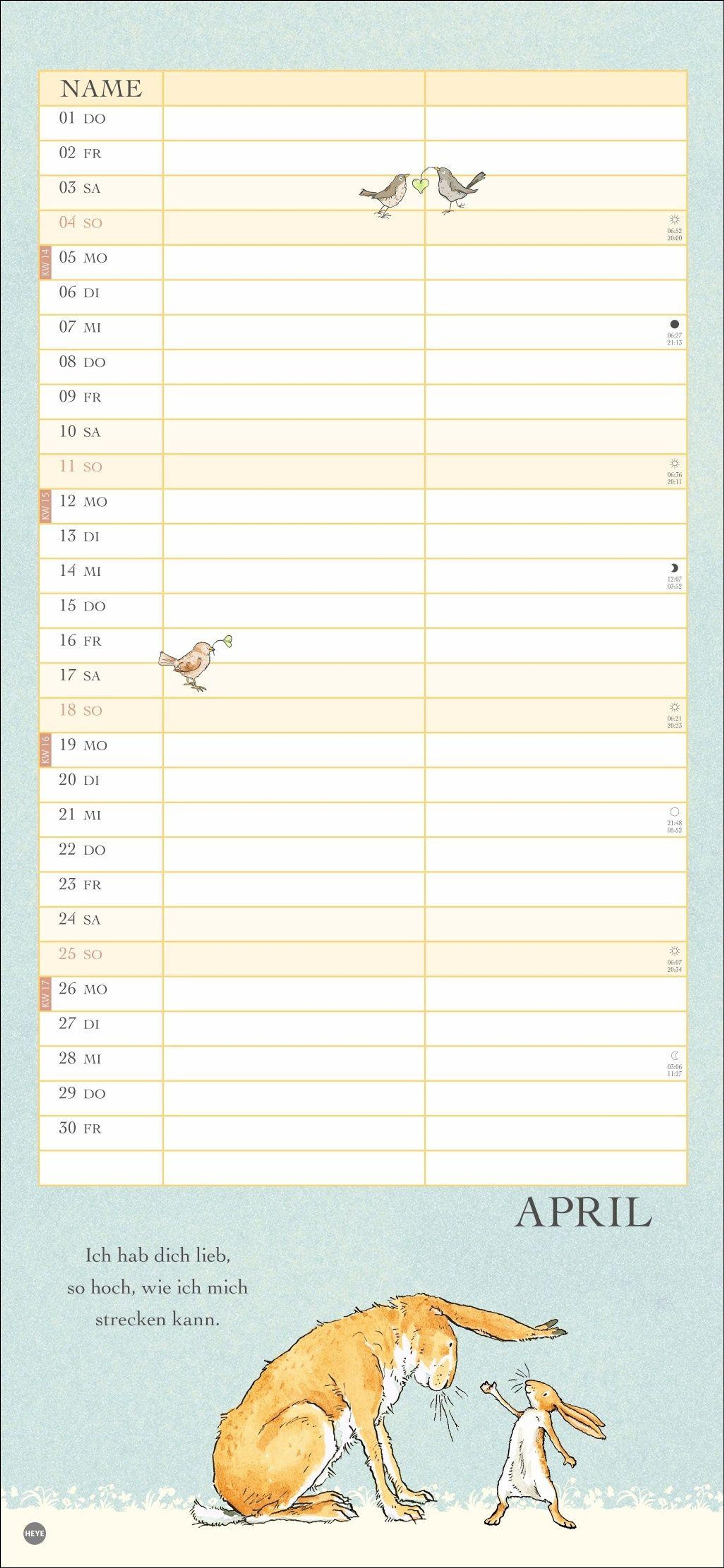 Ein Wandkalender voller Liebe: Der Partnerplaner mit Zeichnungen und Zitaten aus dem berühmten Buch von Sam McBratney und Anita Jeram