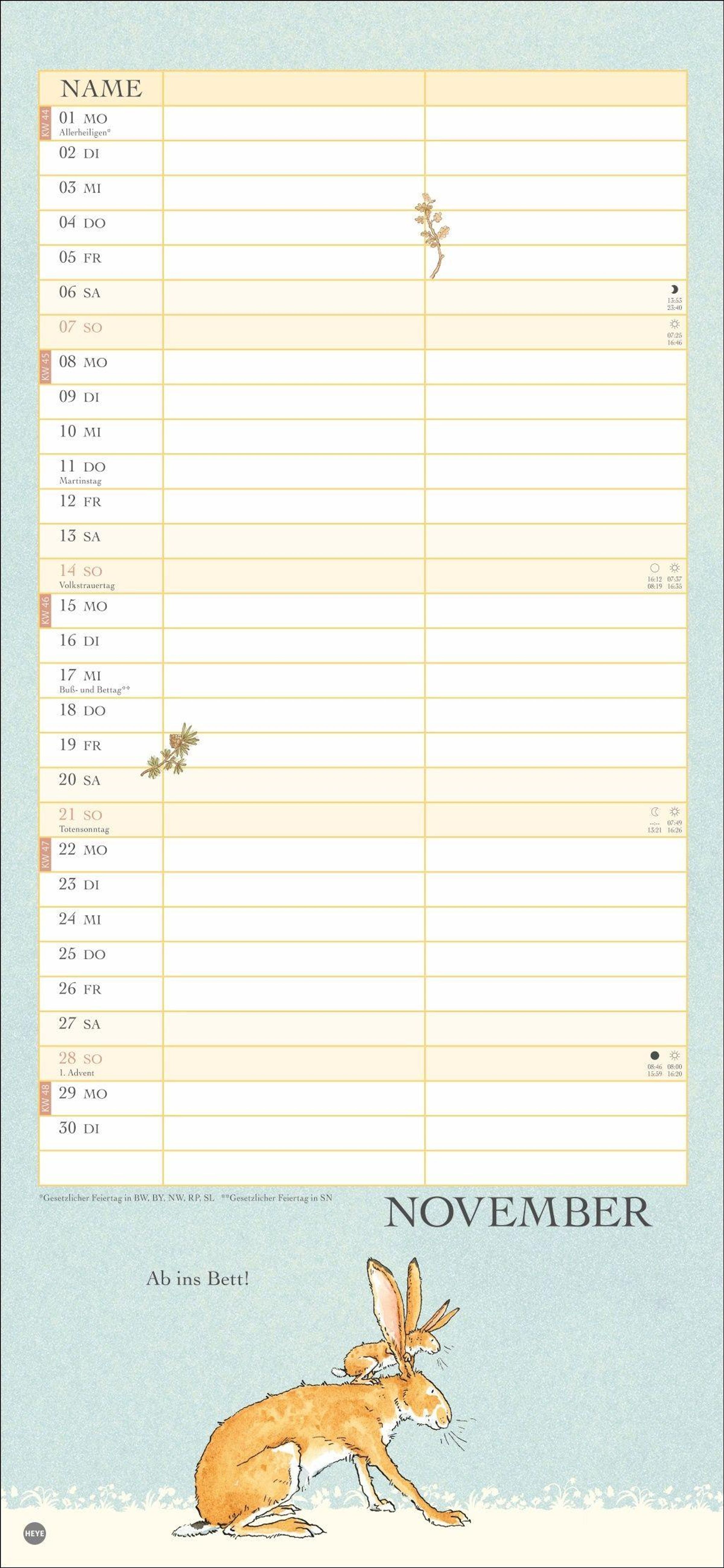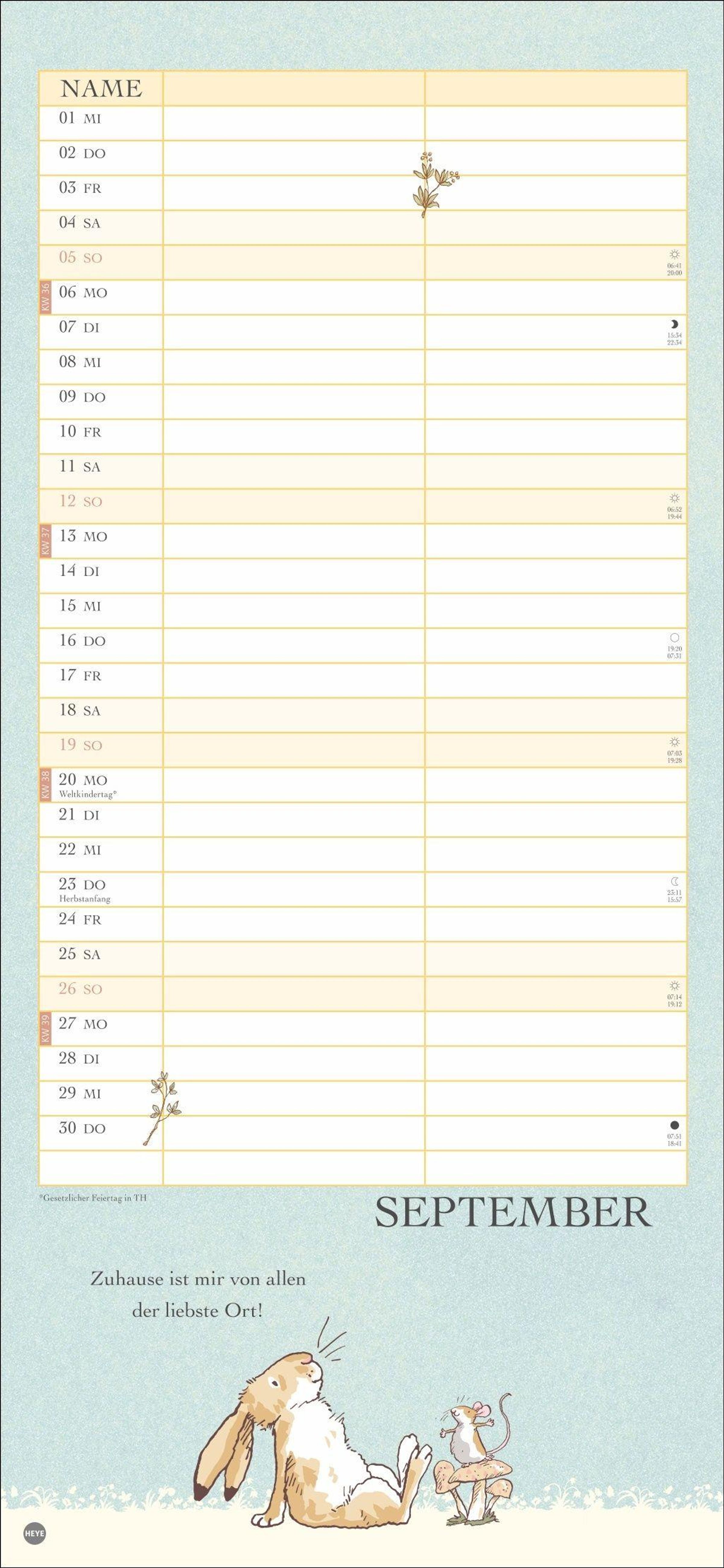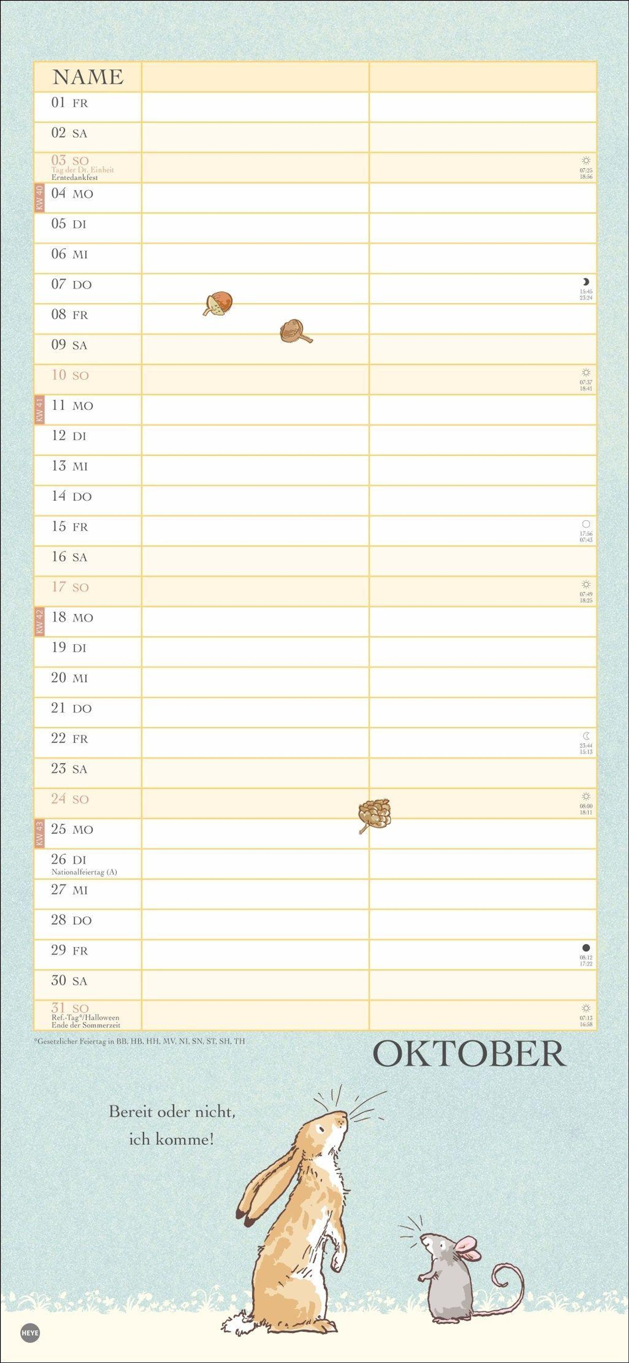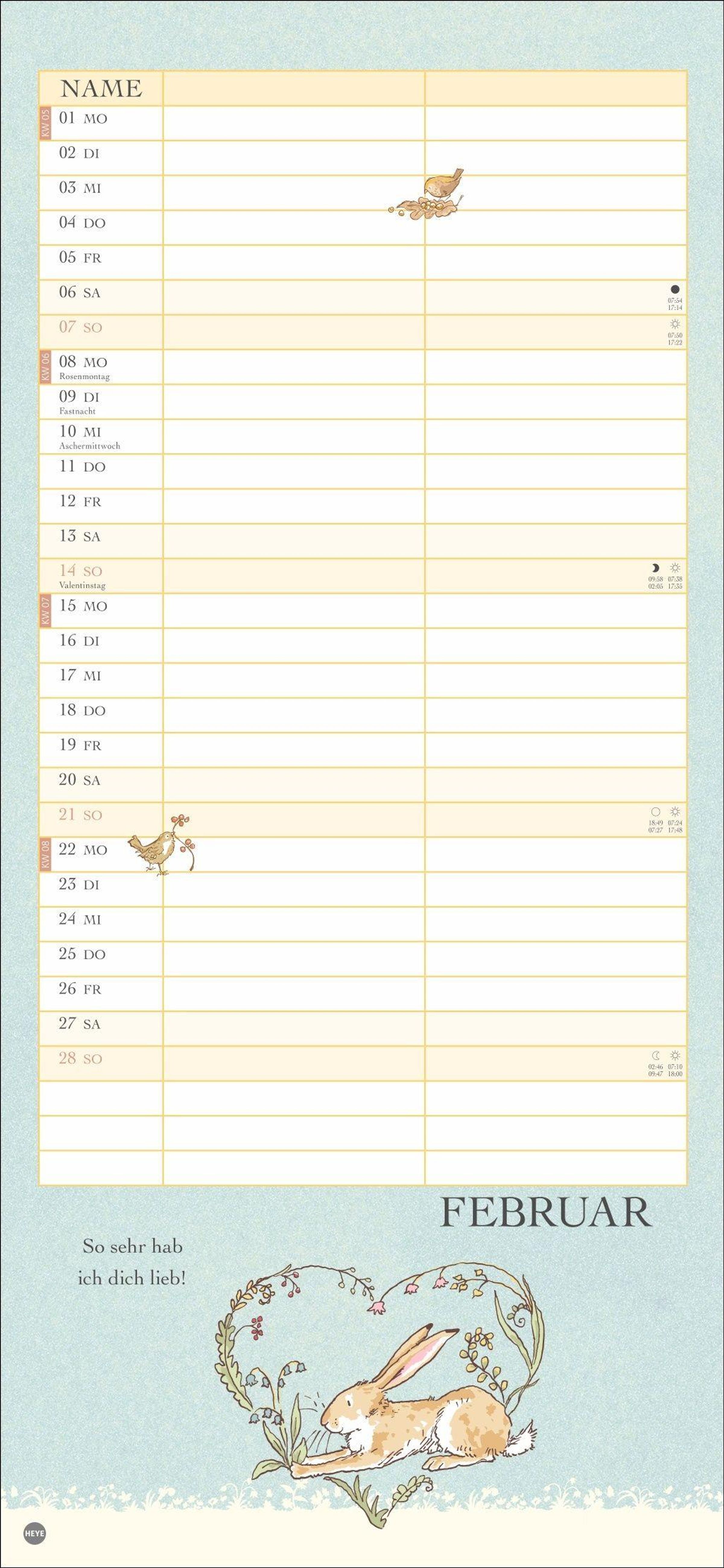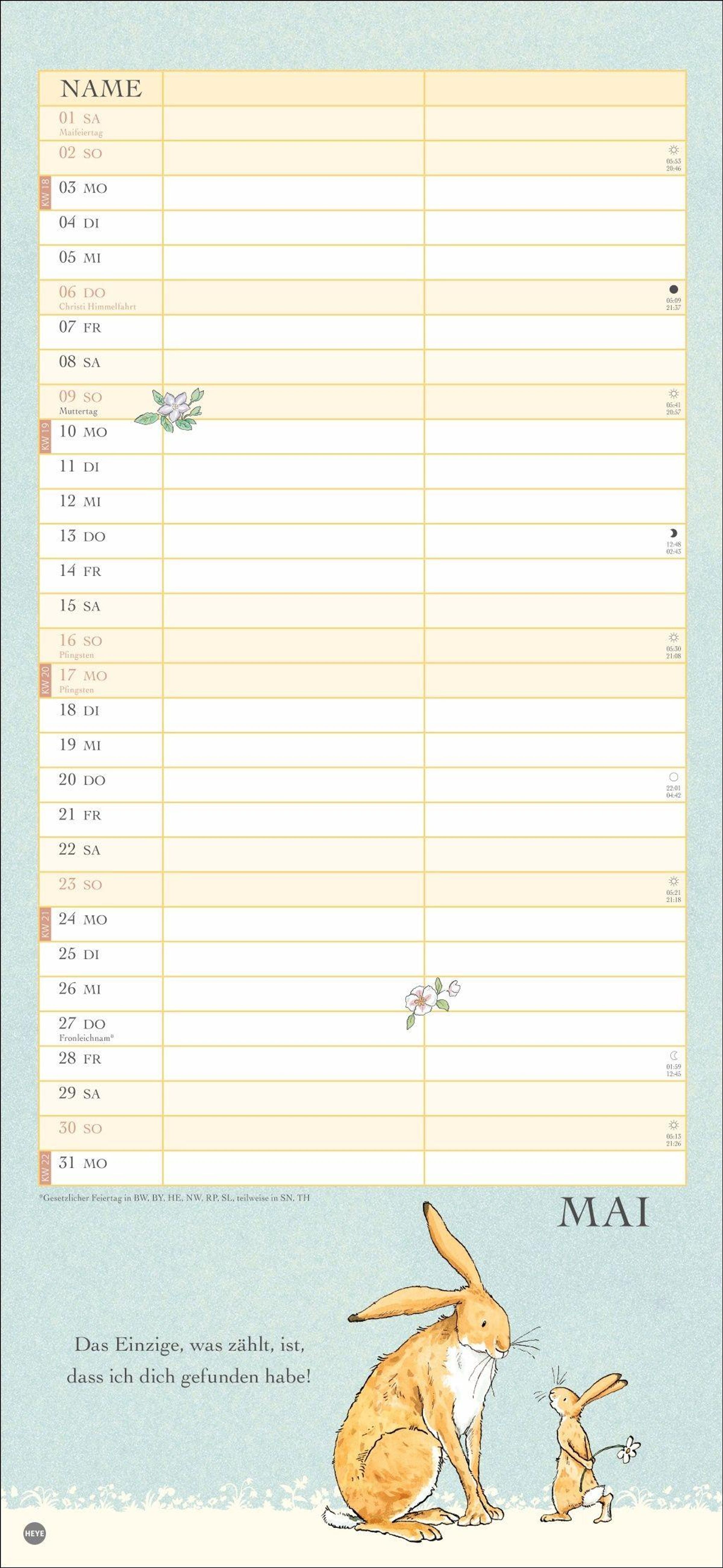 Ein Kalender für 2 im Format 16 x 34, 7 cm mit den bekannten Hasen-Illustrationen aus dem Bilderbuch-Klassiker